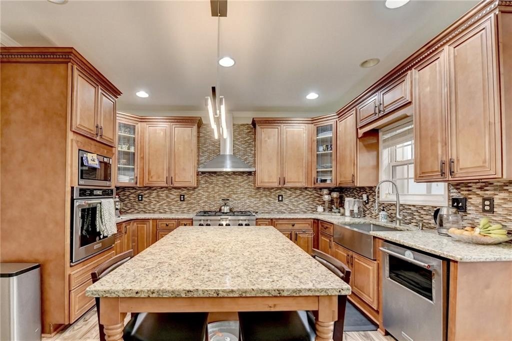 Welcome to this beautifully upgraded 6-bedroom, 4-bath brick-front home, perfectly situated on a rare half-acre cul-de-sac lot-one of the largest in the entire Suwanee Creek Community. As the last and corner lot in the neighborhood, this property offers exceptional privacy with no future homes to be built behind it, allowing you to enjoy serene, unobstructed views of the lush, wooded area. Step inside a grand two-story foyer that opens to a versatile home office and an elegant formal dining room, creating an inviting flow for both everyday living and entertaining. The spacious two-story family room features soaring ceilings and a cozy gas fireplace, filling the space with natural light and warmth. The recently updated kitchen is a chef's delight, equipped with premium KitchenAid cooking appliances, granite countertops, tile backsplash, oak cabinetry, gas cooktop, built-in oven, microwave, and refrigerator. Adjacent to the kitchen is a beautiful sunroom with two skylights and its own dedicated split AC/heating system-perfect for year-round enjoyment. The main level also includes a guest bedroom next to a full bath, ideal for visitors or multi-generational living. Upstairs, retreat to the expansive owner's suite featuring two large individual His and Her walk-in closets, including two hidden storage areas within the His closet. The spa-inspired master bath offers dual vanities, a soaking tub, a large separate shower, and sliding glass shower doors, which are also featured in every bathroom throughout the home. Three additional bedrooms and another hall bath complete the upper level. The full, finished basement provides exceptional flexibility with one additional bedrooms, a full bath, a second kitchen, and generous living spaces for entertainment, office, games, media, etc., perfect for in-law accommodations, extended family, or other potentials. Outdoor living is equally impressive. Enjoy a stone patio with a built-in fire pit, an additional deck and patio, and a recently installed fenced backyard offering privacy and space for recreation. The deck is pre-wired for outdoor speakers, making it ideal for gatherings and relaxation. Additional premium features include: Brand-new MyQ app-enabled garage door openers with video capability, Three individual furnaces and three AC units-one for each floor, Tesla EV charger installed for convenient electric vehicle charging, Recently installed luxury vinyl plank flooring throughout the home, A total of 4,508 square feet of heated living space. Located in the desirable Suwanee Creek Community, you'll enjoy a peaceful neighborhood environment similar to the adjacent MorningView community-but without the hefty HOA fees. The home is just minutes from Suwanee greenways, bike trails, shopping, dining, entertainment, Suwanee Town Center, the Mall of Georgia, and I-85. It is also zoned for the award-winning North Gwinnett School District, including Suwanee Elementary, North Gwinnett Middle, and North Gwinnett High School. This move-in-ready home offers an exceptional blend of space, privacy, modern upgrades, and an unbeatable location. Welcome home!