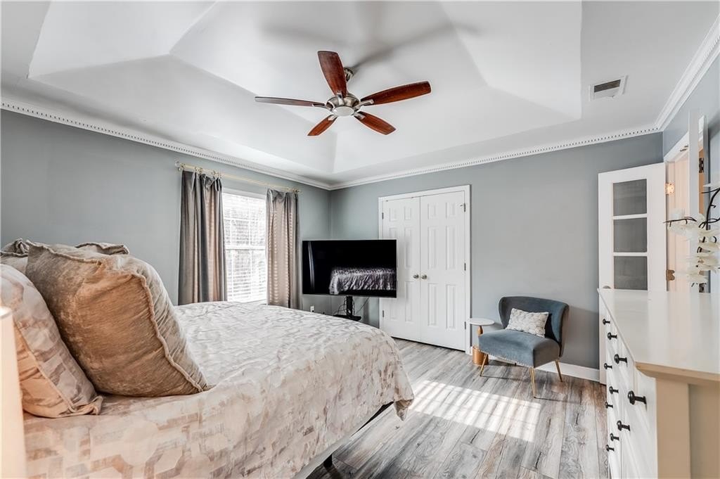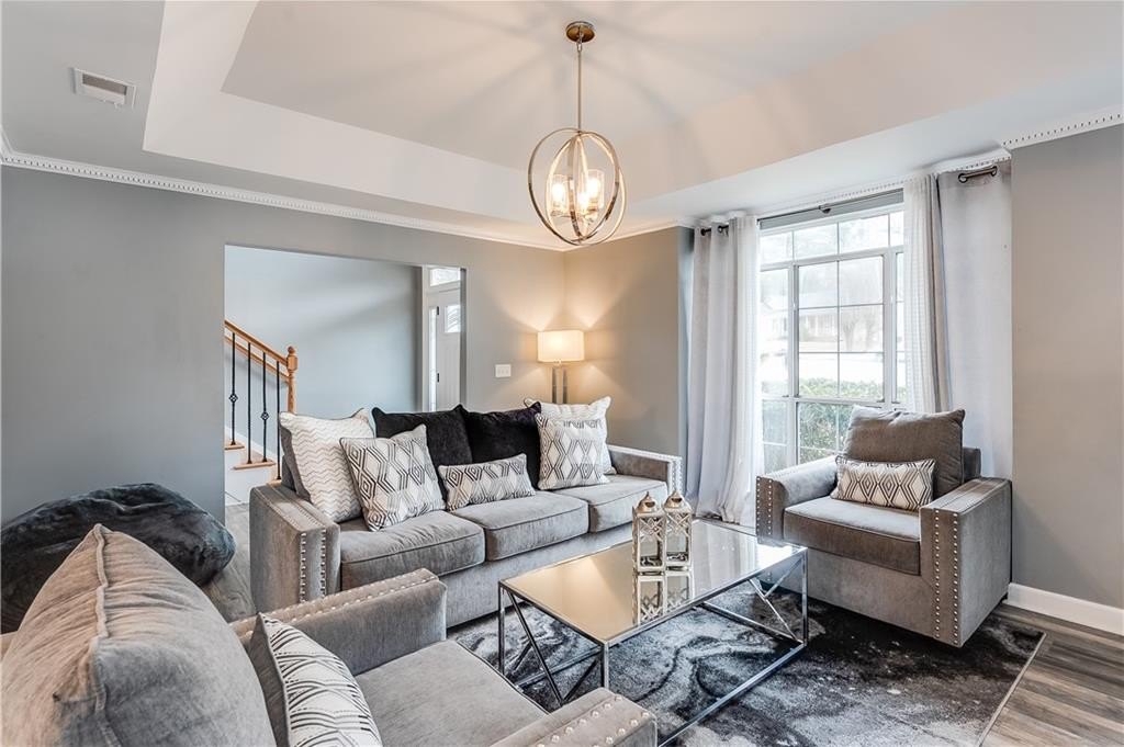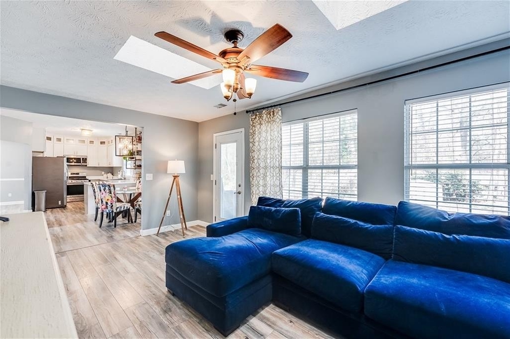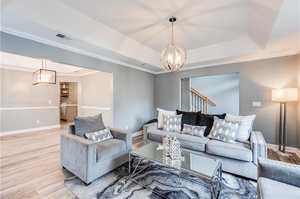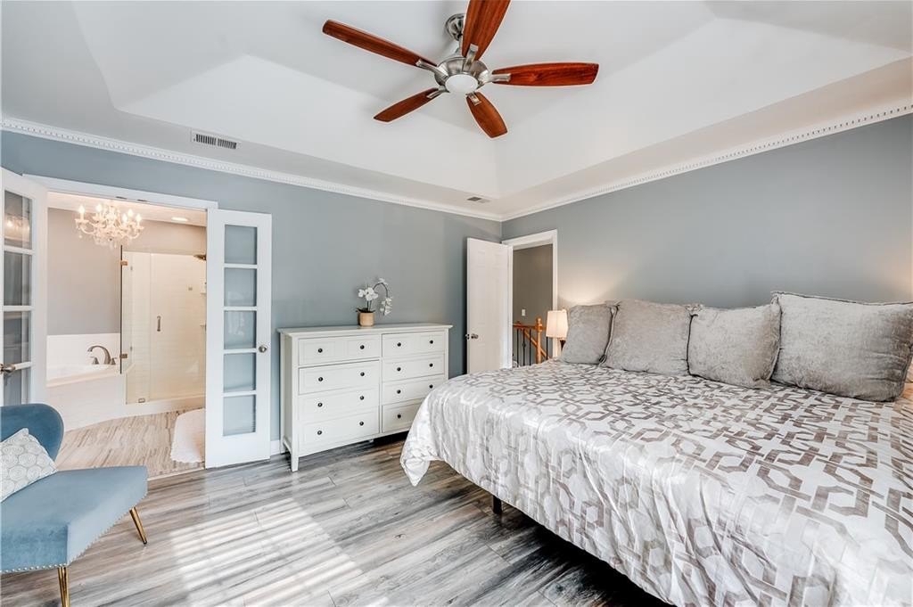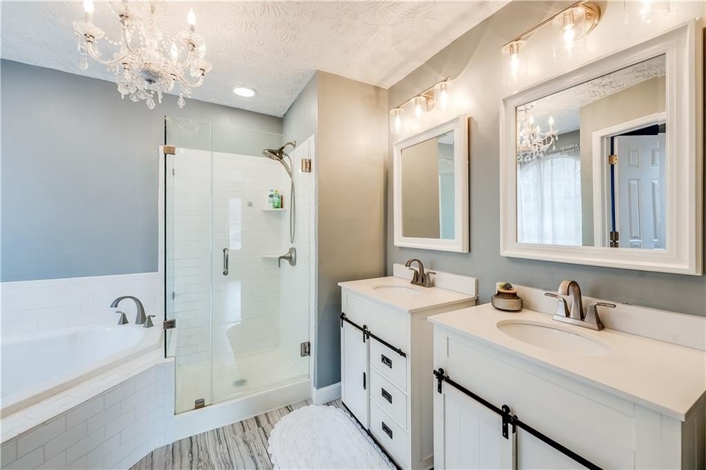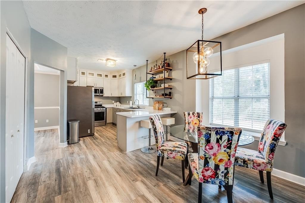 This remodeled home boasts many feautures that make this a ready to move in dream home in a well maintained neighborhood. Walk into a two-story foyer greated by a beautiful hardwood staircase with a replaced iron cast rails, a home buyers dream of a non-carpeted home, and the expense of modern upgrades already made to your future home. The connected living and dining room with modern light fixtures are great for relaxing and dining made easy for hosting family and friends. The half bathroom has been remolded with a unique bahamian flare. Your kitchen is bright and inviting with upgraded stainless steel appliances and updated cabinets flowing into an eat-in kitchen area and a nice view of your family room. On your second level you'll find a bedroom over the garage or it can be turned into a nice gaming room/entertainment space. Your laundry room is conveniently located upstairs with your secondary bedrooms. The master bedrooom has a french door walk-in closet, a french door remodeled master bathroom with a chandelier, his and hers separate sinks, a frameless shower and jetted tub. This gem of a property is nestled in a cul de sac, private back yard, 2-car garage and is in close proximity to shopping and dining, as well as schools.