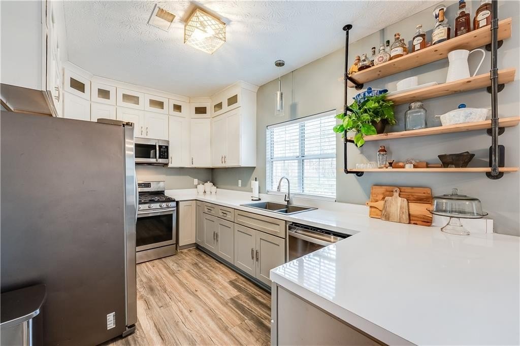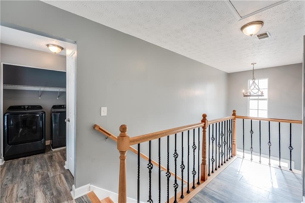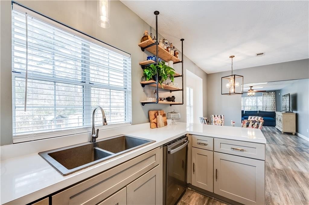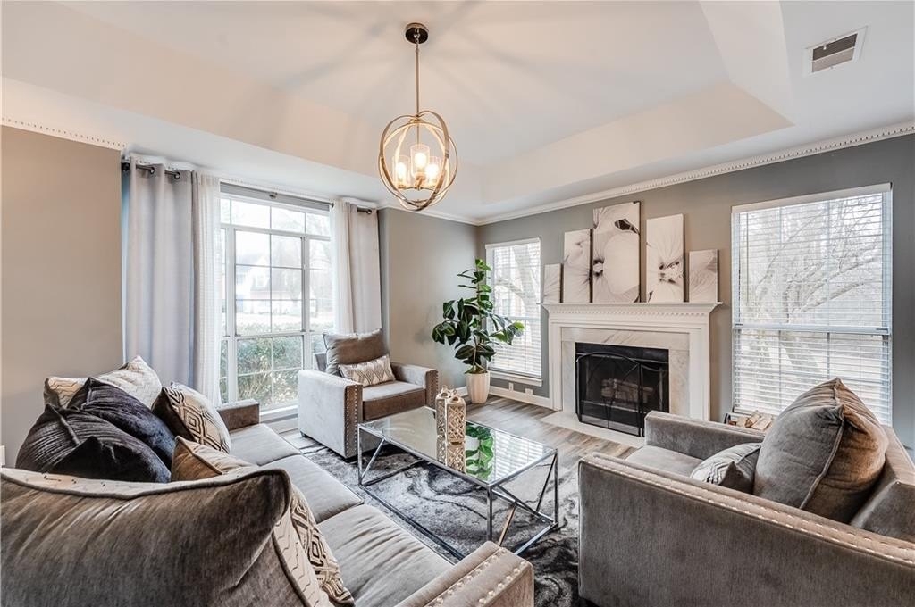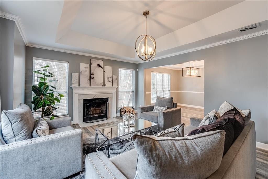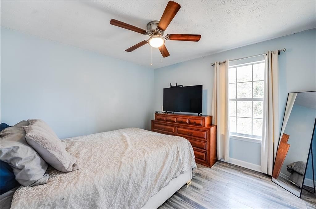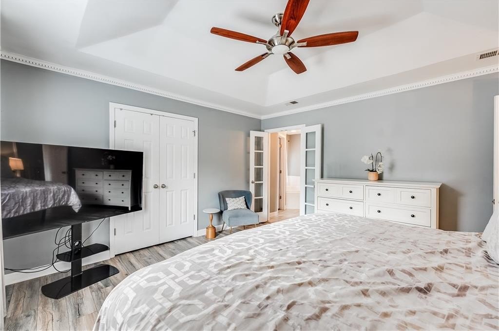 This remodeled home boasts many feautures that make this a ready to move in dream home in a well maintained neighborhood. Walk into a two-story foyer greated by a beautiful hardwood staircase with a replaced iron cast rails, a home buyers dream of a non-carpeted home, and the expense of modern upgrades already made to your future home. The connected living and dining room with modern light fixtures are great for relaxing and dining made easy for hosting family and friends. The half bathroom has been remolded with a unique bahamian flare. Your kitchen is bright and inviting with upgraded stainless steel appliances and updated cabinets flowing into an eat-in kitchen area and a nice view of your family room. On your second level you'll find a bedroom over the garage or it can be turned into a nice gaming room/entertainment space. Your laundry room is conveniently located upstairs with your secondary bedrooms. The master bedrooom has a french door walk-in closet, a french door remodeled master bathroom with a chandelier, his and hers separate sinks, a frameless shower and jetted tub. This gem of a property is nestled in a cul de sac, private back yard, 2-car garage and is in close proximity to shopping and dining, as well as schools.