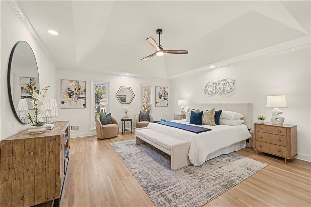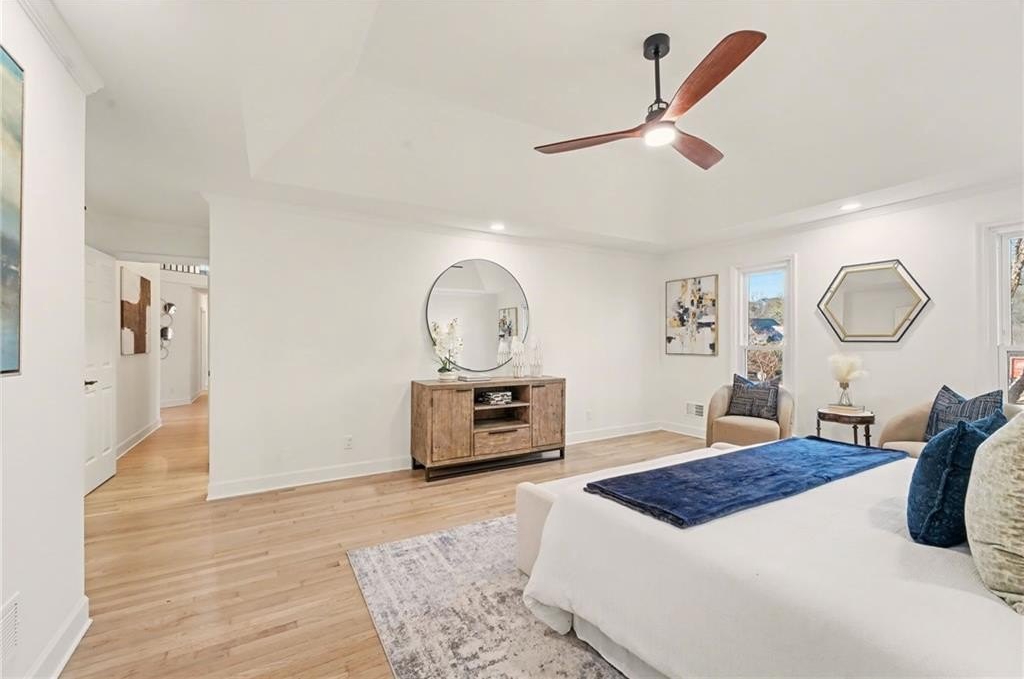 This beautifully renovated 5-bedroom, 4.5-bath home offers modern updates, quality craftsmanship, and flexible living space throughout. Fresh exterior finishes and professional landscaping create strong curb appeal. Inside, refinished white-oak hardwood floors, neutral interiors, and updated lighting and hardware give the home a bright, cohesive feel. The updated kitchen features new cabinetry, quartz countertops, a custom scullery/laundry area with butcher-block surfaces, and premium stainless-steel appliances with brushed-brass hardware. Additional windows enhance natural light. Bathrooms have been upgraded throughout, including a spa-like primary suite with marble tile, soaking tub, dual vanities, and a custom walk-in closet. An upstairs ensuite has been fully renovated, the hall bath refreshed, and a full bath added to the terrace level. The finished basement includes a bedroom, full bath, updated electrical, HVAC integration, and durable luxury vinyl plank flooring-ideal for guests, entertaining, or a flexible space-a truly turnkey home with thoughtful upgrades throughout.