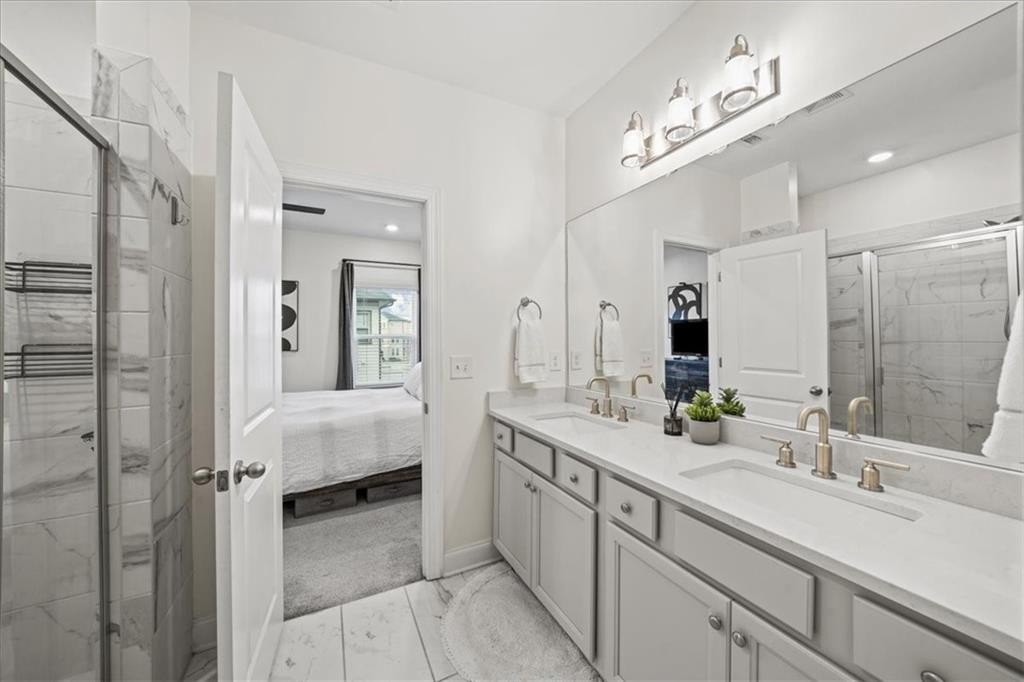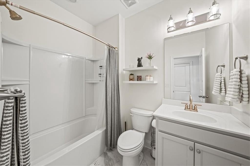 Modern luxury meets everyday convenience in this beautifully maintained townhome at Reverie on Cumberland, just moments from historic Vinings. Steps from the community's resort-style pool, cabanas, and tanning ledge, this is the only Brycen floor plan currently available and was newly constructed in 2021 by Ashton Woods. Thoughtful design and natural light fill the home with warmth. The open concept main level makes entertaining effortless, connecting the kitchen, dining, and living areas in a clean, functional layout. The kitchen shines with quartz countertops, 5-burner gas cooktop, stainless appliances, and an oversized island ideal for prepping, hosting, or casual meals. A covered deck extends your living space outdoors for morning coffee or a wind-down drink at dusk. Upstairs, the primary suite serves as a true retreat with a spa-inspired bath, walk-in closet, and double vanity. The secondary bedroom features its own private bath, with laundry conveniently located in the hallway. The terrace level offers a versatile bonus room plus a full bathroom, perfect for a home office, media lounge, or guest space. A one-car garage and level driveway provide parking and storage flexibility. Residents enjoy an impressive amenity package including a multi-level clubhouse with lounge and catering kitchen, 24/7 fitness center, grilling areas, greenspace, and fire pit. Everyday errands are a breeze with Publix, Home Depot, and Cumberland Mall just minutes away. Vinings Jubilee and West Village dining and shops are within a mile, with quick access to I-285, I-75, The Battery & Truist Park, and more. Move-in ready and situated in one of the most desirable pockets of Vinings, this home delivers the best of low-maintenance living without compromising style or convenience to the City & Hartsfield-Jackson Airport.