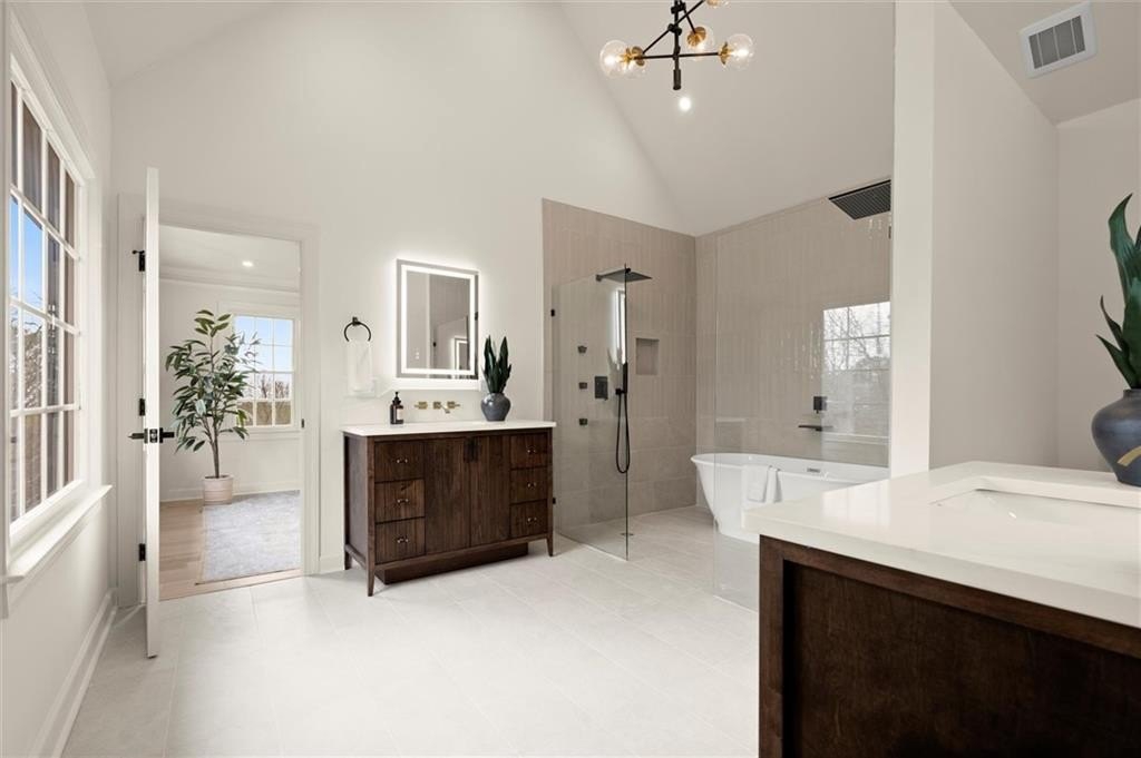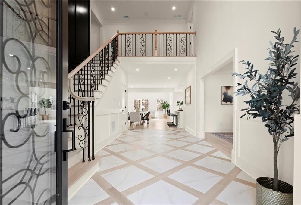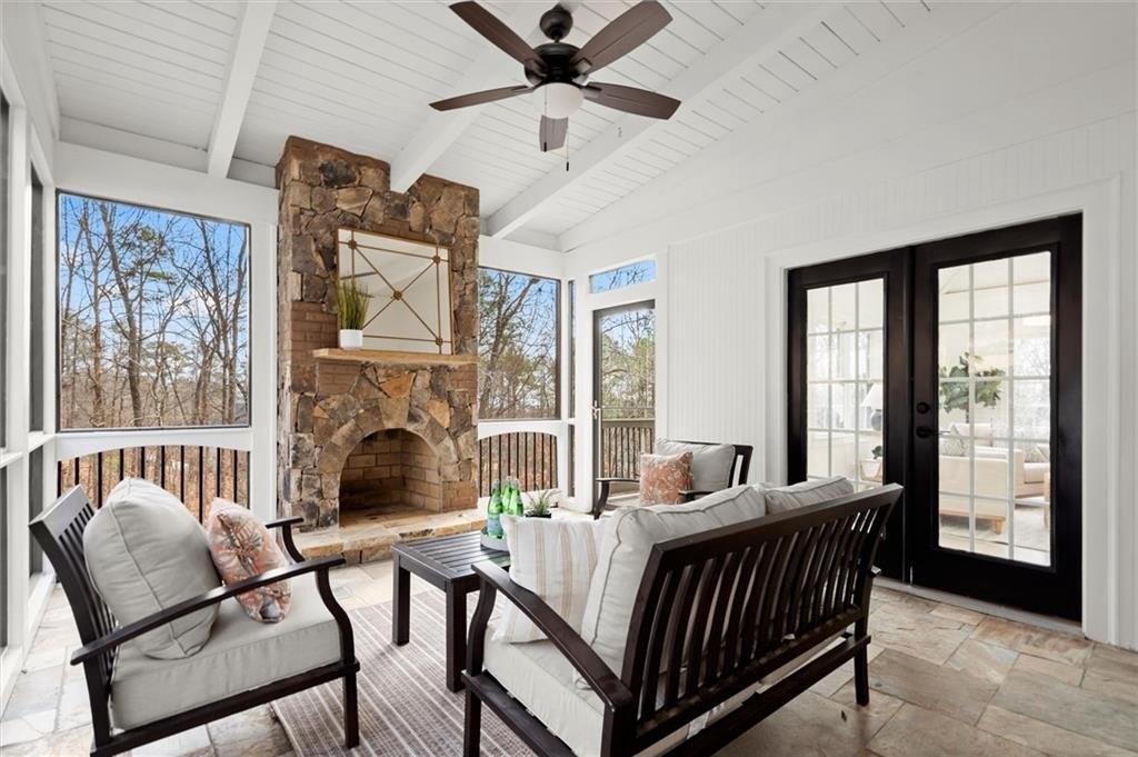 Cross the threshold into timeless elegance with this beautifully renovated home, designed for both grand entertaining and everyday comfort. The home greets you with an impressive two-story entrance. The foyer features custom diagonal tile design that has been artfully framed with beautiful wood inlays, which leads into the spacious main living areas. The home is equipped with 5 fireplaces accented throughout the home, starting with the keeping room on the main floor. The heart of the home is the open kitchen, complete with Quartz counters, Frigidaire appliances, and a hidden pantry for seamless storage. The kitchen flows effortlessly into the adjacent gathering spaces, including formal open dining, cozy living room, and screened-in porch that overlooks the inground pool. The screened-in porch and pool share a double-sided fireplace, setting the ambiance for spectacular entertainment. With 6 bedrooms and 5.5 bathrooms, this home offers flexibility for family and guests, including a main-level bedroom, a thoughtfully designed dog bath in the laundry room, and separate living quarters in the basement for family or overnight guests. The primary suite includes its own fireplace, accompanied by a sitting area, and a well-appointed bathroom that features dual shower heads, large soaking tub, two vanities, and a walk-in closet with custom built-ins. The finished basement expands your lifestyle options even further with a dry bar, theatre room, gym, and two open-concept rooms large enough for a pool table, ping pong table, or other recreational activities. From the grand entrance to the remarkable back yard, and everything in between, every detail has been considered to blend luxury with practicality and versatility. This home is ready to make new memories.