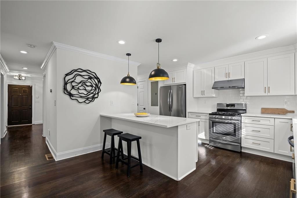 Welcome to this beautifully updated craftsman-style home in the heart of Ormewood Park, where classic charm, thoughtful updates, and everyday livability come together. A fenced front yard and front porch creates a welcoming sense of arrival perfect for morning coffee, time with family, or simply enjoying the neighborhood. Inside, fresh paint throughout, updated lighting, refinished bamboo floors and new carpet create a cohesive, move-in-ready feel. The formal dining room, filled with natural light and accented by crown molding, offers a space designed for hosting-from weeknight dinners to holiday gatherings. A dry bar and pantry lead seamlessly into the fully renovated kitchen, where quartz countertops, new cabinetry, new backsplash, updated hardware, and a breakfast bar make both everyday cooking and entertaining feel effortless. The kitchen opens to the family room, the true heart of the home, where an accent wall and electric fireplace create a cozy place to gather and unwind. Just beyond, a spacious screened porch extends the living space outdoors, offering a peaceful spot to enjoy the seasons year-round. The main level includes a bedroom and full bath ideal for guests, a home office, or flexible living needs. Upstairs, the primary suite feels like a retreat, featuring a double vanity, soaking tub, separate shower, and walk-in closet. Two additional bedrooms with en suite baths and a conveniently located laundry room complete the upper level. Additional features of the home include a vehicle charging station, ring doorbell and nest thermostats on both floors. With new Atlanta BeltLine access just a block away, this location connects you effortlessly to Glenwood Park, Grant Park, and some of Atlanta's best dining, shopping, green spaces, and community events. Parkside Elementary, Atlanta Neighborhood Charter School - Middle Campus, Red's Farm Preserve, and the Atlanta Zoo are also close by. This home offers vibrant city living with the comfort and character of a true neighborhood.