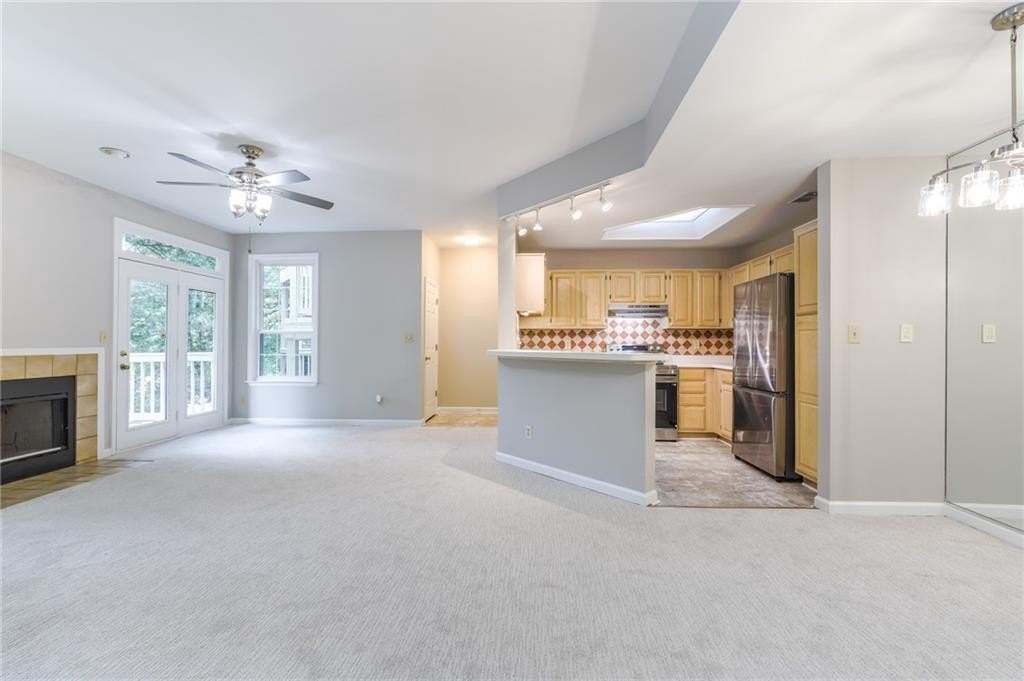 This lovely one bedroom condo in downtown's idylic McGill Park has fresh paint and new carpeting throughout the unit. An open-concept plan leaves the main living areas soaked in sunlight, including the living room with fireplace, dining area + kitchen with brand new stainless appliances and a tile backsplash. The unit's bedroom is well-sized with a pass-through closet with direct access to the bathroom, featuring tile tub surround. There's a large patio and storage closet, too. This beautiful community is full of mature trees and amenities including pool, gym + EV chargers.