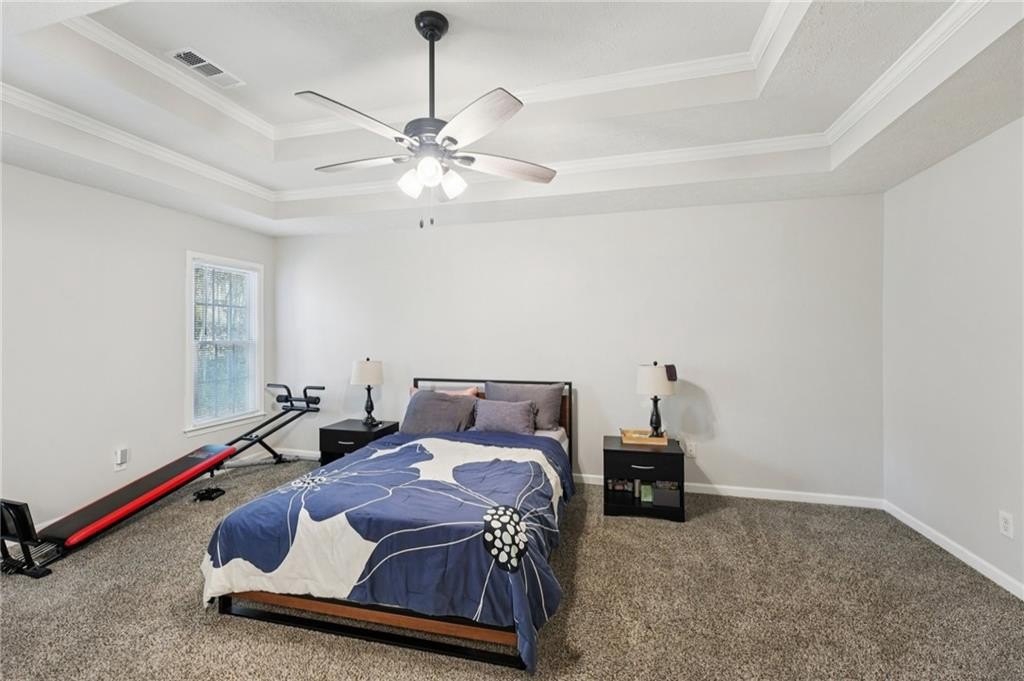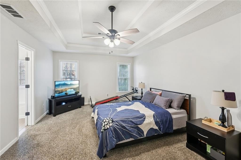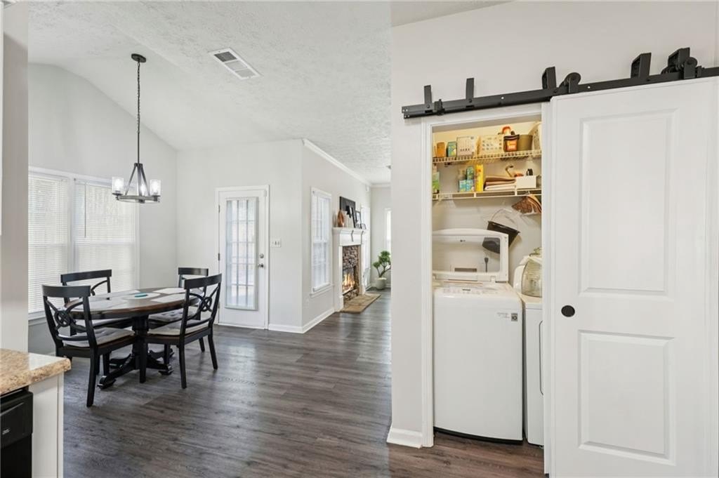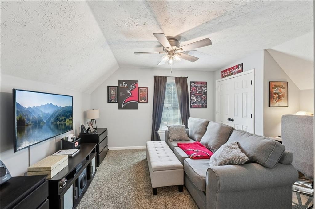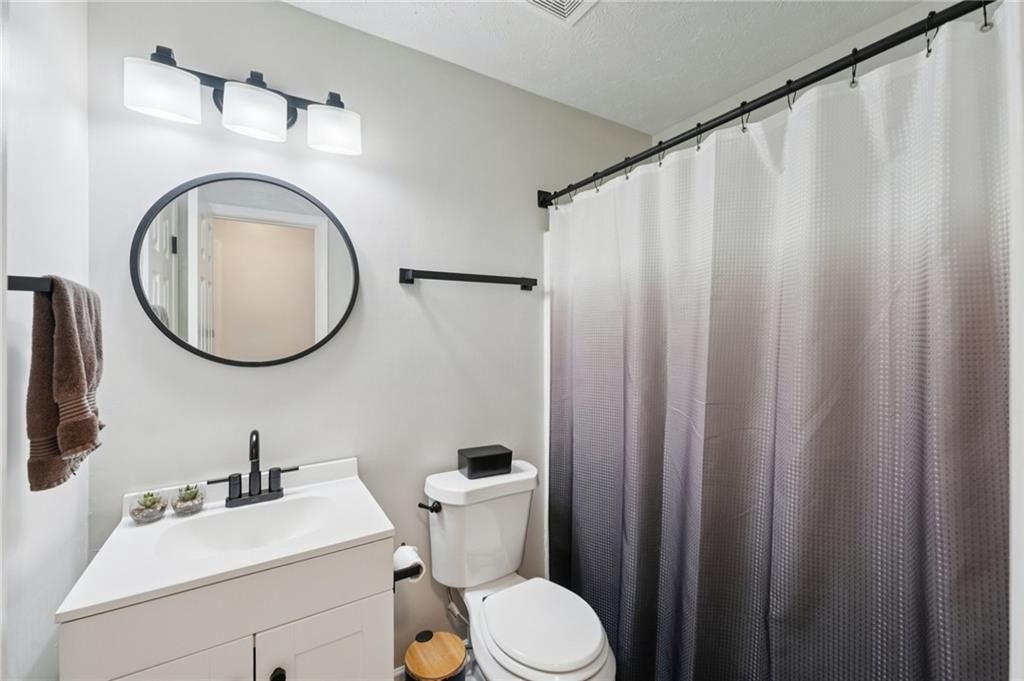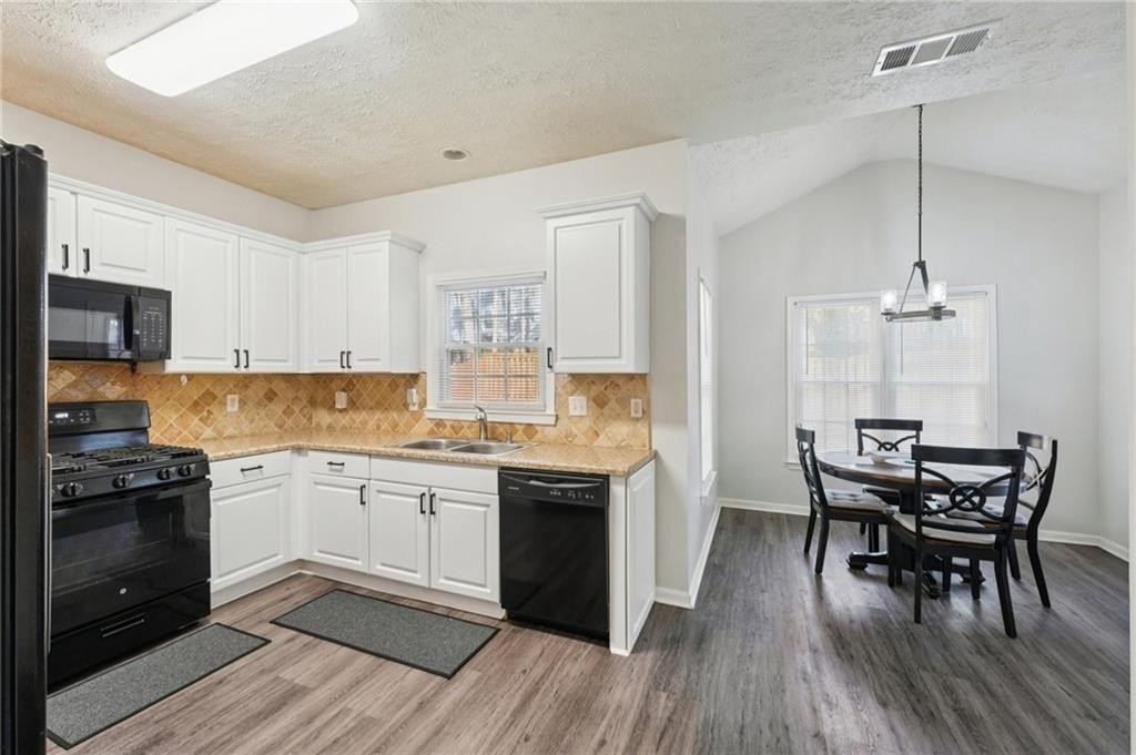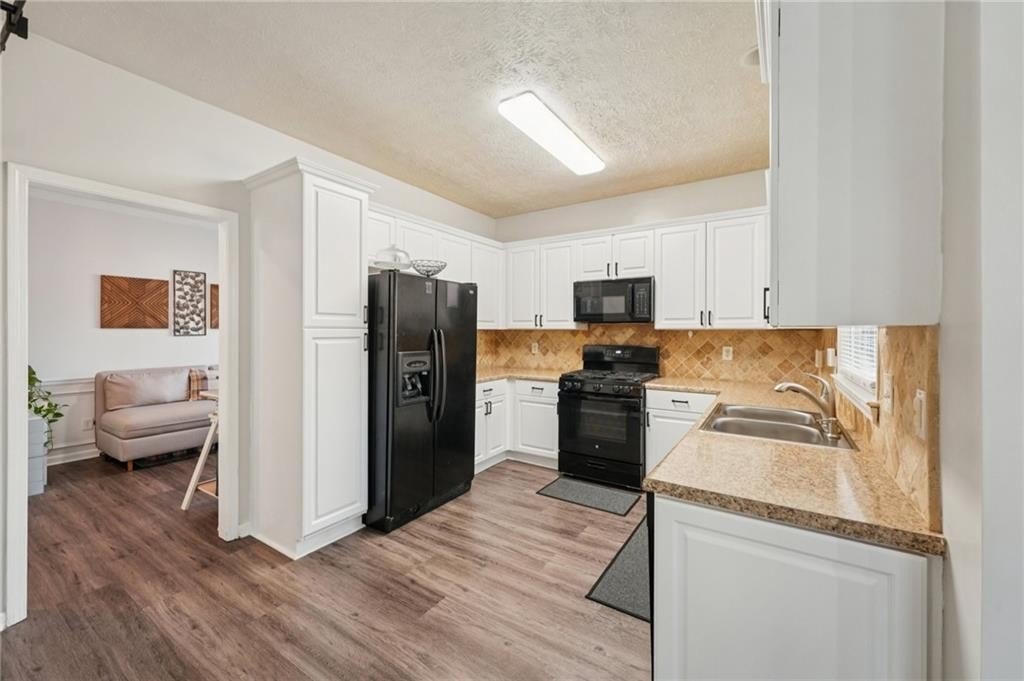 Don't miss this beautifully updated home, thoughtfully enhanced with an impressive list of major upgrades for peace of mind and modern living. Recent improvements include a new roof, windows, two HVAC systems, water heater, flooring, interior and exterior paint, fully updated full and half bathrooms, composite deck, gutter guards, and a refreshed kitchen with refaced cabinetry-allowing you to move in and enjoy with confidence. Welcoming curb appeal sets the tone with a sweeping front lawn and charming front porch. Inside, durable and stylish vinyl wood flooring flows seamlessly throughout the main-level living spaces. The spacious living room is filled with natural light and features elegant crown molding and a cozy stone fireplace-perfect for both everyday living and entertaining. The bright, modern kitchen showcases on-trend white cabinetry, tile backsplash, and a sun-filled breakfast area with serene views of the backyard. A conveniently located laundry closet adds everyday functionality. A versatile flex space with crown molding offers endless possibilities as a formal dining room, formal living room, home office, or playroom. A well-appointed half bath completes the main level. Upstairs, the primary suite is a true retreat with a tray ceiling, walk-in closet, and en-suite bath featuring dual vanities, a soaking tub, and a glass-enclosed shower. Three generously sized secondary bedrooms and a full bath provide ample space for family and guests. Outdoor living shines with an oversized composite deck ideal for grilling and entertaining. The fenced backyard backs to wooded greenspace, offering exceptional privacy and a tranquil setting. Ideally located near shopping, dining, parks and major highways, this home is zoned for top-rated Kell High School and offers easy access to the I-75 Express Lanes-combining comfort, convenience, and lifestyle in one exceptional property.