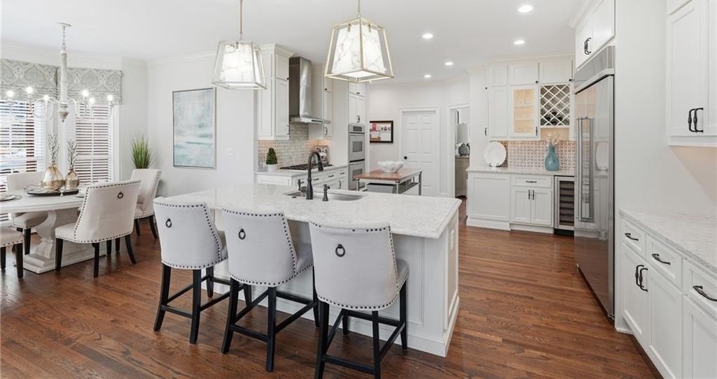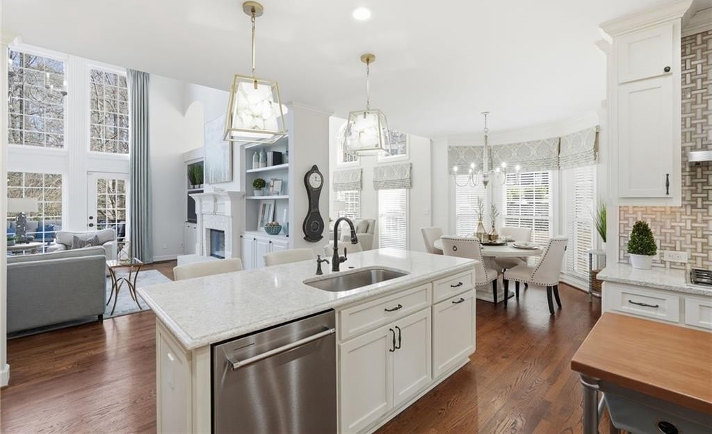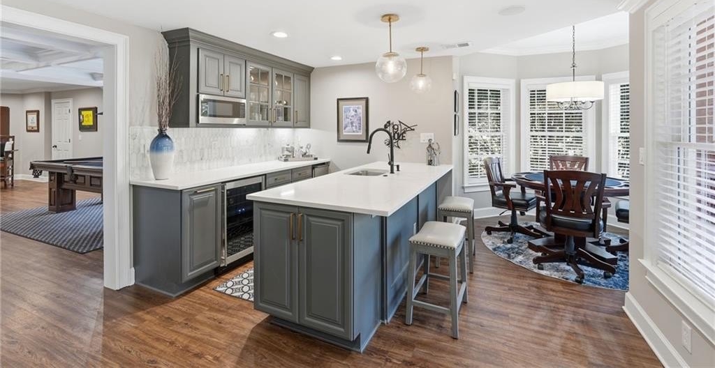 Discover an exceptional home in the highly sought-after, gated Crooked Creek community, known for its resort-style amenities and top-ranked schools. Meticulously updated from top to bottom, this stunning residence also features a gorgeous private pool, creating the perfect blend of luxury, comfort, and lifestyle. Inside, the primary-on-main layout is anchored by a beautifully renovated kitchen with a spacious walk-in pantry, premium appliances, and a fireside keeping room filled with natural morning light. From this inviting space, enjoy tranquil views of the deck and the private backyard oasis. The main level also offers a formal dining room, a private office, great room, and a convenient half bath. The primary suite is a true retreat, showcasing a spa-inspired bathroom with Carrara marble tile, dual vanities, a large custom designed walk-in closet, and the added luxury of a second washer and dryer. The upper level features four spacious bedrooms and three full bathrooms, along with a second laundry area and walk-in attic storage for added convenience. The terrace level is truly impressive, offering a beautifully finished recreation room, gym, home theater, bar, and game table area, all with direct access to the covered patio and pool-ideal for entertaining or relaxing year-round. This home has been thoughtfully updated throughout with fresh new paint inside and out, new roof, new gutters, new windows, new carpet, updated bathrooms, new tile, showers, vanities, toilets, and stylish high-end new light fixtures throughout. Crooked Creek's unparalleled amenities include championship golf, professionally managed tennis and pickleball facilities, a junior Olympic swimming pool, a second water-park-style pool with splash features and a 140-foot waterslide, a playground, basketball court, and a clubhouse with meeting rooms, catering bar, and kitchen, plus vibrant community events throughout the year. Perfectly located just minutes from Crabapple, downtown Milton, downtown Alpharetta, GA-400, Halcyon, Avalon, and some of Georgia's most acclaimed schools, this move-in-ready home offers an incredible opportunity to enjoy luxury living in one of the area's most desirable communities.