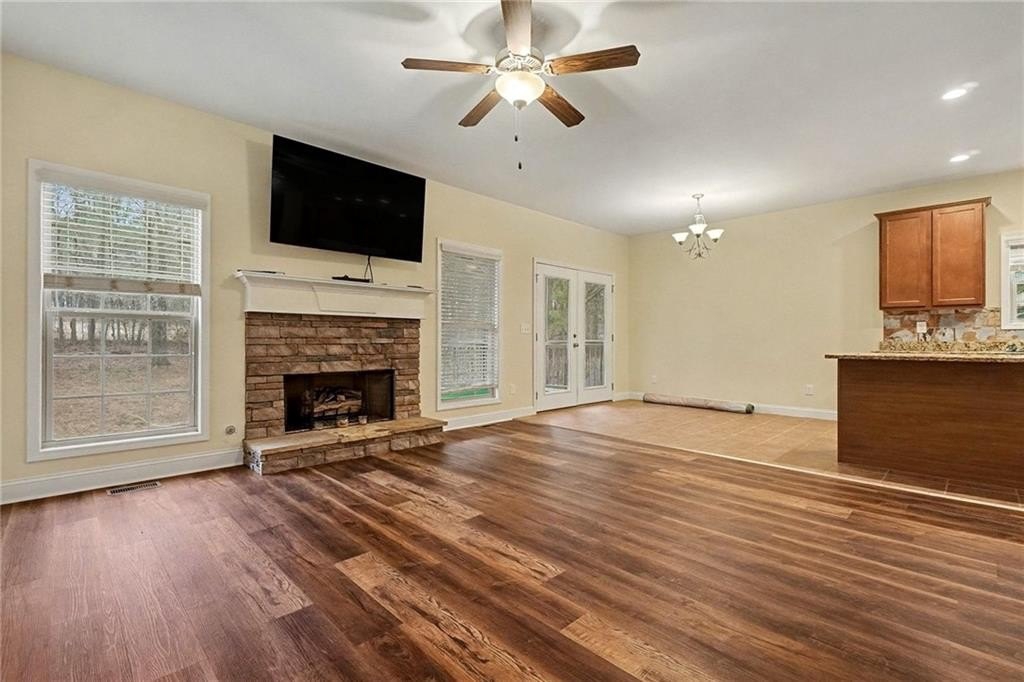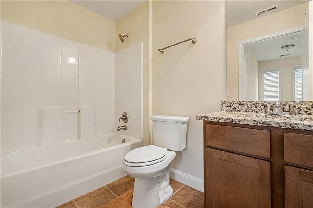 This only 7-year-old home offers exceptional space and flexibility with a fully finished basement featuring a private entrance and separate driveway, ideal for multi-generational living or guests. New flooring throughout highlights a thoughtful layout that begins with a covered rocking-chair front porch, private foyer, and a versatile dining room or home office with French doors. The open-concept kitchen features drift-shade shaker cabinetry, granite countertops, a center island with bar seating, and a breakfast area that flows into the living room with a stacked-stone fireplace. The primary suite on the main level includes a tray ceiling, walk-in closet, and a newly tiled shower, along with a raised double vanity. A guest half bath, main-level laundry, and two-car garage access complete the main floor. A screened porch overlooks the private backyard on the 7th fairway, perfect for relaxing or entertaining. Upstairs offers two spacious bedrooms, a full bath, and large floored storage. The professionally finished basement includes a bedroom, living area, additional flex room, full bath, second laundry, covered porch with hot tub, and private entry. Additional highlights include a tankless water heater and a detached workshop designed to match the home's exterior. A rare opportunity offering space, versatility, and value-schedule your showing today.