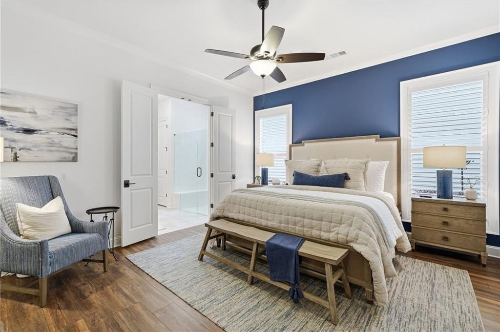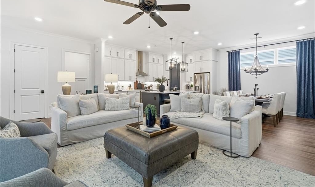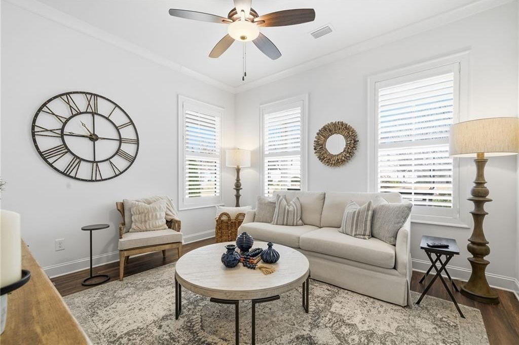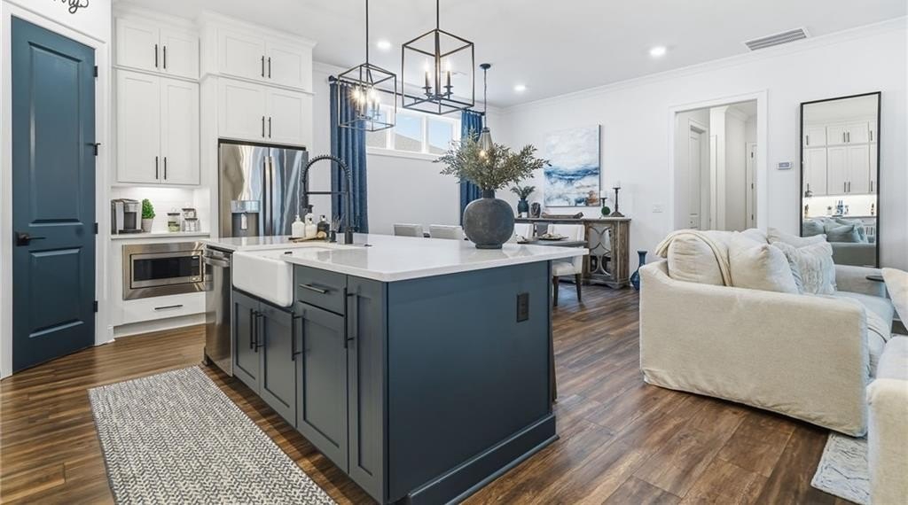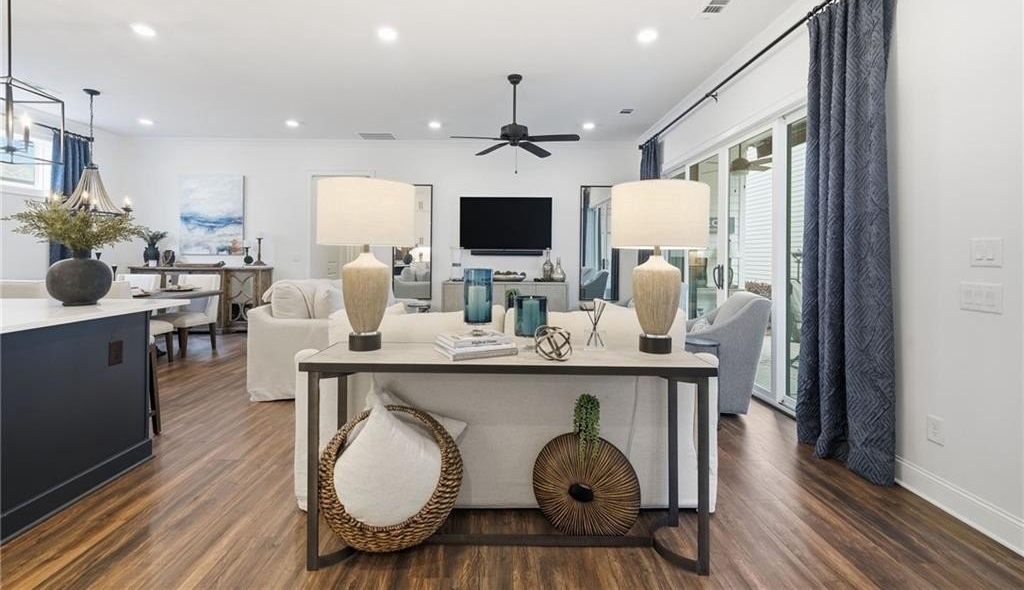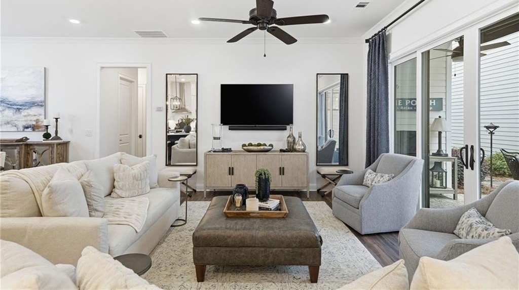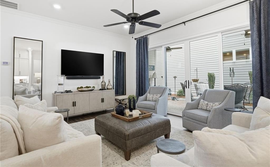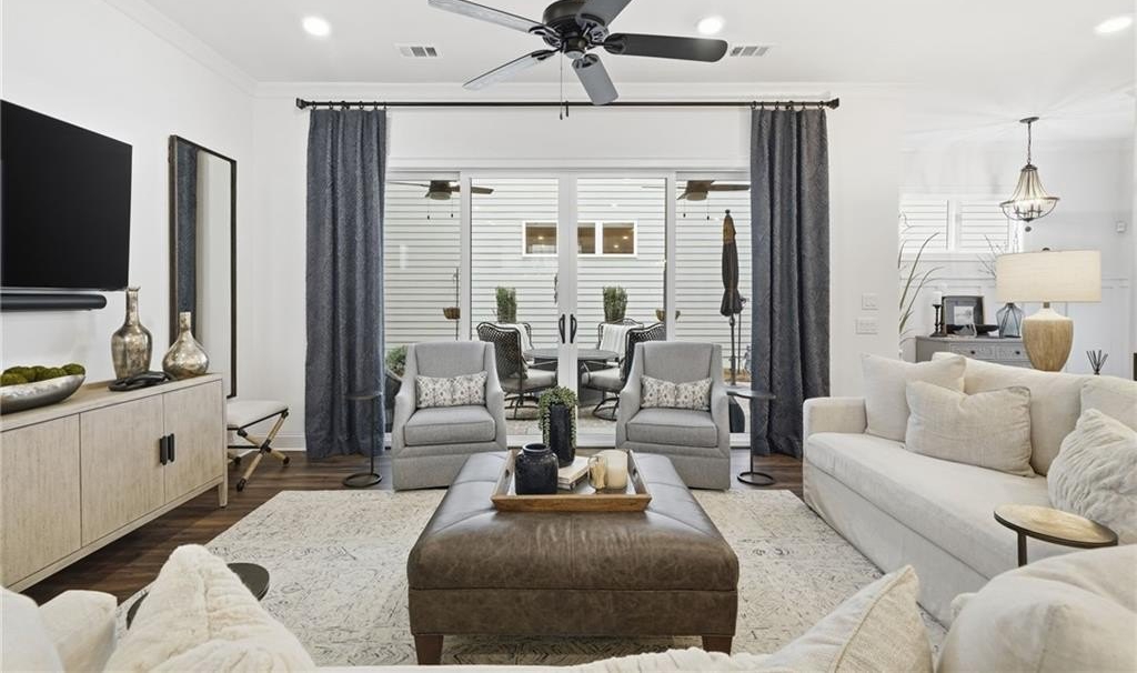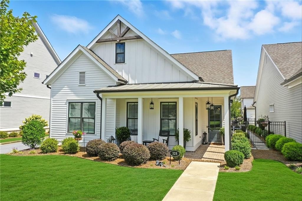 Welcome home to 328 McDaniel Place in the heart of Idylwilde.?This beautifully appointed 3-bedroom, 2.5-bath ranch invites you to slow down and enjoy effortless one-level living in a setting that feels both elegant and comfortable. From the moment you step inside, you'll notice the attention to detail - wide-plank Shaw floors throughout, custom crown molding, board-and-batten accents, and thoughtfully upgraded lighting that create a warm, welcoming atmosphere. Sunlight filters through bronze windows dressed with plantation shutters and custom drapery in the living and dining spaces. The heart of the home is the inviting kitchen, designed for gathering and everyday enjoyment. It features Cambria quartz countertops, stacked Glacier cabinetry with soft-close doors and drawers, a charming blue island with farmhouse sink, and GE Profile gas range with vent hood, all anchored by a sleek counter-depth refrigerator. Open the expansive 12' sliding door and step into your own private retreat - a fully fenced courtyard with a brick paver patio, grilling pad, and motorized awning with lighting, perfect for morning coffee, evening dinners, or relaxed weekends with friends. Thoughtful extras such as custom closets, a mudroom with built-ins, a professionally epoxy-coated garage floor, whole-house surge protector, and a 220-volt garage outlet make daily living easy and worry-free. This is more than a home - it's a place to relax, entertain, and truly enjoy the Idylwilde lifestyle.