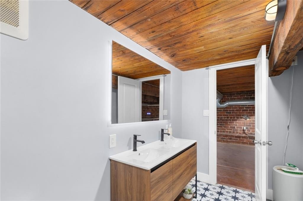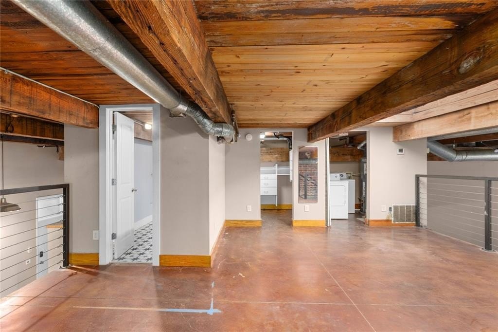 Welcome to the historic Storage Depot Lofts....industrial character, exposed beams and modern convenience in one of Atlanta's most connected and rapidly evolving neighborhoods. Perfectly positioned in the shadow of Mercedes-Benz Stadium, this expansive two-bedroom, two-bath loft offers an exceptional blend of walkability, privacy, and is move-in ready! Enjoy effortless access to the city with the West End MARTA station just a short walk away, along with nearby destinations including Adair Park, The Met, local restaurants, coffee shops, artist shops, makers markets and retail. Whether you're commuting, entertaining, or exploring Atlanta, this location ticks all the boxes. Inside, the home features a thoughtfully updated interior with newly renovated bathrooms, newer appliances, updated HVAC, new casement windows, dry bar with wine fridge. and a newer water heater = peace of mind and move-in-ready ease. The open loft layout is ideal for both everyday living and entertaining, with two oversized bedroom suites, each offering its own private en-suite bath for comfort and flexibility. The unit offers both an interior entrance and a private exterior entrance leading to your own attached deck and greenspace, a rare find that extends your living area outdoors. Additional highlights include audio wiring and projector and all appliances including washer and dryer. Residents also enjoy a secure, gated community, a private garage with EV charging, fitness center and access to a rooftop community deck with jaw-dropping panoramic views of downtown Atlanta, perfect for sunsets, gatherings, or simply taking in the skyline. This is urban loft living at its best.