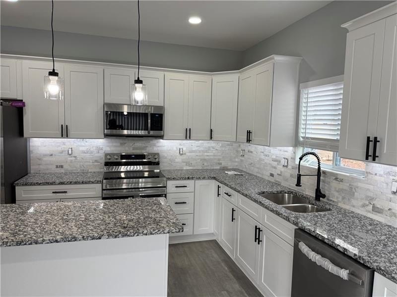 Move-In Ready New Construction Home! This new construction home is ideally located in the heart of Mableton, Cobb County, with an Austell address. Offering 3 spacious bedrooms and 2.5 bathrooms, this beautifully designed NEW HOME is filled with natural light and thoughtfully crafted for modern living. The open-concept floor plan showcases luxury vinyl plank flooring throughout the main level and new carpeting in the bedrooms. The heart of the home is a chef-inspired kitchen featuring crisp white cabinetry with soft-close hardware, granite countertops, brand-new Samsung stainless steel appliances, and ample space for both cooking and dining. Elegant LED lighted mirrors and new light fixtures enhance the warmth and style throughout the home. Step outside to a large, level backyard - perfect for entertaining or relaxing - complete with a new privacy fence for added enjoyment. Conveniently located just minutes from I-20, the Silver Comet Trail, and offering easy access to I-285 and downtown Atlanta, this home combines style, comfort, and location. Don't miss the opportunity to own this stunning new home - virtual staging photos coming soon!