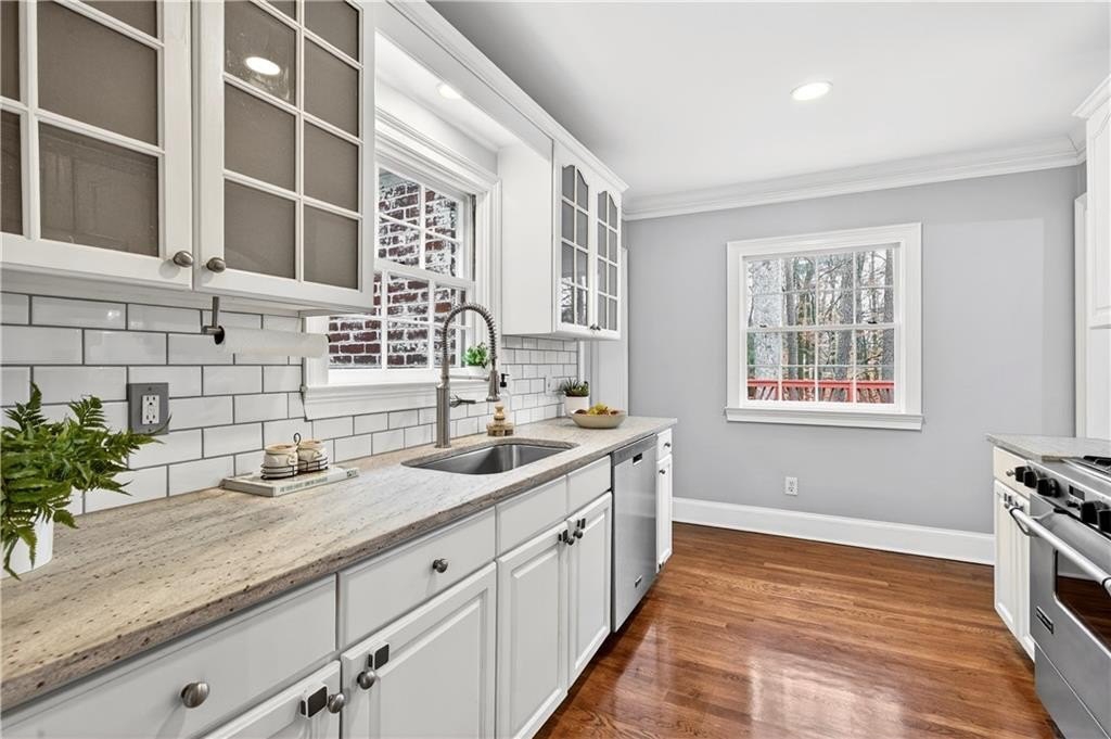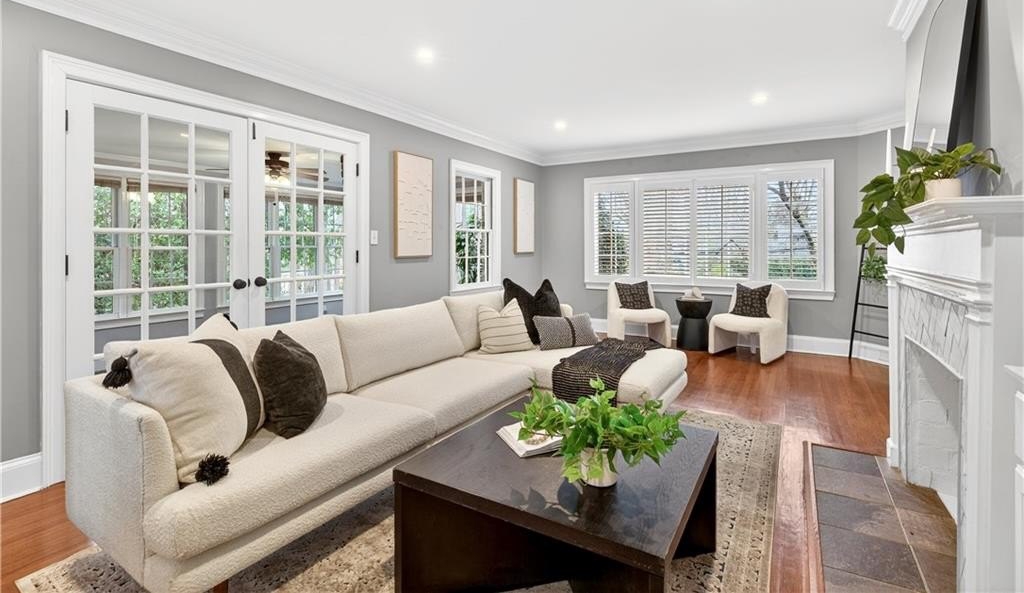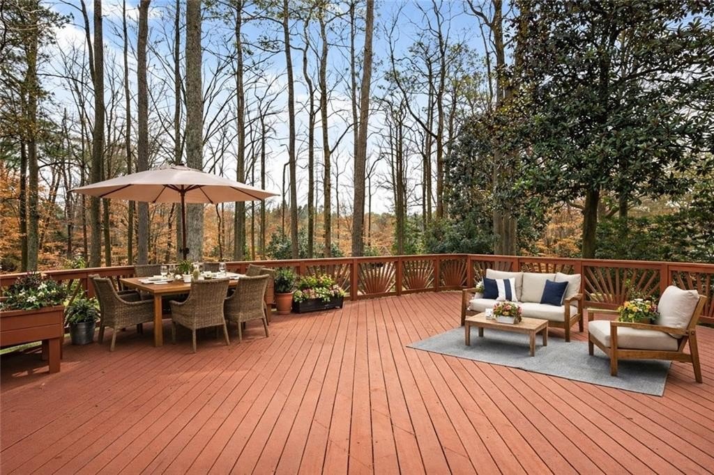 Nestled on an expansive, nearly 3/4 of an acre lot in North Buckhead, this classic brick cottage delivers an intown oasis where privacy, charm and value align. With beautiful outdoor living, timeless architectural charm, and thoughtfully updated interiors, this move in ready home offers both lifestyle and long-term value in one of Atlanta's most desirable areas! Features include warm hardwood floors, three beautifully renovated bathrooms, two oversized upstairs bedrooms, and a spacious third bedroom on the main level that provides exceptional versatility, whether it be a guest retreat, media room, playroom, and or home office. The updated kitchen is efficient and stylish, with stainless appliances, tiled backsplash, stone counters and gas cooking. Enjoy multiple living and dining spaces, including a bonus/sunroom filled with natural light and green sight lines, plus a 2-car attached garage. But the true showstopper is outdoors. Step outside to a huge rear yard, oversized deck, and a fabulous stone patio and outdoor fireplace, your own private entertaining haven for gatherings, quiet nights by the fire, or weekend brunches under the trees. There's room for play, pets, gardens and even a trampoline! Located in the sought after Sarah Smith Elementary district, just minutes to Buckhead's premier shopping, dining, and business hubs, as well as the Northside, Scottish Rite and Emory Saint Joseph's hospital campuses, this home offers unmatched convenience without sacrificing privacy. An exceptional value in North Buckhead, welcome home!