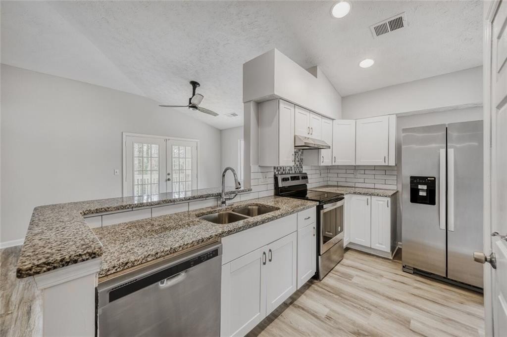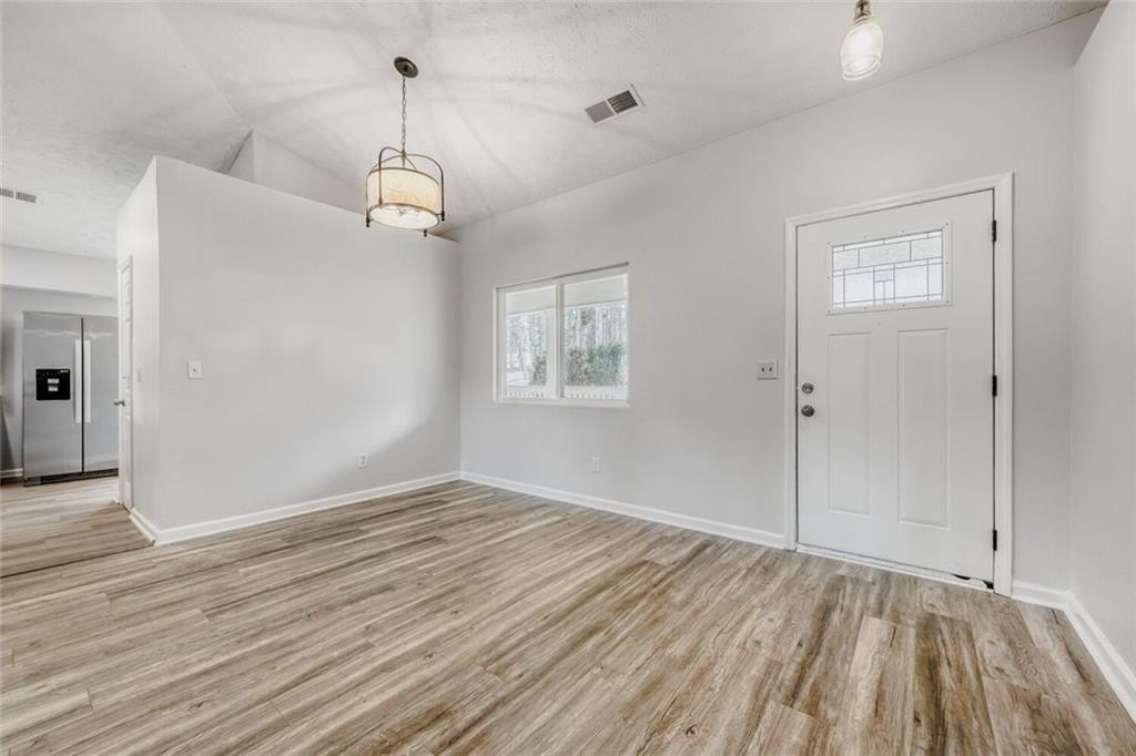 Enjoy lovely southern charm in this beautifully renovated home featuring a classic front porch and a spacious back deck. This property offers lake views and has been freshly painted inside and out. The home includes numerous upgrades: a new roof, concrete driveway, energy-efficient windows, HVAC system, and water heater. The interior features new cabinets, vanities, and toilets throughout. New flooring has been installed, including tile in the kitchen and bathrooms, laminate in the living and dining areas, and carpet in the bedrooms. The kitchen and bathrooms are finished with new granite countertops, and the kitchen further features new stainless-steel appliances and a stylish backsplash. Do not miss this exceptional value. Please reach out to schedule a viewing of this move-in-ready home.