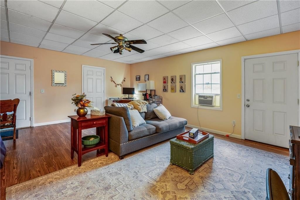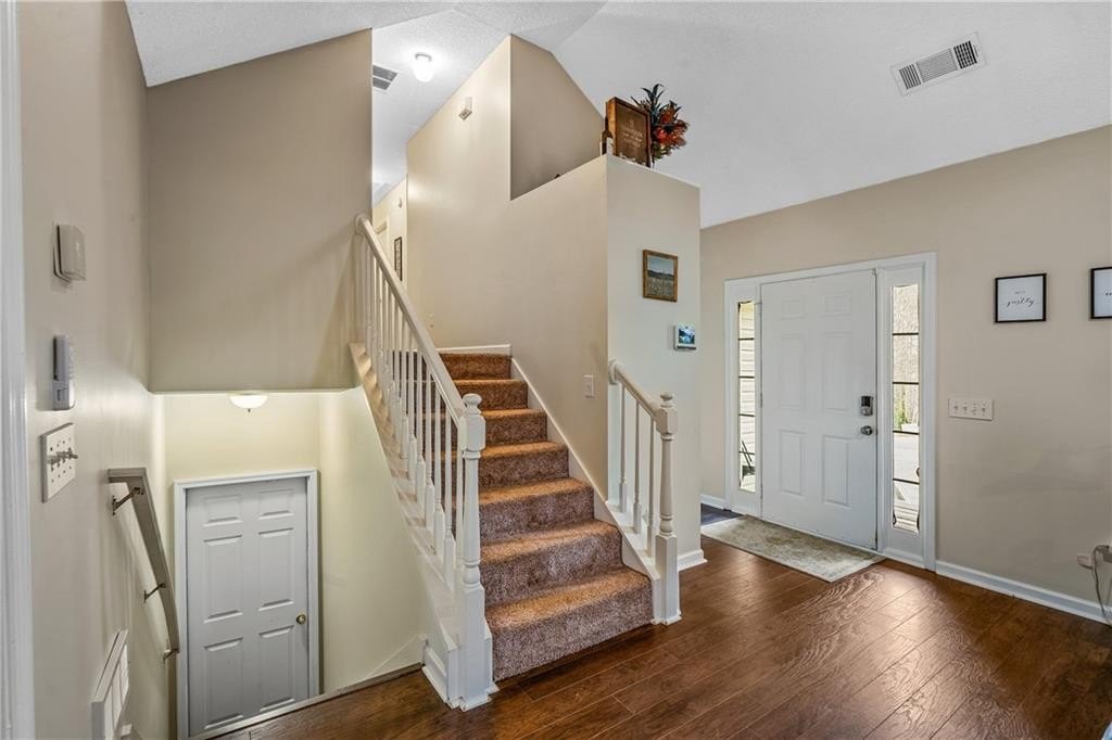 Step inside this beautifully split-level home and feel instantly at ease. The inviting main level features a spacious semi-open layout with vaulted and tray ceilings, arched doorways, bay windows, and a stunning stacked-stone fireplace anchoring the living room. The updated kitchen flows seamlessly into the dining and living areas-perfect for everyday living and entertaining alike. Upstairs, you'll find two generously sized secondary bedrooms, a full bath, and an oversized primary suite complete with tray ceilings, a walk-in closet, and a private ensuite featuring a jetted soaking tub and separate shower-your own retreat at the end of the day. The lower level offers a huge bonus room with endless possibilities: media room, home gym, playroom, office, or man cave-flexible space to fit your lifestyle. Outside, enjoy a large, level, fully fenced backyard, ideal for pets, play, and outdoor gatherings. Recent improvements include fresh interior paint and all-new flooring throughout, along with an updated kitchen, making this home truly move-in ready. No HOA and no rental restrictions, offering both homeowner freedom and investment potential. Conveniently located near downtown Canton, Riverstone Parkway, and the new Cherokee High School, this home is perfectly positioned for shopping, dining, and everyday convenience.