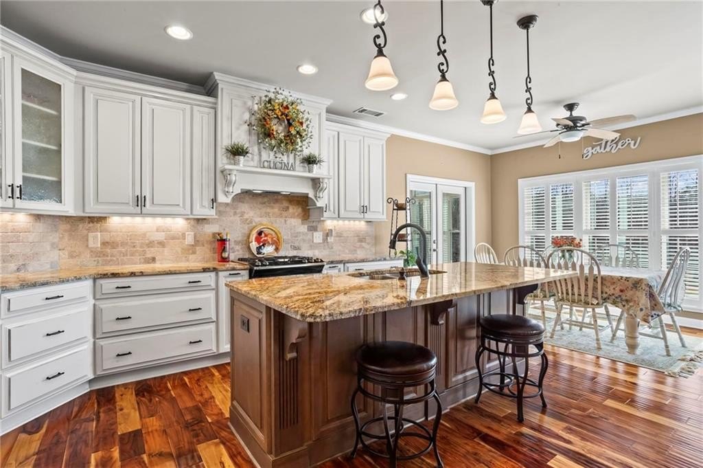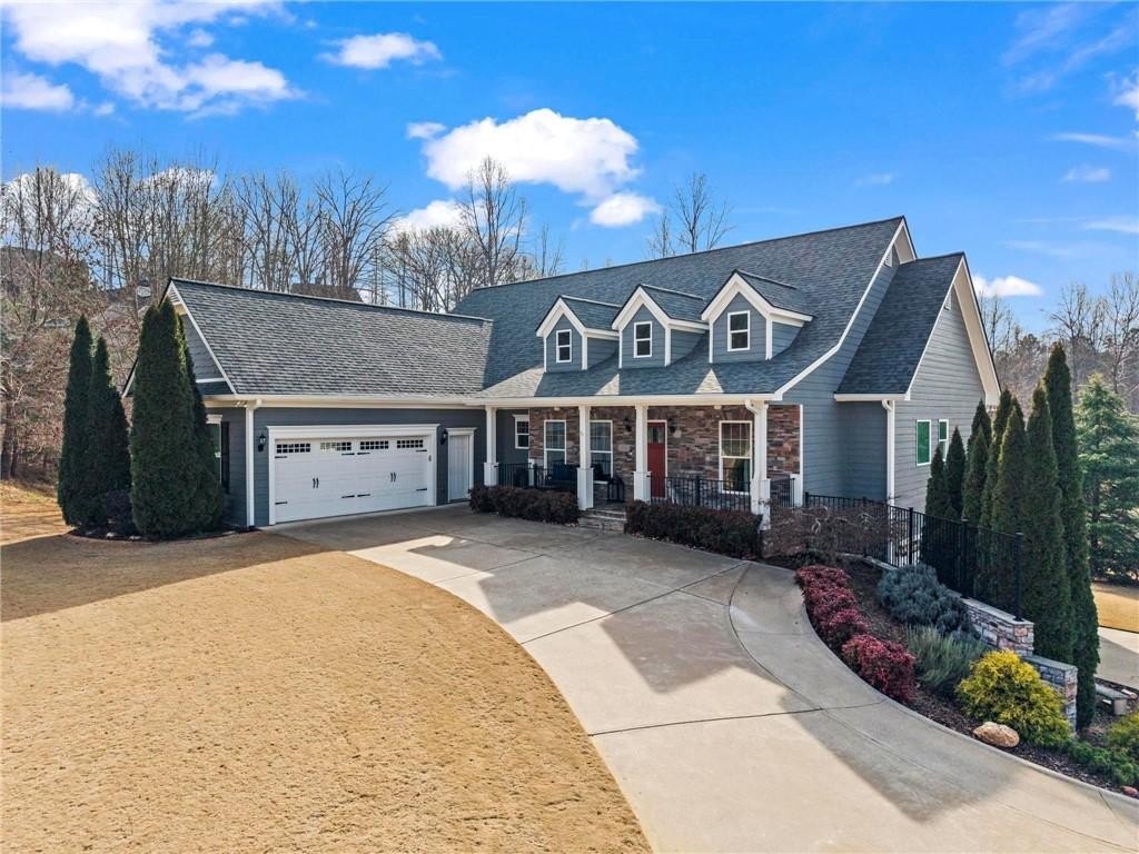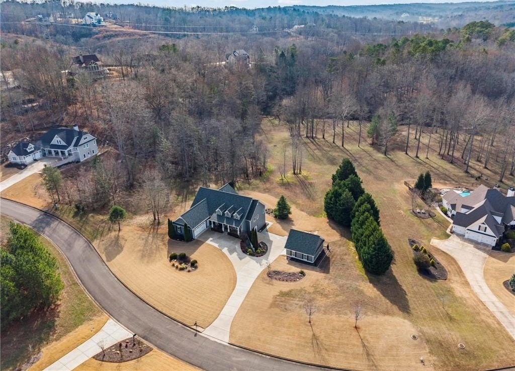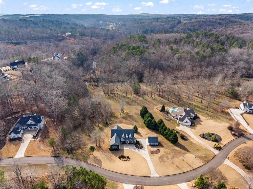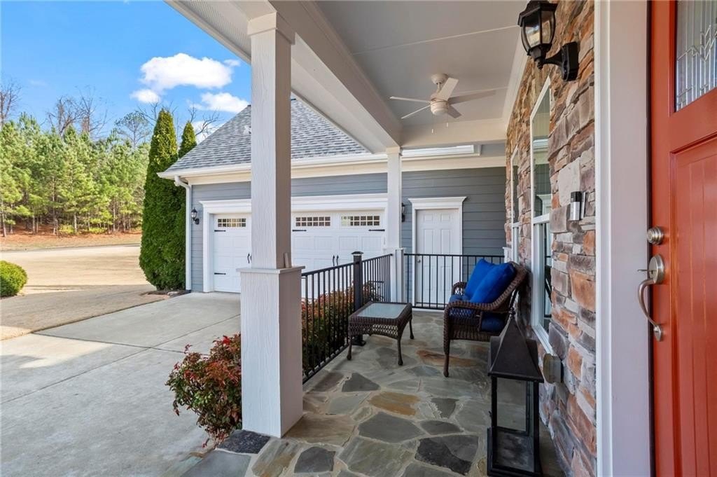 Nestled on over three acres of private, park-like grounds with beautiful frontage along Sharp Mountain Creek. This dream home in Ball Ground blends timeless Traditional charm with elevated rustic comfort. Designed for both relaxed living and welcoming gatherings. The home offers four bedrooms and four bathrooms, including a peaceful primary suite on the main level featuring a spa-like bath with a soaking tub. Open-concept family living centers around a warm, inviting kitchen with gorgeous granite countertops, rich hardwood floors, and a striking see-through fireplace that adds character and coziness to the living spaces. Two inviting all-weather rooms provide year-round enjoyment of the surrounding natural beauty. The upper level features one private bedroom with a full bath, ideal for guests or a quiet retreat. The fully finished basement, complete with a full kitchen, provides exceptional flexibility for multigenerational living or private guest accommodations. Additional highlights include a whole-house water softener, a 5 car garage (two on main level, one basement level and two detached spaces), and a custom irrigation system. Ideally located just two miles from charming downtown Ball Ground, minutes from the interstate, and approximately 20 minutes from downtown Woodstock and Jasper, this peaceful retreat is situated within the sought-after Creekland and Creekview top-rated school district. More than a home, this is a sanctuary-where nature, comfort, and craftsmanship come together. Don't let this one get away!