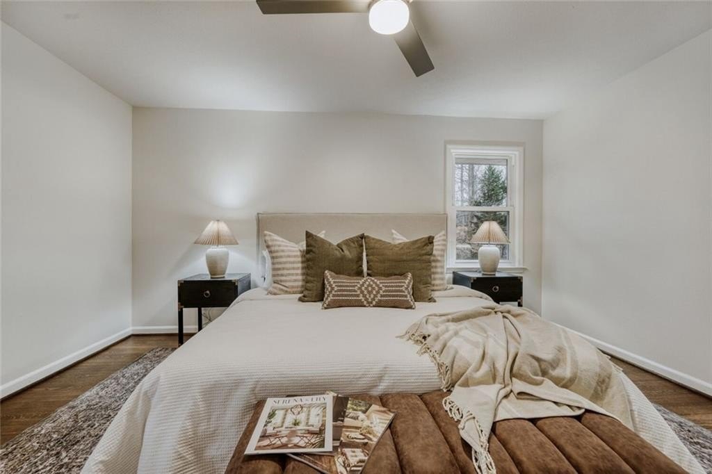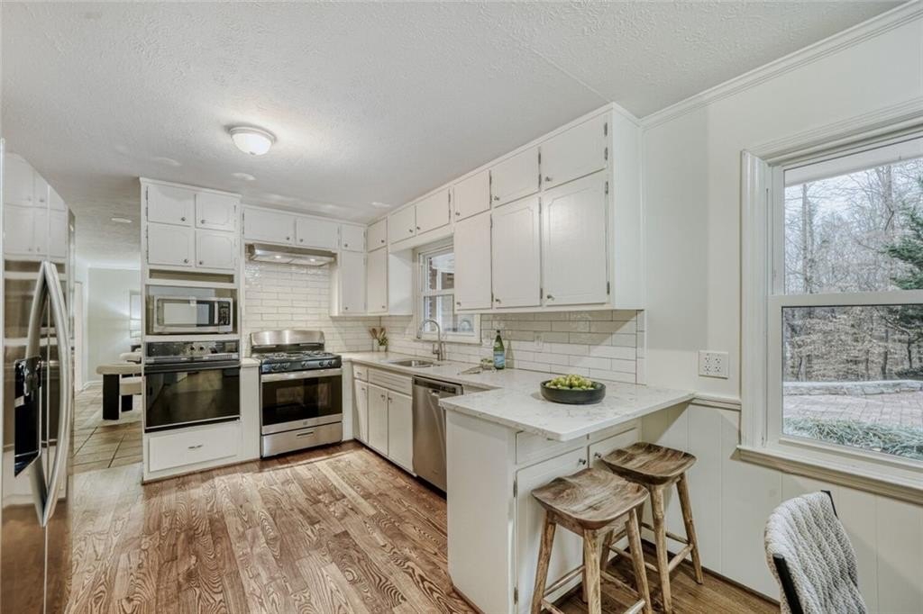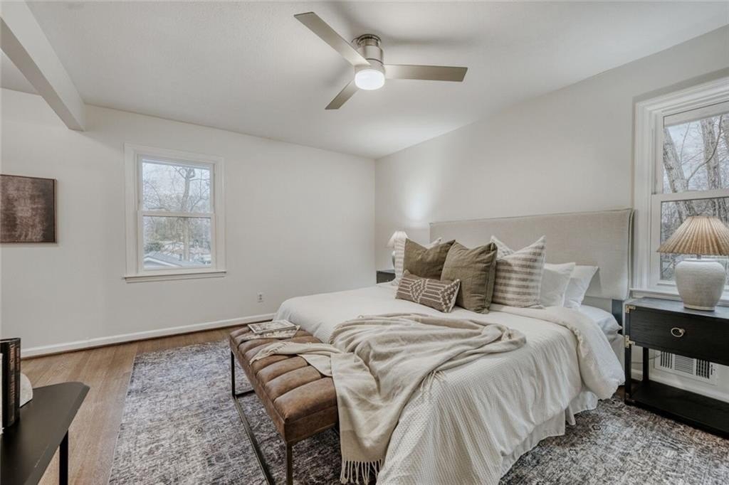 Set on a quiet rise along Landeau Circle, this inviting home enjoys a prime position on a sought-after street just minutes from I-285, offering everyday convenience with easy access to Winding Vista's swim and tennis amenities and a pleasant walk to Midvale Elementary in the heart of Tucker. Lovingly maintained, the home features a thoughtful blend of updates and timeless charm, including a beautifully renovated kitchen with quartz countertops, crisp white cabinetry, a subway tile backsplash, a new gas range, and an upgraded exhaust hood, while refinished hardwood floors add warmth throughout the main living areas. The spacious primary suite offers room for a sitting area, dual closets, and a private bath with double sink vanity and a walk-in shower, complemented by a second main-level bedroom with its own ensuite bath and generous closet space. The family room is anchored by a cozy gas fireplace, and one of the home's standout features is the beamed screened porch, providing a peaceful retreat overlooking the oversized, private backyard. The finished lower level further enhances the home with two additional bedrooms, a full bath, and a versatile bonus room ideal for a game room, media space, or second recreation area. You can't beat this home for its combination of space and location, with convenient access to downtown Tucker, Decatur, Emory/CDC and Midtown.