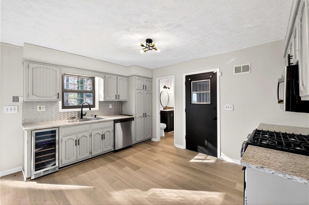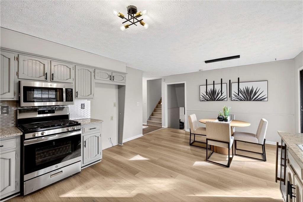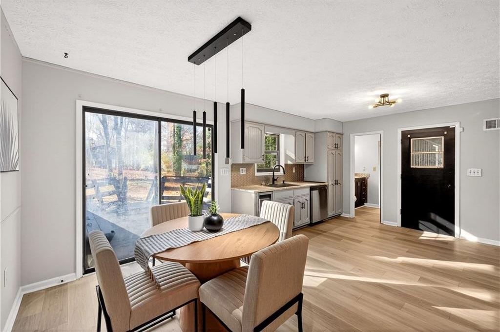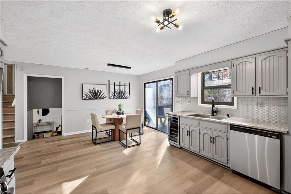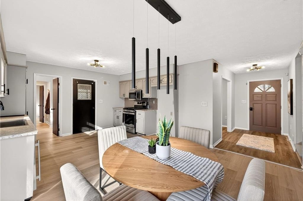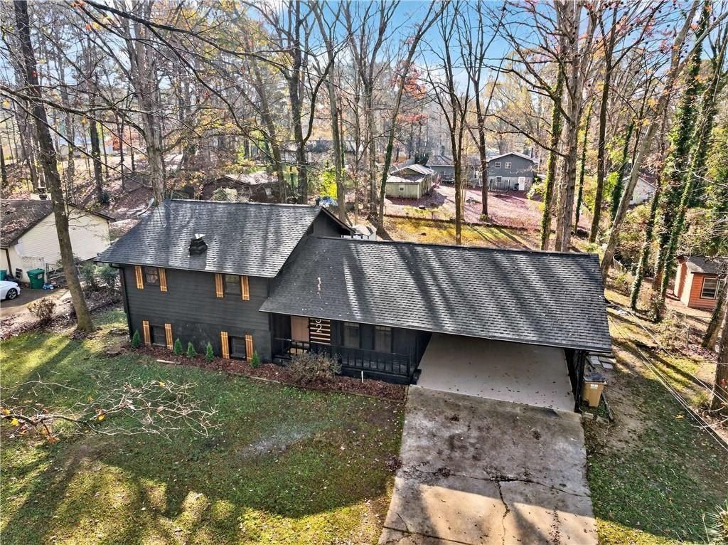 Set back on a level, wooded lot, this split-level home feels quietly settled-open to the trees, open to light, open to everyday living. The yard stretches out wide and usable, inviting play, gatherings, and long afternoons outdoors. Just off the eat-in kitchen, the deck steps down with the home, overlooking the open expanse beyond-an easy place for grilling, lingering, and watching the seasons shift. Inside, light moves generously through the kitchen and dining area, softening newly painted walls and reflecting off updated surfaces. Three bedrooms and two full baths are thoughtfully arranged, while the terrace-level great room offers a grounded retreat, centered around a fireplace that anchors the space. An extra room near the foyer flexes easily-office, sitting room, or play space-while a full laundry room sits conveniently off the kitchen. Recent cosmetic updates include fresh interior and exterior paint, new granite countertops, updated bath vanities and mirrors, new LVP flooring in the main living areas, updated lighting, painted kitchen cabinets, and new appliances including dishwasher, microwave, stove, and wine fridge. The roof is just two years old. A two-car carport and long drive provide ample parking. The setting is calm, the updates considered, and the space ready for its next rhythm of life.