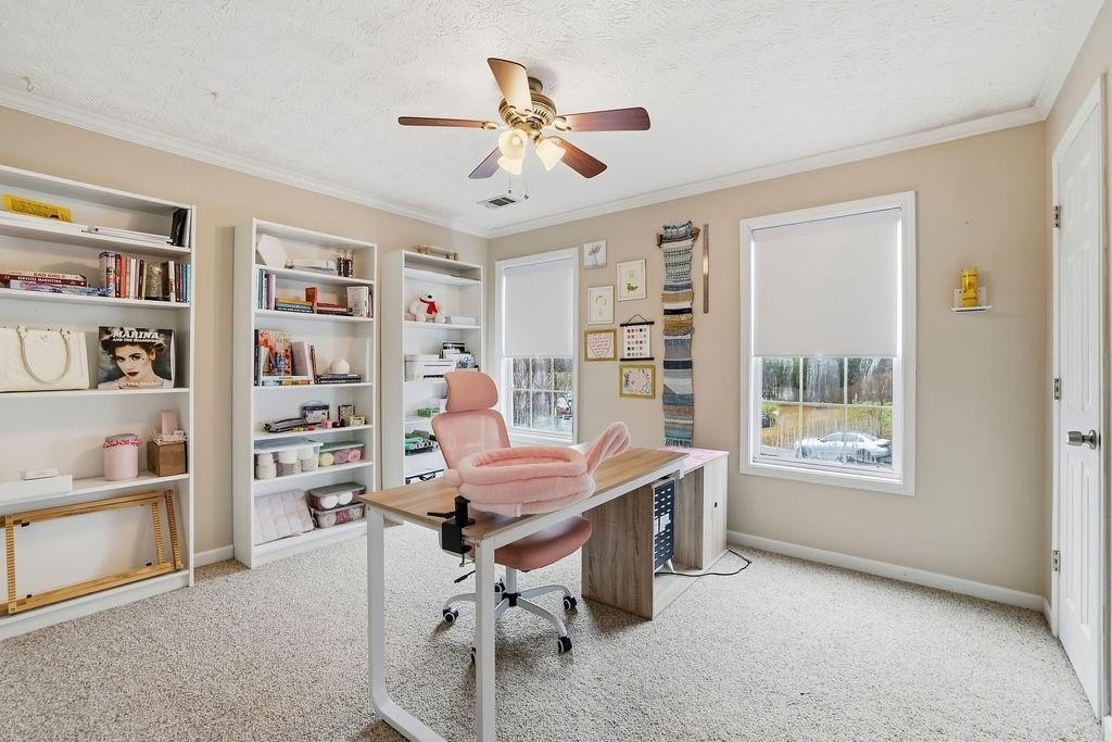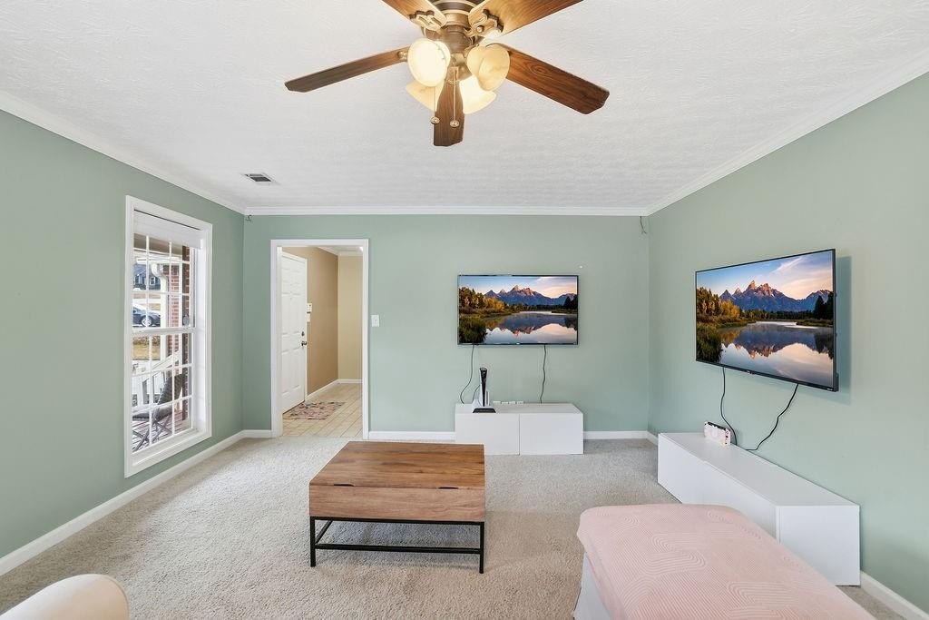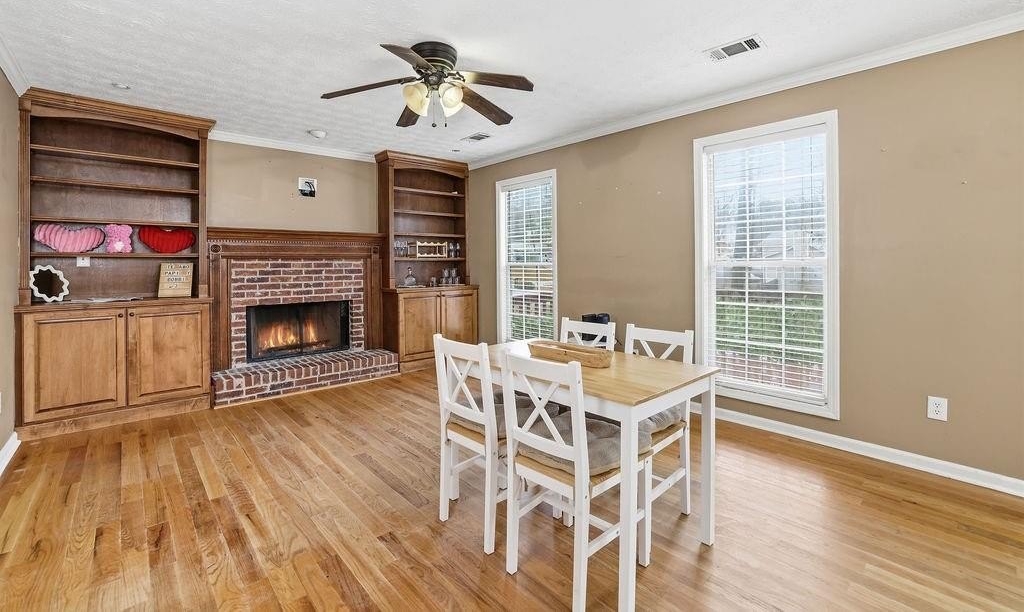 From the welcoming covered front porch to the sun-filled interior, this 4-bedroom, 2.5-bath home invites you to settle in and stay awhile. The classic brick front adds timeless curb appeal, while the thoughtfully designed interior offers both formal and casual living spaces. The main level offers a formal living room and a warm, welcoming family room highlighted by a brick fireplace and custom built-in cabinets. A large kitchen provides ample workspace and storage, complete with a breakfast bar for casual dining, and flows effortlessly into a separate formal dining room, ideal for gatherings and entertaining. Upstairs, the oversized primary suite serves as a private retreat, while skylights and cathedral ceilings fill the home with natural light and enhance its open, airy feel. Step outside to enjoy the newly built back deck overlooking the fenced in backyard, perfect for outdoor living, entertaining, or pets. A wonderful blend of space, comfort, and timeless character. Brand new 2025 HVAC, Furnace, Water Heater and Dishwasher! This home is ready to impress.
