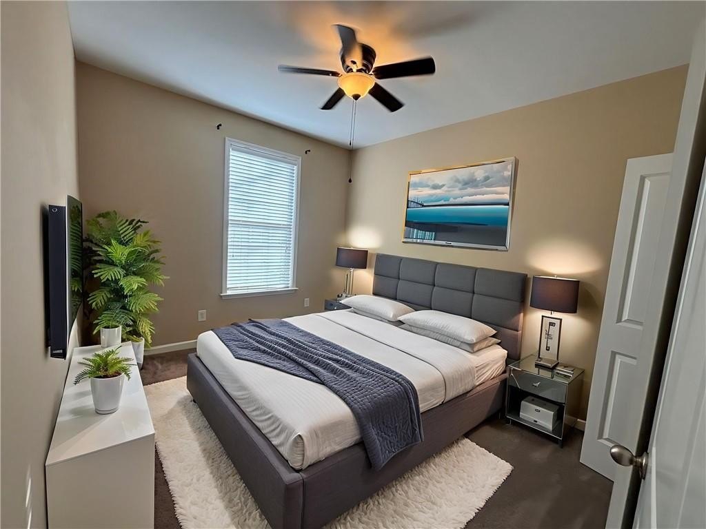Beautifully maintained end-unit townhome is move-in ready with all major systems well cared for. Located in the highly sought-after Concord Trails community in Mableton, this home offers direct access to the Silver Comet Trail, perfect for walking, running, biking, and outdoor enjoyment. This spacious two-story townhome features an open-concept kitchen ideal for entertaining and everyday living, complete with stainless steel appliances and pull-out cabinetry for added convenience. The sun-filled living room boasts large rear windows and double doors leading to a private patio, creating a peaceful retreat surrounded by mature trees and nature. Newly refinished hardwood floors span the main living areas, while plush carpeting adds comfort to the bedrooms and stairway. The home offers two bedrooms plus a versatile bonus room, perfect for a home office, workout space, or flex room. There are 2.5 bathrooms, including a primary suite with a newly renovated custom closet. The lower level includes a full bathroom and laundry room with generous cabinetry and extra storage. The home offers an attached two-car garage, and a large dedicated storage area, with additional storage under the stairs and in the laundry room. Additional features include: End-unit surrounded by nature Smoke-free & pet-free home Mounted 65" TV with soundbar included Thoughtful upgrades throughout The HOA covers trash pickup, termite service, exterior pest control, and landscaping. Enjoy easy access to shopping, dining, entertainment, major highways, and main roads, making commuting and daily convenience effortless. With guest parking across the street.