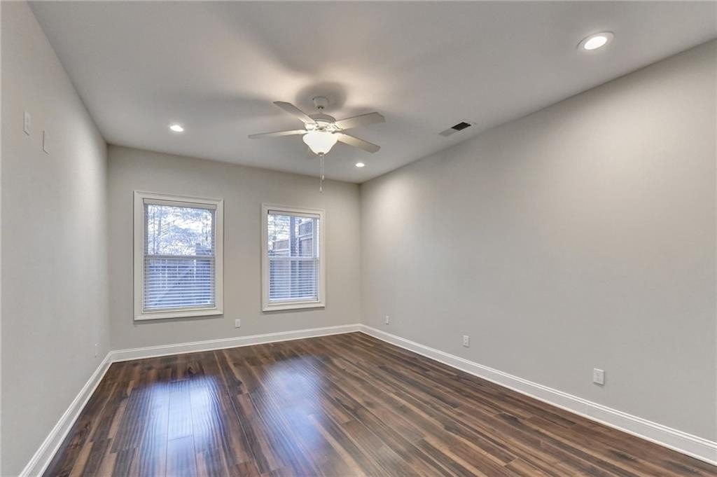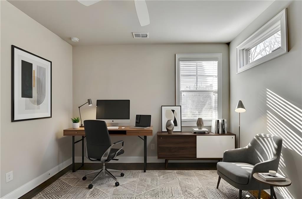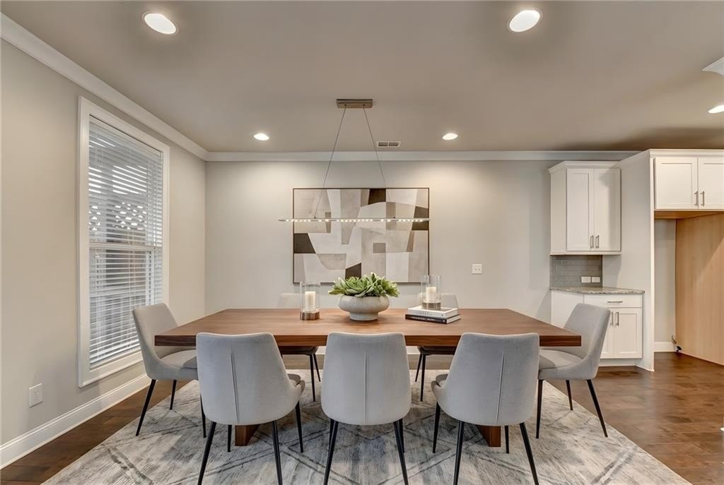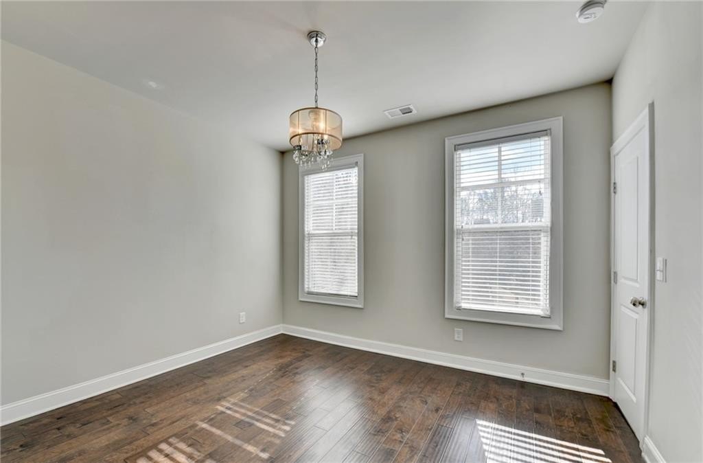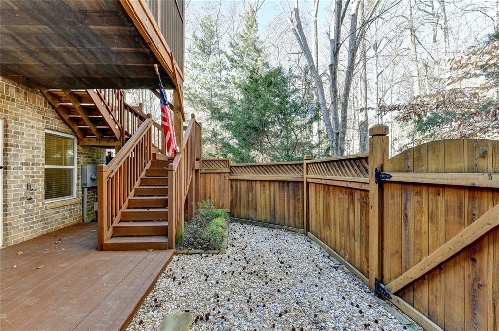 Nestled inside a sought-after gated community, this home places you moments from it all- boutique shopping, top dining, movie theaters, cozy coffee shops, scenic parks, the Avalon, and the lively charm of downtown Alpharetta- while still offering a peaceful sense of retreat This spacious, and beautifully designed END UNIT townhome will sure impress the most discerning buyer. It is BRIGHT, and completed with LUXURIOUS UPGRADES, including beautiful HARDWOOD flooring through out. It offers 3.5 bathrooms, and 4 bedrooms, with one of the three bedrooms upstairs, configured to be an office- the current owners moved the closet wall and door, which is easy to undo, if you so wish in the future. The whole feeling of this home conveys a blending of COMFORT, STYLE, and FUNCIONALITY The expansive primary suite is located on the second floor, and features a SPA-LIKE BATHROOM with luxurious stand-alone soaking tub, creating a true retreat. The CHEF'S KITCHEN is a standout, showcasing abundant WHITE CABINETRY, a LARGE CENTER ISLAND and a generous dining space- perfect for entertaining family and friends. The OPEN LAYOUT enhances both everyday living and hosting. The LOWER LEVEL includes a PRIVATE BEDROOM and a FULL BATHROOM, ideal for guests, in-laws, teenagers or a versatile media room. This space is already equipped with a projector and screen, making it perfect for a HOME THEATER EXPERIENCE. Step outside to enjoy a private outdoor area, ideal for grilling, relaxing or simply taking in the surrounding natural scenery.