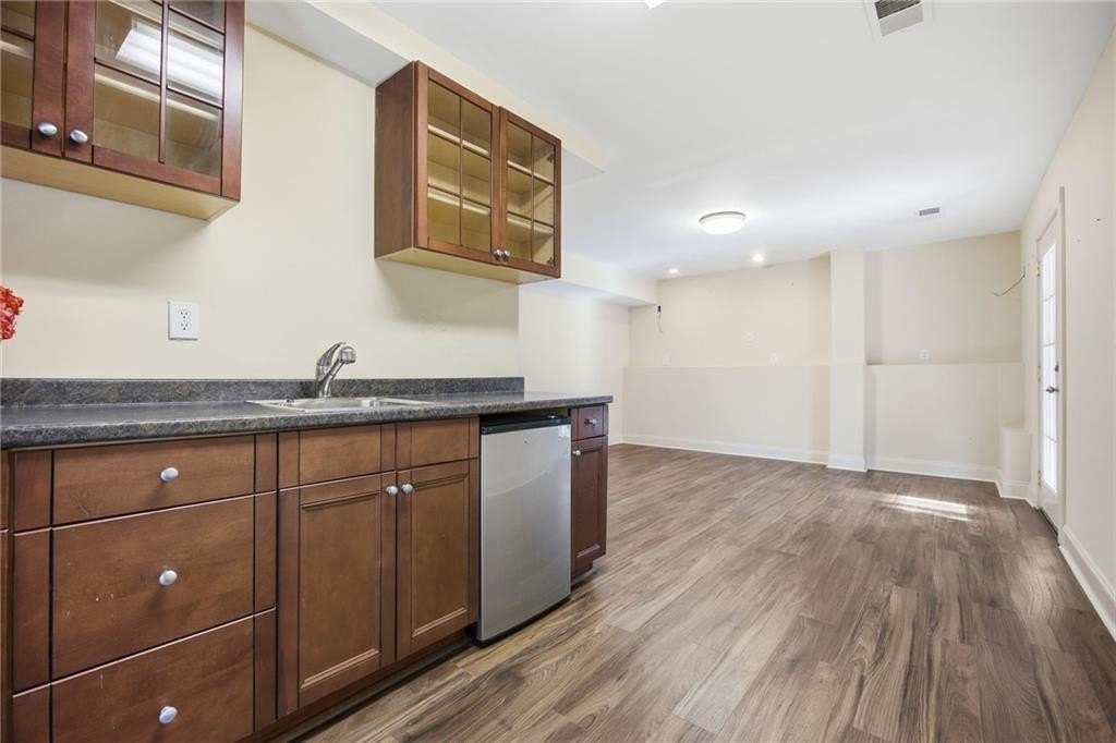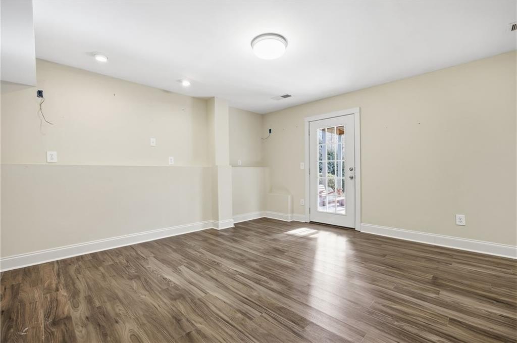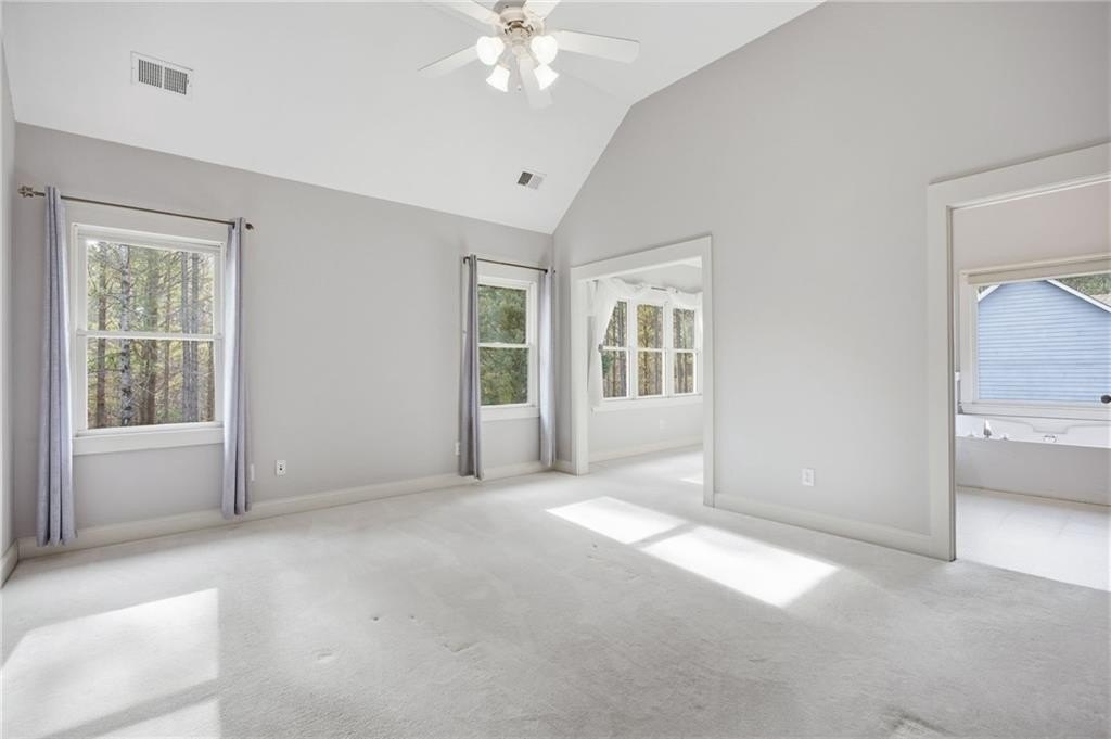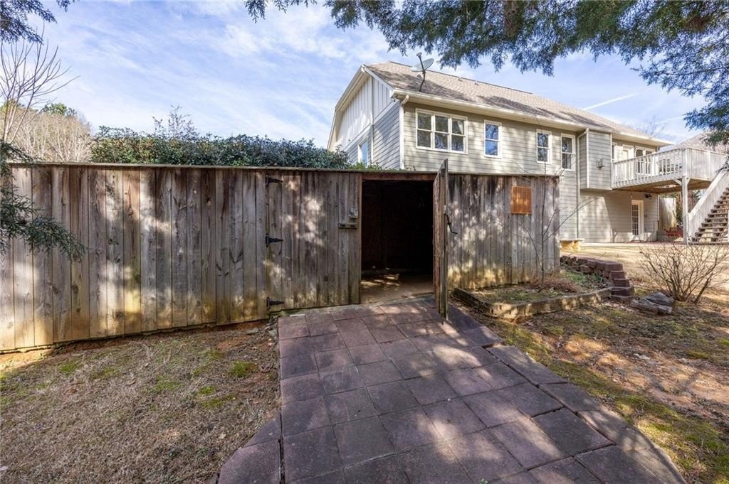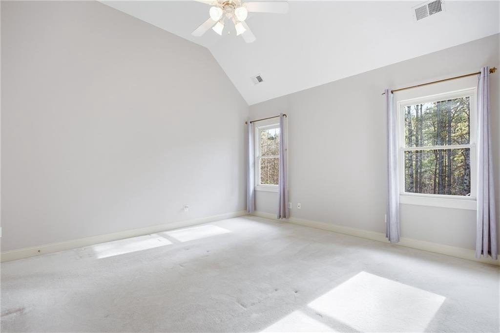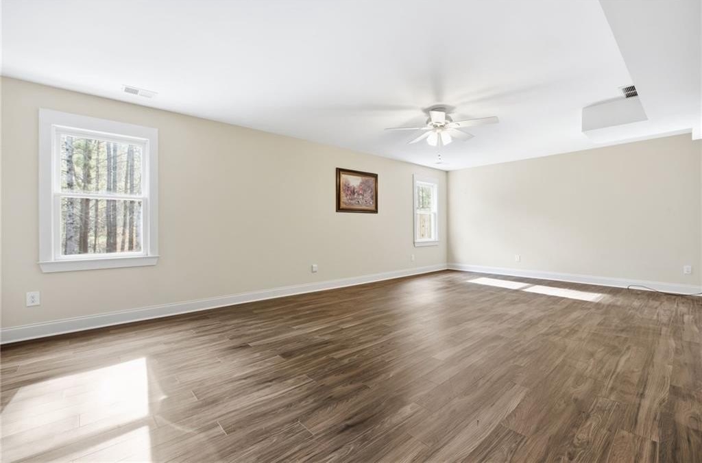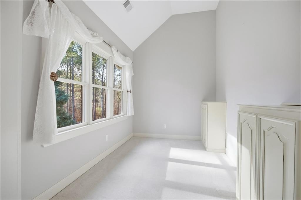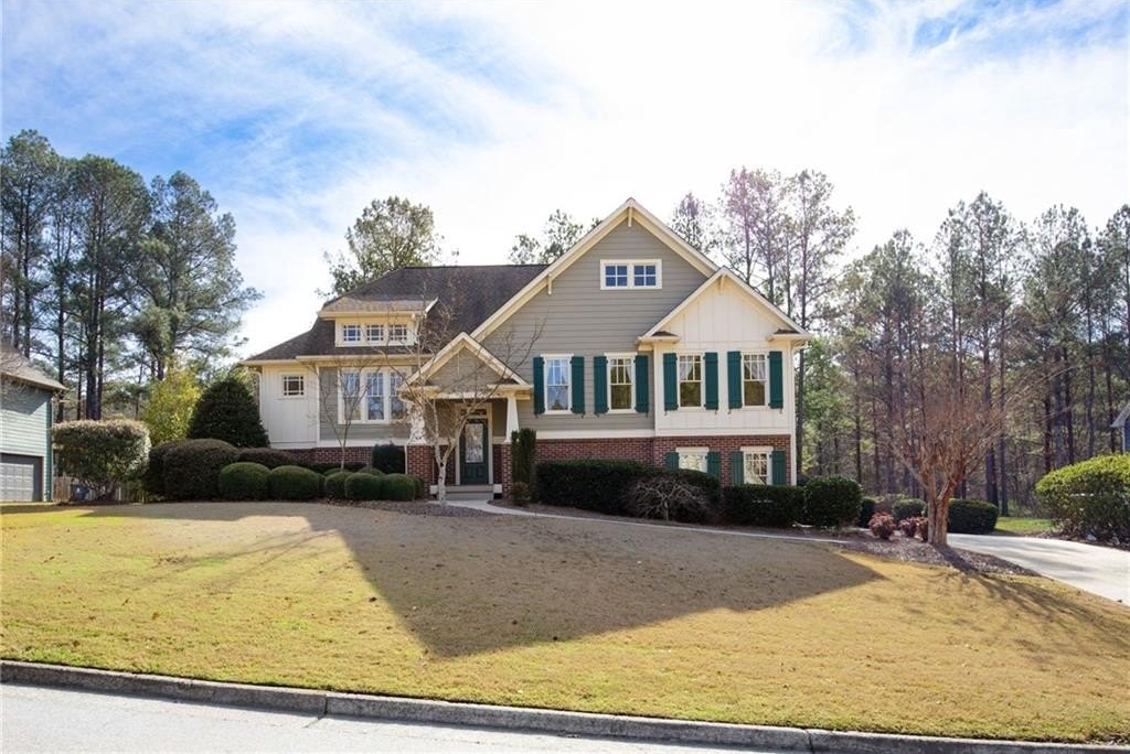 Light-filled, private wooded oasis, finished basement. Beautifully maintained 3-bed, 3-bath home on a private 0.46-acre wooded lot in the desirable Capitol at Senators Ridge subdivision - offering comfort, versatility, and outstanding community amenities. A charming covered front porch invites you into an open layout with hardwood floors. The vaulted great room features a cozy fireplace flowing seamlessly into the open-concept dining area, highlighted by high ceilings and stylish board-and-batten detailing - perfect for everyday living and entertaining alike. The eat-in kitchen features stainless steel appliances, pantry, and convenient access to the laundry room. The sunny breakfast area boasts a vaulted ceiling and overlooks the deck, providing peaceful views of the wooded backyard. The primary suite on the main level features vaulted ceiling, private sitting area, and ensuite with double vanity, soaking tub, separate shower, and a spacious walk-in closet. Two additional bedrooms and full bath provide space for family or guests. The finished basement expands your living footprint and is ideal for multi-generational living. It has a large family room, wet bar, bonus room, full bath, and a versatile flex space perfect for a home gym, office, or additional bedroom. Enjoy outdoor living with an expansive wood deck and patio overlooking the fenced, wooded backyard - a serene setting for play, gardening, or quiet mornings with coffee. Spacious two-car garage completes this exceptional home. Outstanding community amenities includes two pools - one with a slide and mushroom sprayer, tennis/pickleball courts, playground, and pavilion. Conveniently located near Cobb Parkway, Red Top Mountain State Park, shopping, dining, schools, and quick access to I-75, this home blends everyday convenience with neighborhood charm.