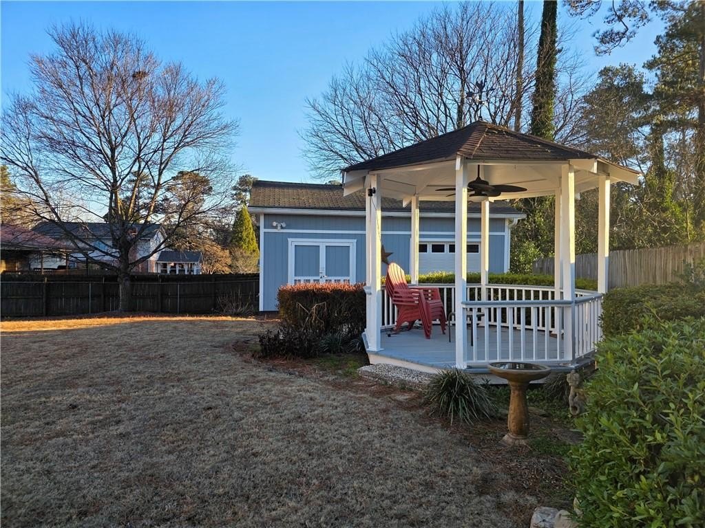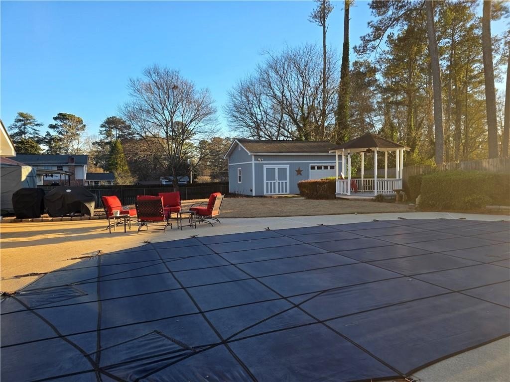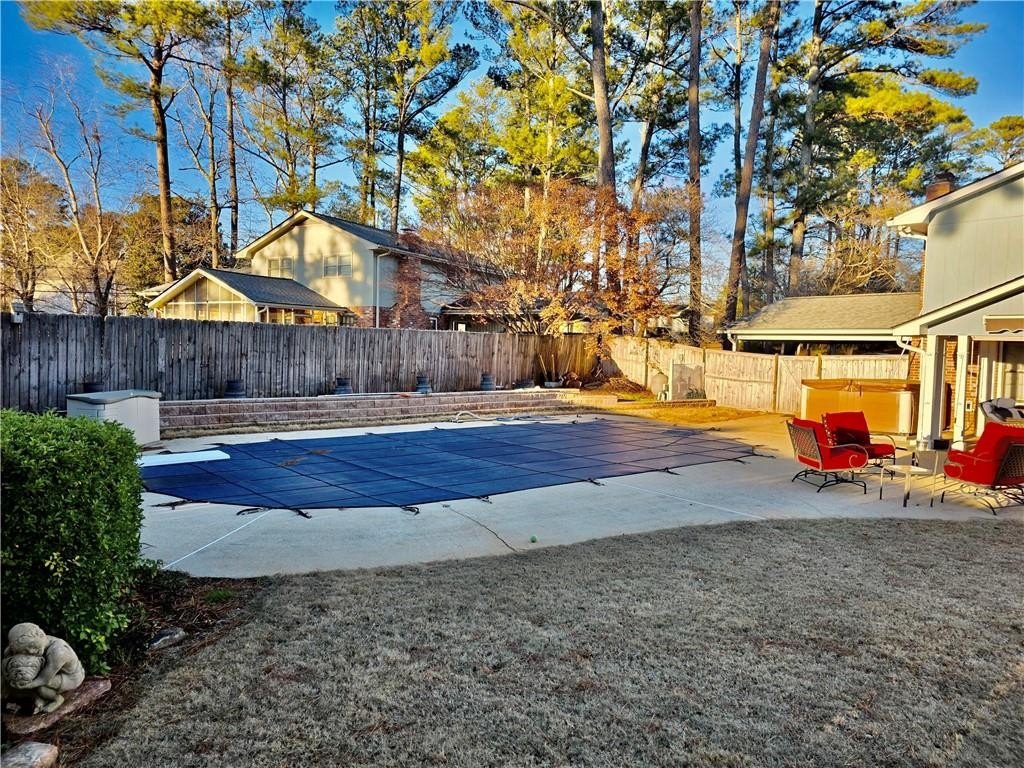 Charming Lawrenceville home with a in-ground Pool! This well maintained split levels residence offers generous living space. The 4 bedroom and 2.5 bath home has many features to enjoy. In the main level of the home features: A Large kitchen with stain cabinets, upgraded granite counter tops, plenty of storage, and stainless steel appliances. The kitchen is also open to the Dining Room and Family Room with a Brick Fireplace. As you walk into the front Foyer of the home on the main level, you will see the large Living Room in which it's currently used as a family movie theater. All bedrooms are located on the upper level. The lower level features a family room, half bath, another large entertainment room with fireplace and built in Bar and Laundry Room. From the lower level you can access the private Fenced Backyard. Enjoy outdoor living with a private in-ground pool and Jacuzzi, ideal fro entertainment or relaxing. The yard also features a versatile detached outbuilding with garage. Perfect for a Pool House, workshop, storage. Relax and have your morning coffee under a covered patio or in the Gazebo. This home is great for a growing family or if you love to entertain. It has it all! Close to shops, grocery store and restaurant. Easy access to major highways.