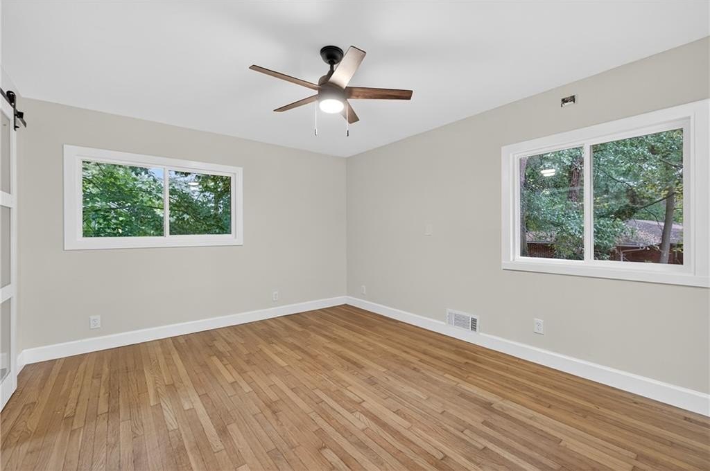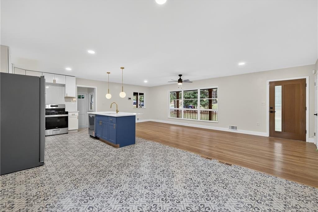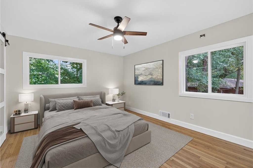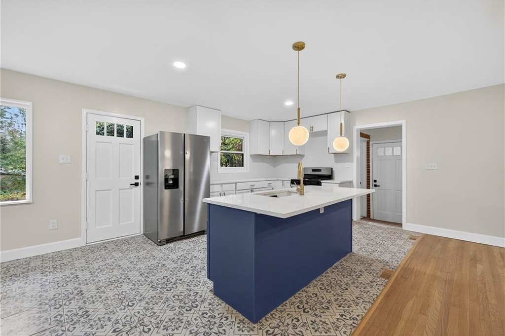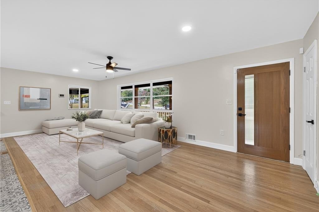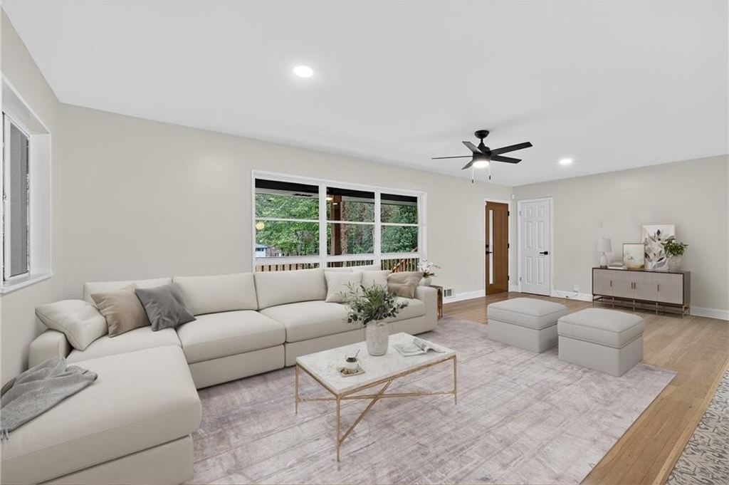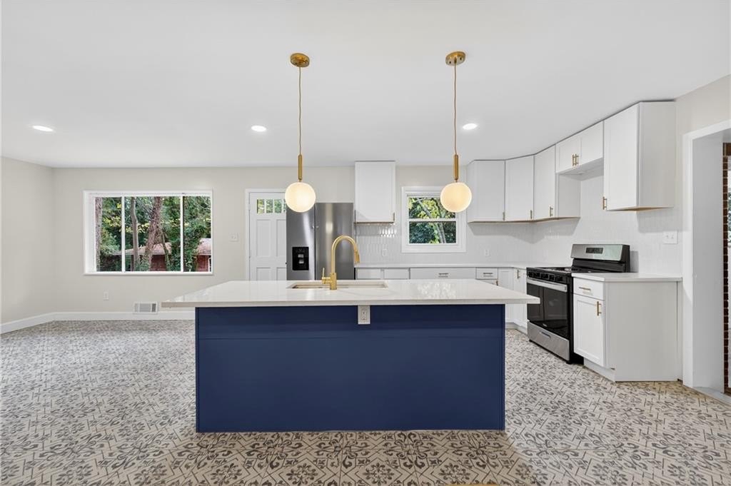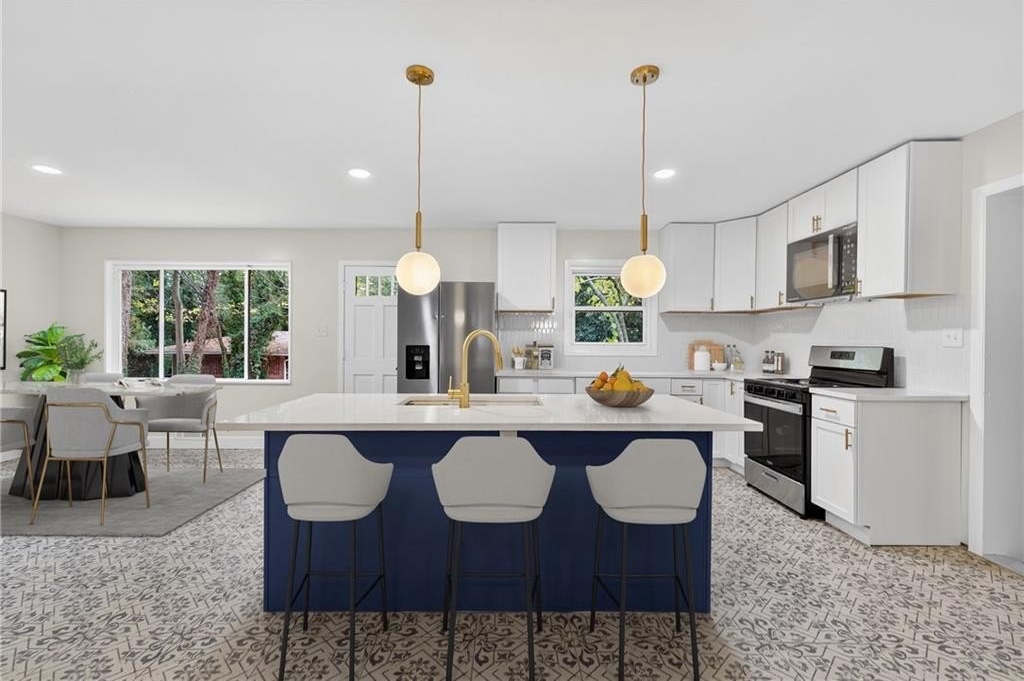 Welcome to this stunning 4-bed, 3-bath ranch-style home on a spacious .56-acre corner lot in the heart of Atlanta! Thoughtfully redesigned with modern comfort and timeless character, this home showcases soothing blue palettes, custom kitchen cabinetry, and spa-inspired bathrooms that bring a sense of calm and sophistication. The chef's kitchen features brand-new, high-end appliances, elegant finishes, and plenty of workspace-perfect for entertaining or everyday living. The open-concept design flows seamlessly into the dining and living areas, creating a bright and inviting atmosphere. Downstairs, the fully finished daylight basement offers incredible flexibility - featuring a private bedroom and bath suite with its own entrance, ideal for multigenerational living, guests, or house-hacking opportunities. The bonus area can easily be outfitted with a kitchenette to create a standalone rental suite for additional income potential. Situated on a beautiful corner lot, this property offers privacy, curb appeal, and room to expand. With new appliances, upgraded systems, and stylish finishes throughout, this home is truly move-in ready. Don't miss your chance to own this thoughtfully updated gem that blends functionality, beauty, and opportunity - all in one perfect package!