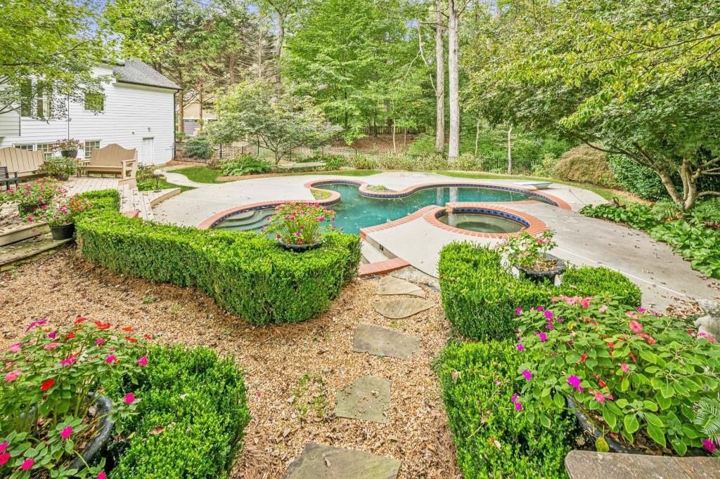 This gorgeous executive-style home is just what you have been waiting for. This custom-built home is on over 1/2 acre lot. There are upgrades and high-end finishes throughout. When you walk in the door, you will appreciate all the hardwood floors. Custom trim work and high ceilings. Plantation shutters on all the windows on the first and second floors. The entire home is freshly painted in light neutral tones. Formal living room and dining room are off the foyer, and there is a large vaulted great room with a fireplace and built-in bookshelves. The kitchen was just recently renovated, and it's to die for with custom cabinetry, sleek quartz countertops, large center island, induction cooking, wall oven, microwave, warming drawer, wine cooler, farmhouse sink, lots of quartz countertops, new modern lighting, and the built-in bookcase is perfect for your cookbook collection. The pantry features custom shelving and a leaded glass door. Large breakfast room. Laundry room on the main level with a sink. The primary bedroom suite is on the main and has a fireplace flanked by built-in bookcases. The primary bath is gorgeous with two vanities, soaking garden tub, large walk-in shower with multiple shower heads, beautiful tile, new lighting & plumbing. Custom closet with plenty of drawers and racks. Upstairs are 3 large bedrooms. Two bedrooms share a Jack-and-Jill bath. There is a second suite upstairs, as well as a bonus room that doesn't have a closet, that would make a great upstairs den, craft room, or media space. A sunroom with a TV built in and a split HVAC unit. The basement is spacious and is ready for your next big gathering. A media room, billiards room, wet bar with a sink & beverage refrigerator, a bedroom, full bath with a walk-in shower, plus a 2nd laundry room. If you put a microwave in the bar, it's a great multigenerational apartment. The backyard is a private oasis with a heated pebbletech saltwater pool with a spillway spa. There are so many gorgeous plants and trees all over this mature landscape. Huge front porch is ready for your decorator's touch, plus a large rear deck. The basement has plenty of storage. Irrigation system. A wonderful one-car-sized shed for your yard tools, golf cart, motorcycle, etc. Central vacuum system. Roof is only 3 years old. In the Peachtree Ridge Cluster. Minutes from I-85. There is no HOA.