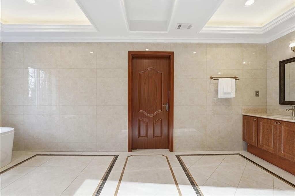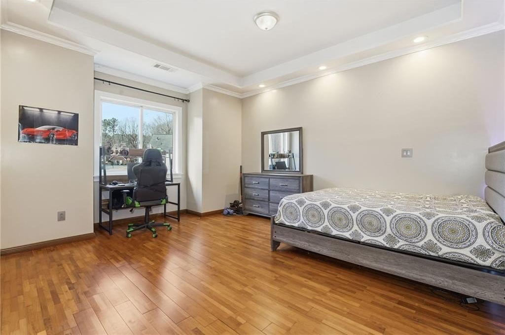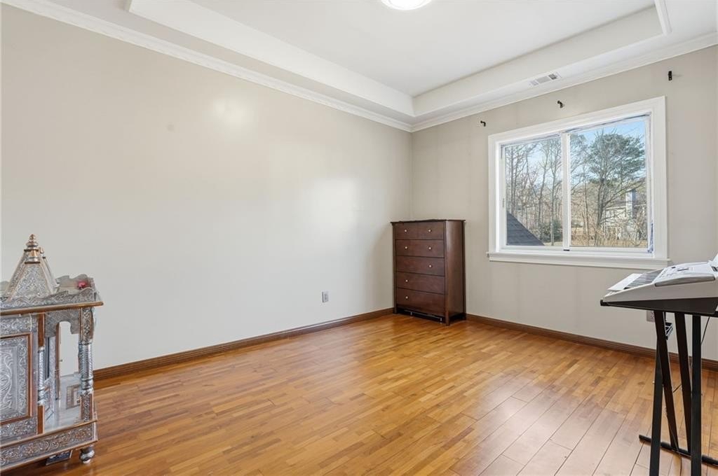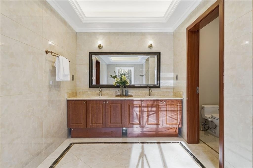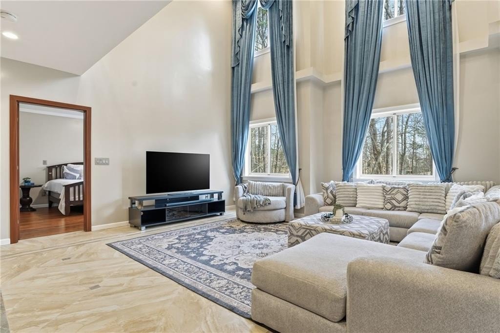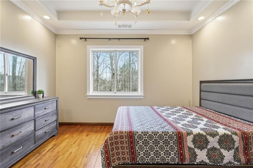 Welcome to a thoughtfully designed steel frame home that blends timeless elegance with everyday comfort in one of Suwanee's most desirable areas. Tucked away on a quiet cul-de-sac and offering a northwest-facing orientation, this residence makes a striking first impression with a two story foyer featuring beautiful decorative tile flooring. Natural light pours in throughout the home, enhancing the two story great room with its elegant coffered ceiling and creating an inviting sense of openness. Recessed lighting throughout creates a warm yet refined atmosphere, while tray ceilings and chandelier lighting in the bedrooms add an extra layer of sophistication. The main level includes a bedroom ideal for guests or multigenerational living, along with a formal living room well suited for entertaining or quiet gatherings. A second kitchen provides exceptional flexibility for hosting, extended living arrangements, or culinary creativity. Tile and hardwood flooring extend throughout the home, offering both timeless style and an allergen-friendly environment. Upstairs, the oversized primary suite serves as a true retreat, featuring decorative tiled floors in the bathroom and a large walk-in closet designed for comfort and organization. The basement adds valuable additional space ready to accommodate recreation, work, or relaxation, allowing the home to adapt easily to a variety of lifestyles. Conveniently located near Suwanee Town Center, nearby parks, greenway trails, and a vibrant selection of dining and shopping destinations, this home offers easy access to outdoor recreation and year-round community events. With its architectural detail, flexible living spaces, and prime setting, this home delivers a refined yet welcoming place to enjoy everything the Suwanee area has to offer.