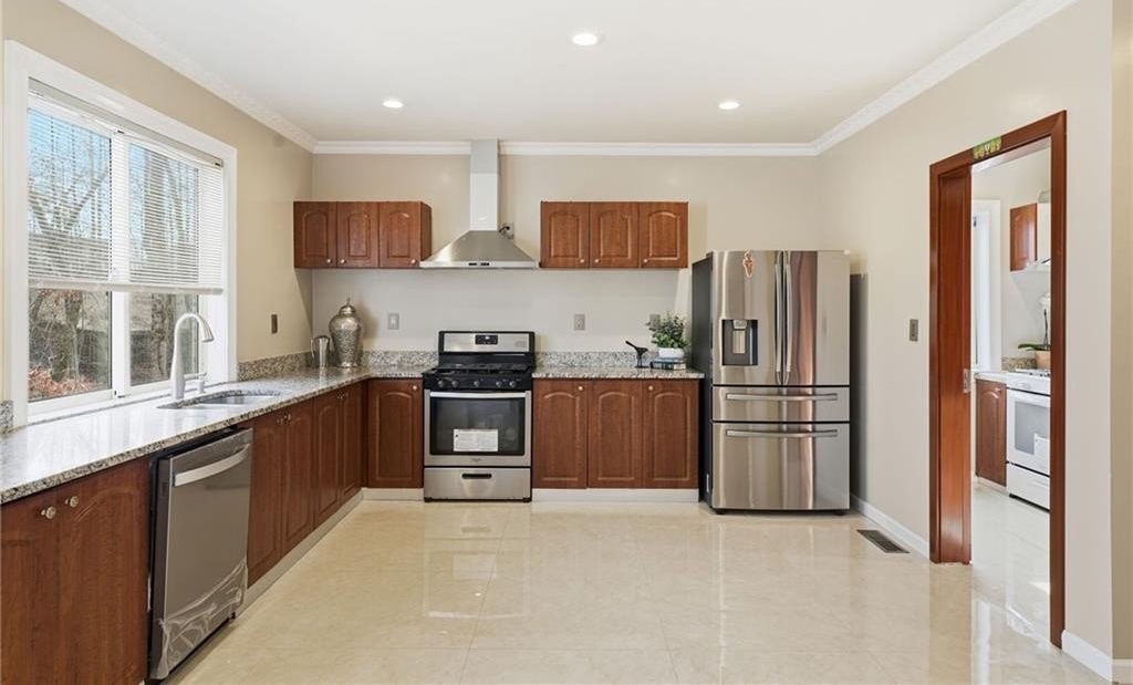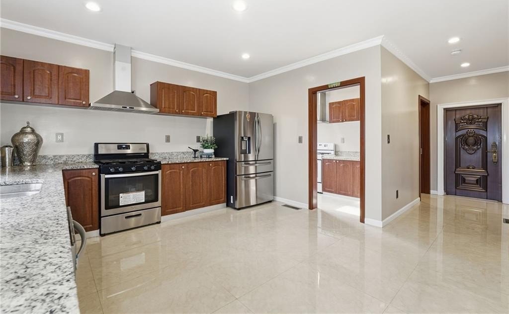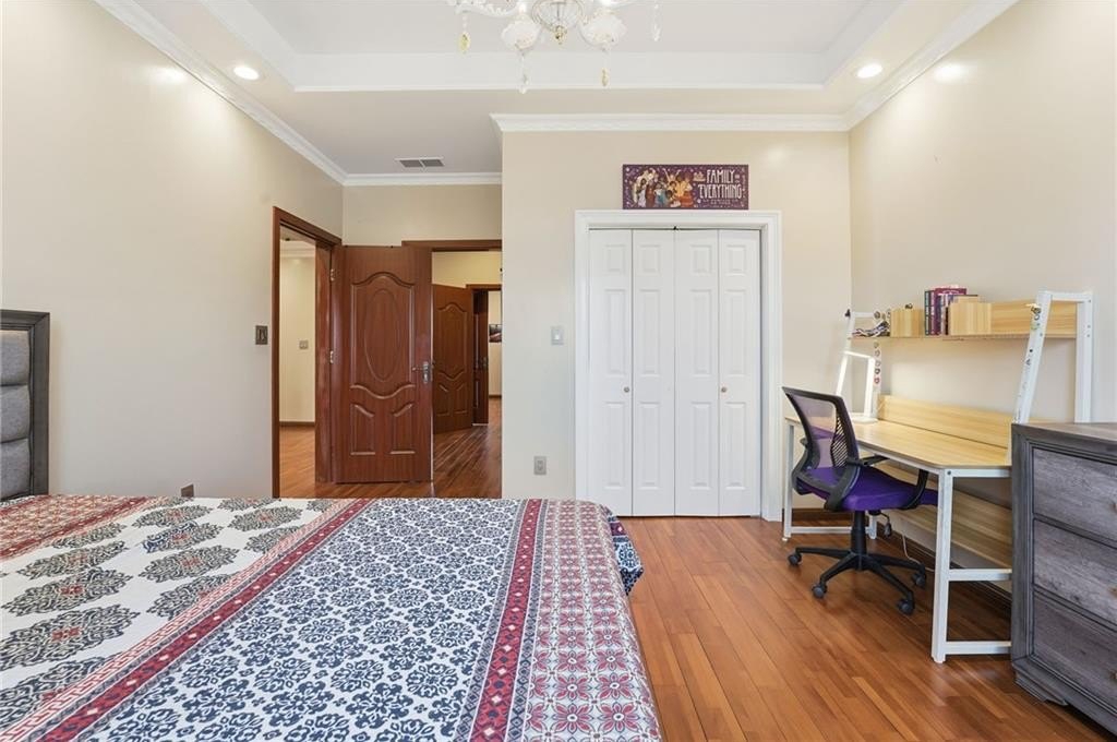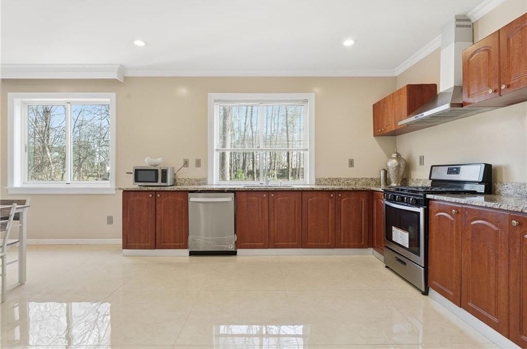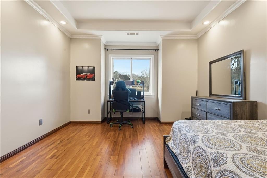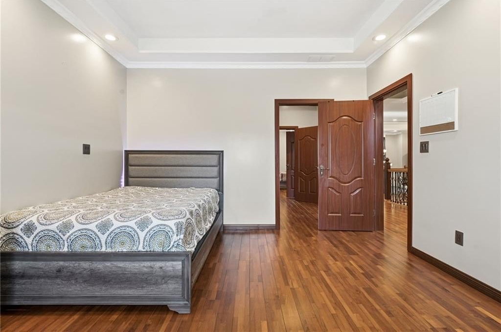 Welcome to a thoughtfully designed steel frame home that blends timeless elegance with everyday comfort in one of Suwanee's most desirable areas. Tucked away on a quiet cul-de-sac and offering a northwest-facing orientation, this residence makes a striking first impression with a two story foyer featuring beautiful decorative tile flooring. Natural light pours in throughout the home, enhancing the two story great room with its elegant coffered ceiling and creating an inviting sense of openness. Recessed lighting throughout creates a warm yet refined atmosphere, while tray ceilings and chandelier lighting in the bedrooms add an extra layer of sophistication. The main level includes a bedroom ideal for guests or multigenerational living, along with a formal living room well suited for entertaining or quiet gatherings. A second kitchen provides exceptional flexibility for hosting, extended living arrangements, or culinary creativity. Tile and hardwood flooring extend throughout the home, offering both timeless style and an allergen-friendly environment. Upstairs, the oversized primary suite serves as a true retreat, featuring decorative tiled floors in the bathroom and a large walk-in closet designed for comfort and organization. The basement adds valuable additional space ready to accommodate recreation, work, or relaxation, allowing the home to adapt easily to a variety of lifestyles. Conveniently located near Suwanee Town Center, nearby parks, greenway trails, and a vibrant selection of dining and shopping destinations, this home offers easy access to outdoor recreation and year-round community events. With its architectural detail, flexible living spaces, and prime setting, this home delivers a refined yet welcoming place to enjoy everything the Suwanee area has to offer.