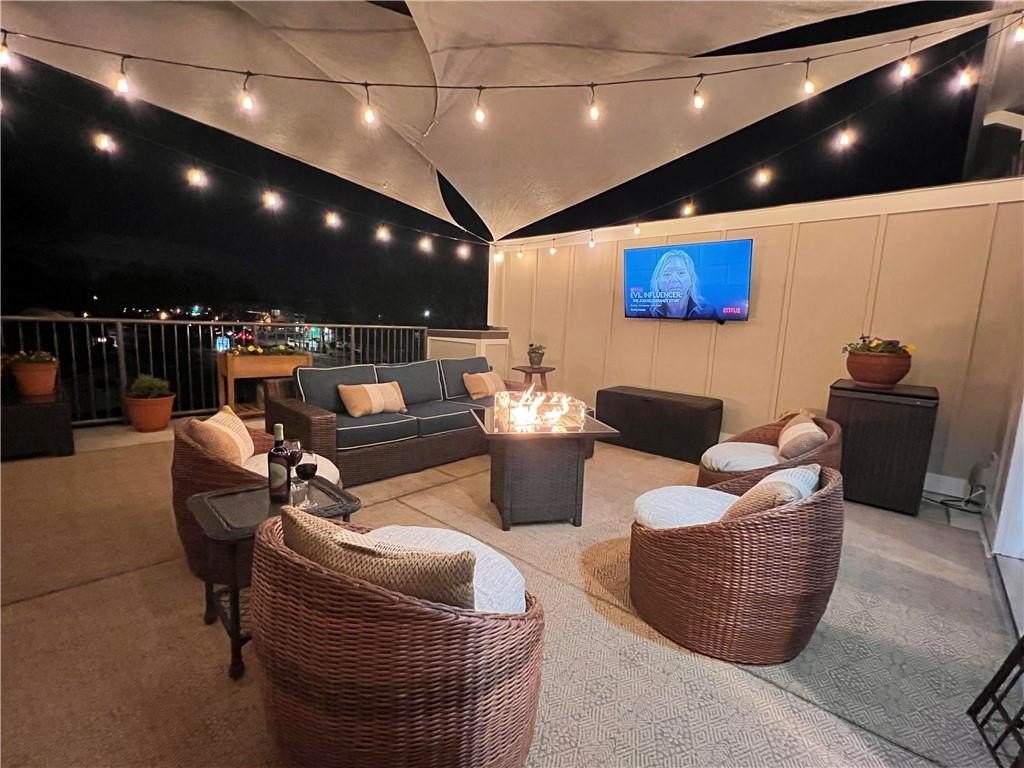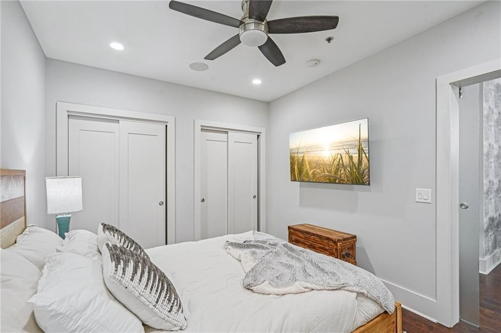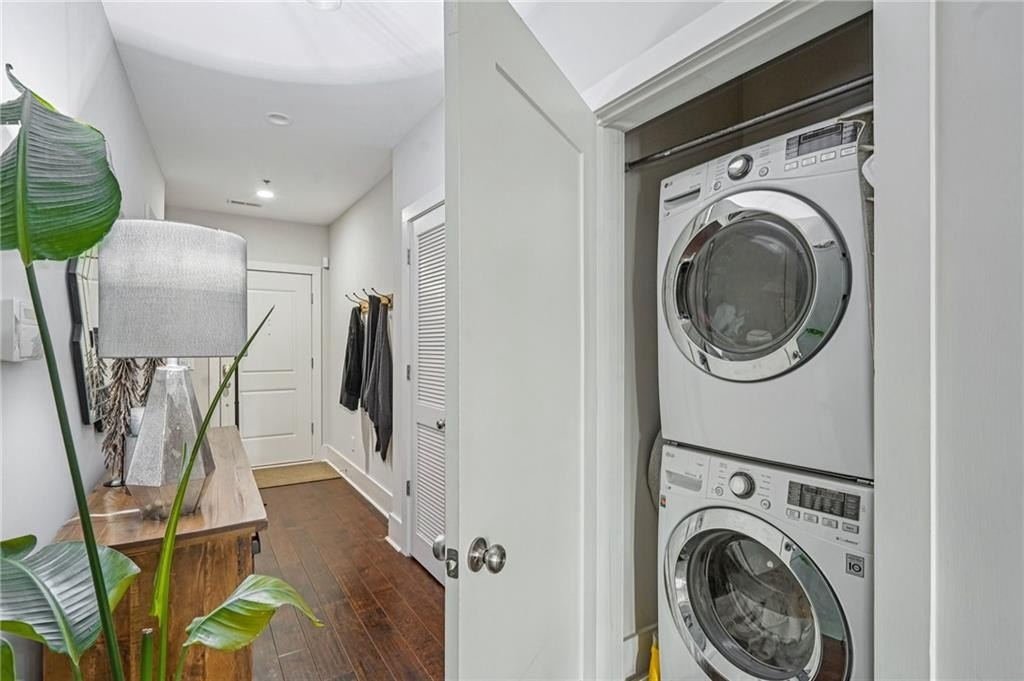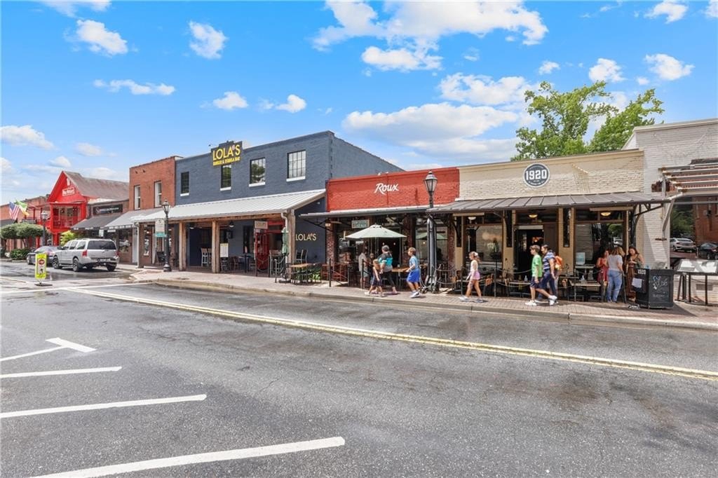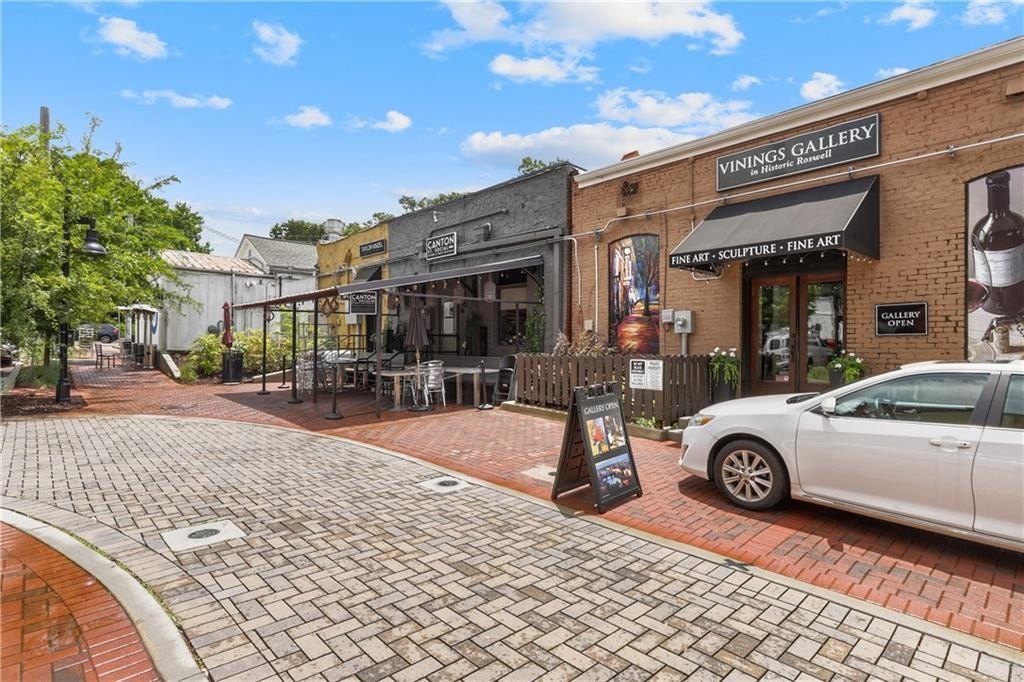 Newly painted inside and out, this exceptional end-unit, corner 2BR/2BA condominium offers refined living along Canton Street in Historic Downtown Roswell. Thoughtfully designed and filled with natural light, the residence is highlighted by a private rooftop terrace overlooking Canton Street-an ideal setting for both quiet moments and stylish entertaining. The interior features hardwood floors and a gracious entry with a conveniently located laundry closet, flowing into an open-concept living area with balcony access through double French doors. The designer kitchen is anchored by a spacious island with seating and is appointed with granite countertops, tile backsplash, stainless steel Viking appliance package, and curated lighting and wallpaper accents in the dining area. The main level includes a well-appointed bedroom with a full en-suite bath, offering flexibility for guests or a home office. Upstairs, a versatile loft provides additional living space, while the expansive primary suite showcases hardwood floors, generous closets, and a spa-inspired bath with dual vanities and an oversized frameless glass shower. Double doors open to the expansive rooftop terrace, creating a seamless indoor-outdoor living experience with striking views. Ideally positioned near Canton Street's renowned dining, boutique shopping, community events, and outdoor recreation, with convenient access to GA-400 and surrounding destinations, this residence delivers a rare blend of sophistication, privacy, and prime location.