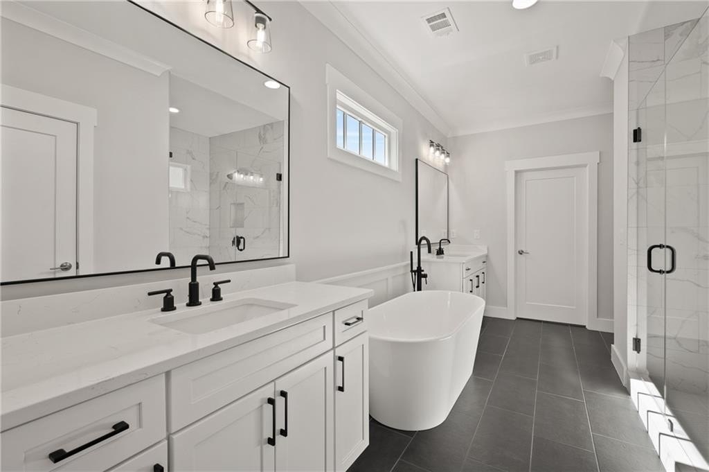 NEW CONSTRUCTION! The Bronson Plan by JW Collection founded by John Wieland! Bring your golf cart for this 4 car garage. This new plan is a stunning detached home with exquisite John Wieland features. This home has wonderful living space for all your entertaining needs. Large and open with lots of windows! The kitchen has beautiful cabinets that go all the way to the top of the 10' ceilings. And EVERY cabinet in this home is soft close! The island is spacious and comes equipped with a double trash pullout, sink, and dishwasher. Of course, there are lots of beautiful quartz countertops and cabinets to choose from. You will meet with our JWC designers to personalize the interior of your home. Enjoy the wood shelving in your walk-in pantry. Hardwoods are on the entire main level, loft, owner's bedroom, bonus room and all stairs. Gleaming commercial stainless-steel appliances and tile to the ceiling behind your designer kitchen wood hood. What home would be cozy without a fireplace with gas logs, built-in bookcases in the great room. Well, you get that too! The owner's suite is equipped with double walk-in closets, including closet systems, that connect to the owner's bath. You will find a spa experience with a free-standing soaking tub, large shower with bench, shampoo niche, handheld shower attachment, frameless door, and tile all the way to the ceiling. In fact, it does not matter which bath you see, they all have tile to the ceiling, undermount sinks, and quartz countertops. Enter from your oversized garage to a mud room with bench, cubbies, and hooks. The terrace level has a private bonus room with a separate bedroom, full bath and walk in shower. Also, it has a side patio with a fenced side yard. You also have two large, covered porches on the front of the home AND two on the back of the home! The main level has a dedicated study, dining room and large open entertaining space! The upper level has the owner's suite, two other bedrooms with their own private baths along with a loft space for the perfect office or reading nook. The home is under construction and should be ready for move in early 2026. Come by the neighborhood anytime for a tour and choose this home or another lot to build. You will meet with the JWC design team to personalize the interior design for the finishes. The amenities are the BEST Woodstock has to offer including a clubhouse with fitness center, 2 dog parks, swimming pool with children's splash pad and cabana, community garden, fire pit, pavilion, playground and the trail that runs through and connects to the Noonday Creek Trail. This is really a location you need to see!!! These homes are selling fast and limited availability. THE HOME IS OF A SIMILAR HOME THAT WAS BUILT IN SOUTH ON MAIN. THE HOME IS CURRENTLY UNDER CONSTRUCTION.
