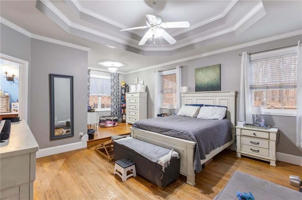 This beautifully maintained four-sided brick home is packed with upgrades and thoughtfully designed for comfort, functionality, and entertaining. Two new HVAC systems were installed in 2025, offering peace of mind and efficiency. The kitchen was fully remodeled in 2021 and features marble countertops (resealed in 2024), updated stainless steel appliances including a double oven, gas cooktop, refrigerator, and dishwasher, plus an under-counter ice maker and beverage fridge-perfect for hosting. The main level boasts solid hardwood floors throughout, with tile in the kitchen, sunroom, laundry room, and three full baths. A spacious family room with vaulted ceilings flows seamlessly into the kitchen, creating an inviting open-concept layout. The primary bedroom and dining room feature elegant tray ceilings, adding architectural interest and charm. Enjoy outdoor living with three porches spanning the back of the home, including one covered porch with a propane line already run for grilling. The backyard is enclosed with a decorative black aluminum fence installed in 2020. The approximately 1,800 sq ft finished basement offers exceptional versatility with a large family/TV room, two workout rooms, a daylight bedroom, full bath, and a full daylight kitchen with new flooring installed in 2024-ideal for an in-law suite or extended living space. An additional garage/storage area is also located in the basement. Keyless entry doors complete this well-appointed home, blending convenience with modern living.