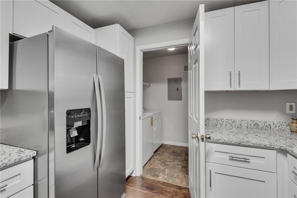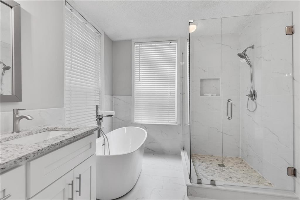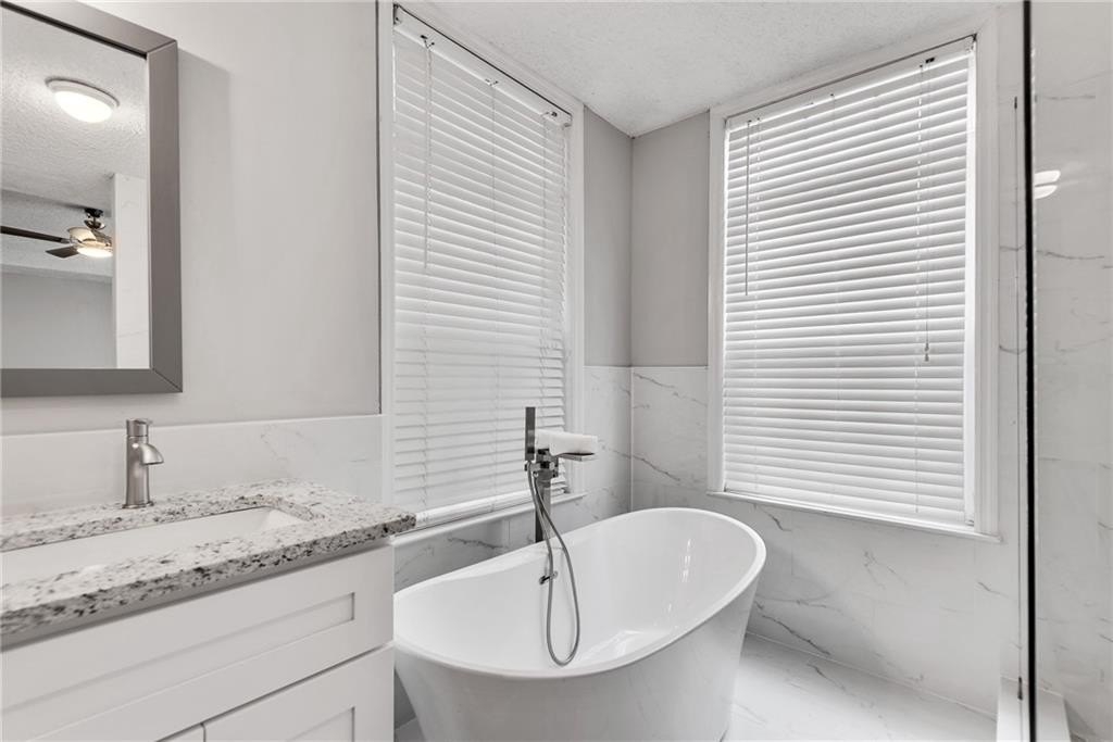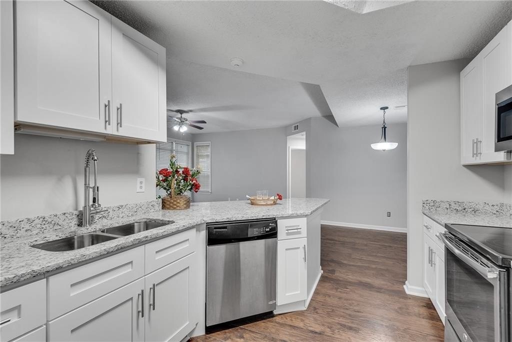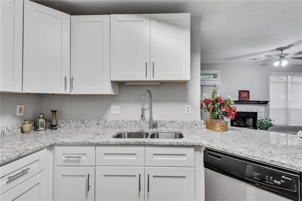 Beautifully renovated, first floor end unit condo in wonderful Old Fourth Ward gated community! You simply can't beat the price on this one! Two bedroom, two bath split bedroom plan with NEW EVERYTHING. Gorgeous new flooring, paint and fixtures, a brand new kitchen with high end white cabinetry and an abundance of granite counters, stainless appliances, a dedicated dining area and a cozy fireplace make the main living spaces a dream to come home to. The master suite offers a bay window, patio access and a truly amazing ensuite spa bath with its free standing tub, oversized tiled shower, granite topped double vanity and a large walk-in closet. On the other side of the living space is a second, roomy bedroom with a walk in closet and a second, high end bath with granite and a tiled tub / shower combo. The covered patio can also be accessed from the family room, and provides plenty of space for morning coffee, an evening glass of wine or al fresco dining. The low HOA fees makes this home a fantastic value, and include water / sewer, trash, pest control, security gate, pool, fitness center and a clubhouse that can be rented by residents. Google Fiber ready and includes a storage room just outside the front door. The area is unmatched! Close to highways, Ponce City Market, parks, the Beltline, shopping, dining and The Fox, and several ongoing projects in this up and coming area ensure that your value will go up and up! Don't miss the opportunity to own in this rapidly developing area at an incredible price!