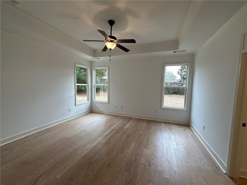 Welcome home to this move-in ready residence located in the sought-after Cresswind at Lake Lanier, an award-winning 55+ active adult community. Recently refreshed with neutral interior paint, this home features a thoughtfully designed three-bedroom, three-bath split-bedroom floor plan, ideal for both everyday living and entertaining. The kitchen overlooks the great room and offers white cabinetry, stone countertops, stainless steel appliances, a gas range, pantry, and a breakfast area. The inviting great room, anchored by a gas fireplace, flows seamlessly into the open-concept formal dining area-perfect for gatherings. Just off the great room is a versatile space ideal for a home office or cozy den. The main-level primary suite is a private retreat featuring a tray ceiling, spacious walk-in closet, and a well-appointed bath with a double vanity, large shower, and private water closet. A guest bedroom and full bath with a tub/shower combination are also conveniently located on the main level. Upstairs, a finished loft with a full bath offers exceptional flexibility and can serve as an additional bedroom, media room, hobby space, or den. Relax outdoors on the rear patio and enjoy all that Cresswind at Lake Lanier has to offer. The impressive three-story clubhouse features a heated indoor pool, outdoor pool and spa, fitness center, arts and crafts room, billiards room, and library. Additional amenities include tennis and pickleball courts, bocce ball, horseshoes, an outdoor movie lawn, kayaking, boating and fishing from the marina, a dog park, community garden, and over 100 resident clubs. This home truly combines comfort, style, and an unparalleled active adult lifestyle.