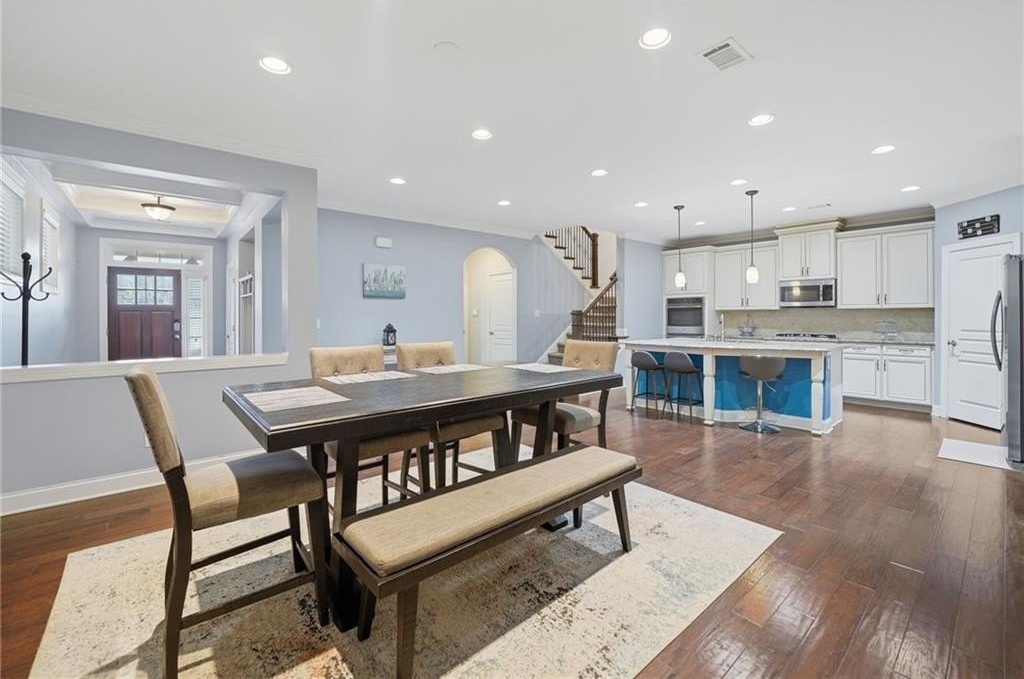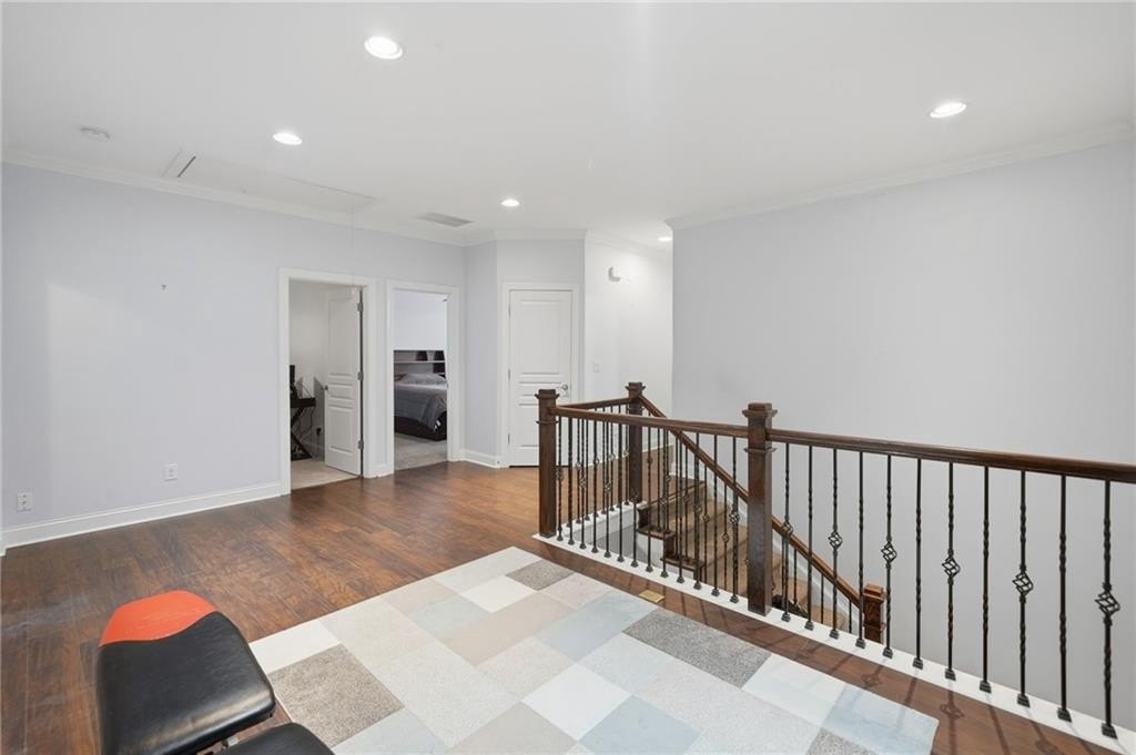 Beautifully maintained home offering a versatile 4-bedroom layout with one bedroom and a full bath on the main level, perfect for guests or multigenerational living. The home features a great open floor plan filled with abundant natural light, hardwood floors, and a kitchen equipped with stainless steel appliances, double oven,granite counter tops & large island ideal for everyday living and entertaining. Upstairs, the 3 bedrooms with 2 bathrooms, a small loft and the spacious bonus room provide the ideal space for everyone's needs. The master with double vanities, a walk in closet & private wooded views create the perfect space for relaxation. Laundry room located upstairs as well for convenience. Located in a secure gated community and zoned for top-rated Forsyth County schools, this east-facing home offers both comfort and peace of mind. HOA covers landscaping! Enjoy ,just steps away, the paved walking path to Fowler Park and the Big Creek Greenway perfect for everyday walks, biking, sports, and outdoor fun. The Halcyon shopping & dinning is just 2 lights away. A great opportunity to create lasting memories in a sought-after neighborhood!