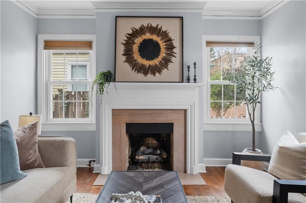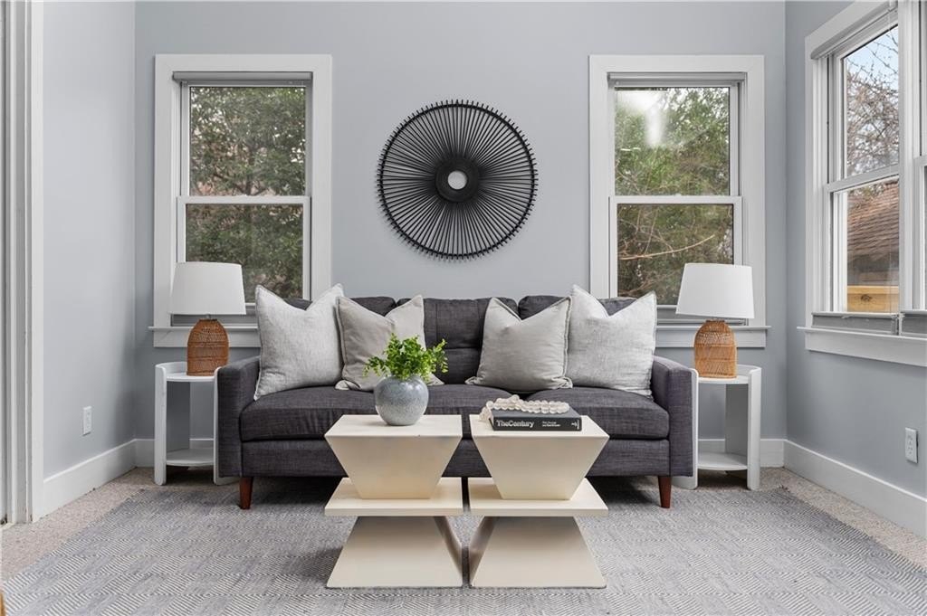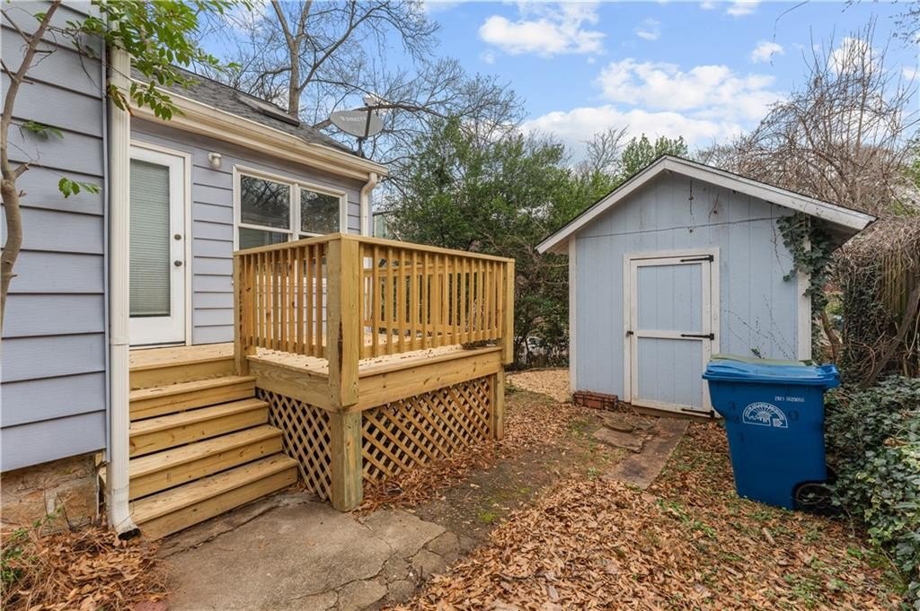 Welcome to this enchanting 1940s home in the heart of Candler Park, where timeless character meets thoughtful updates. Arched entryways, original glass doorknobs, and glossy hardwood floors showcase the home's classic appeal. The light-filled eat-in kitchen features butcher-block countertops and opens seamlessly into a sunroom, offering flexible seating and additional living space. The refreshed primary bath features a new walk-in shower with a seamless glass door, built-in shelving, and a double-sink vanity. The primary bedroom is privately tucked at the rear of the home and features abundant windows and a vaulted ceiling. A second bedroom is located at the front of the home, and the hall bath remains original, showcasing a cast-iron tub and classic black-and-white tile. The spacious second-floor bedroom/loft is both inviting and versatile with skylights, walk-in storage closets, and a dedicated washer and dryer space. Enjoy outside on a brand-new rear porch, perfect for relaxing or grilling, while overlooking the backyard. A sparkling clean storage shed with power adds even more functionality to this truly special home. The Candler Park neighborhood is simply a gem. Neighbors love the strong sense of community, their highly regarded local schools, award-winning local eateries, and historic charm. This home is conveniently located 6 miles from downtown Atlanta, 2.5 miles from Emory University, and 3 miles from Decatur Square and 1 mile from Little Five Points. Candler Park boasts a 55-acre green space that makes intown living both convenient and nourishing!