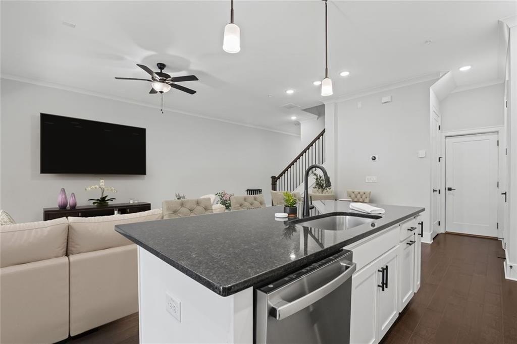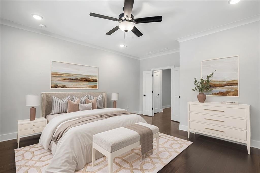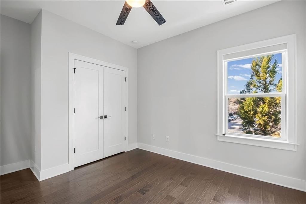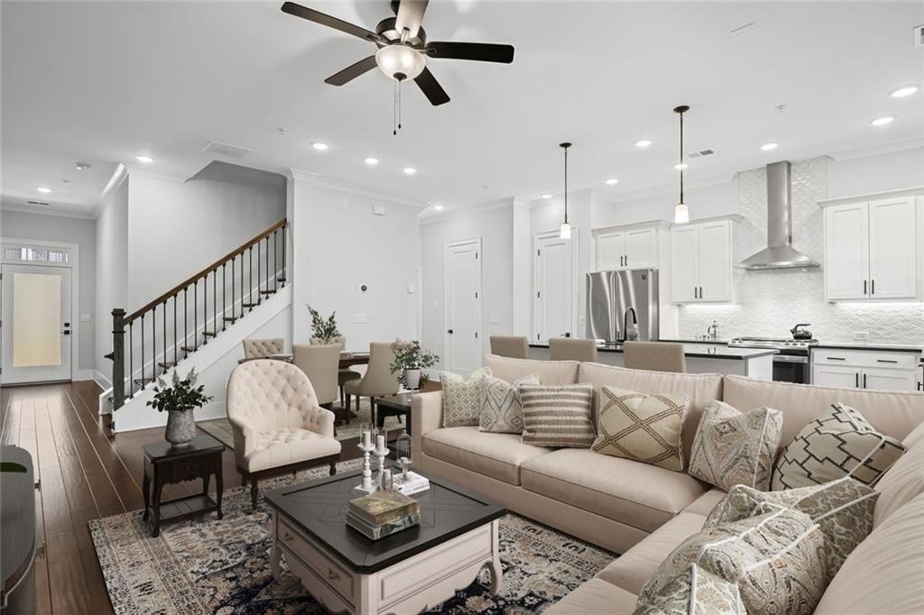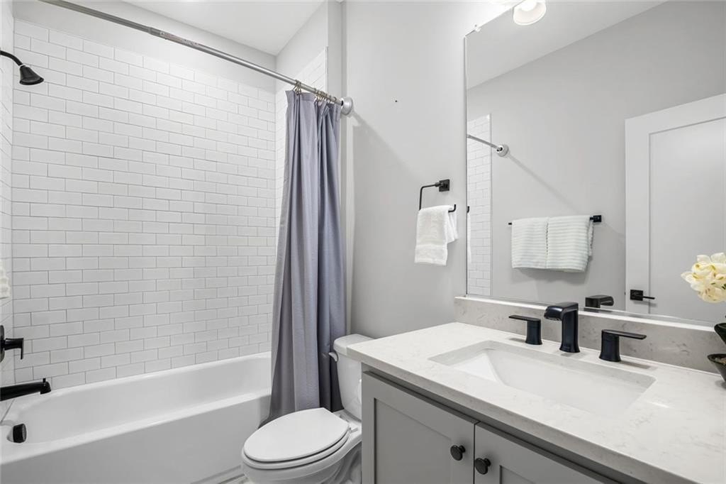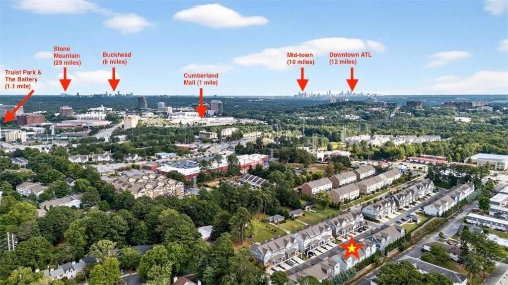 Live just moments from the action in this beautifully enhanced 3-bedroom, two-level townhome located less than a mile from Truist Park and The Battery. Built by David Weekley in 2022 and nestled in the highly sought-after Woodbury community, this home truly stands apart with **over $30,000 in thoughtfully selected upgrades**, offering elevated design, everyday comfort, and long-term value. Tall ceilings and wide-plank hardwood flooring throughout both levels-including all bedrooms create a bright, airy feel from the moment you enter. The open-concept main level is ideal for both everyday living and entertaining. The gourmet kitchen is a standout, featuring stainless steel appliances, an oversized island, designer cabinetry with custom hardware, under-cabinet lighting, and stylish tile backsplash details-all seamlessly flowing to a private patio perfect for morning coffee or evening unwinding. Upstairs, the expansive primary suite is a true retreat, filled with natural light from three large windows. A rare and highly coveted feature within the community, the spa-inspired primary bath offers both a frameless glass shower and a separate soaking tub, complemented by upgraded finishes and custom tilework that elevate the space to true luxury. A thoughtfully designed custom closet system completes the suite, maximizing organization and functionality. Two additional bedrooms provide flexible space for guests, a home office, or everyday living. Additional highlights include an attached garage for parking and storage, a park just 0.6 miles away, and effortless access to I-75, I-285, the Silver Comet Trail, and all that Smyrna and Marietta have to offer. With dining, shopping, concerts, and Braves games just minutes from your front door, this move-in-ready townhome delivers a turn-key lifestyle that's increasingly hard to find.