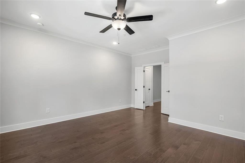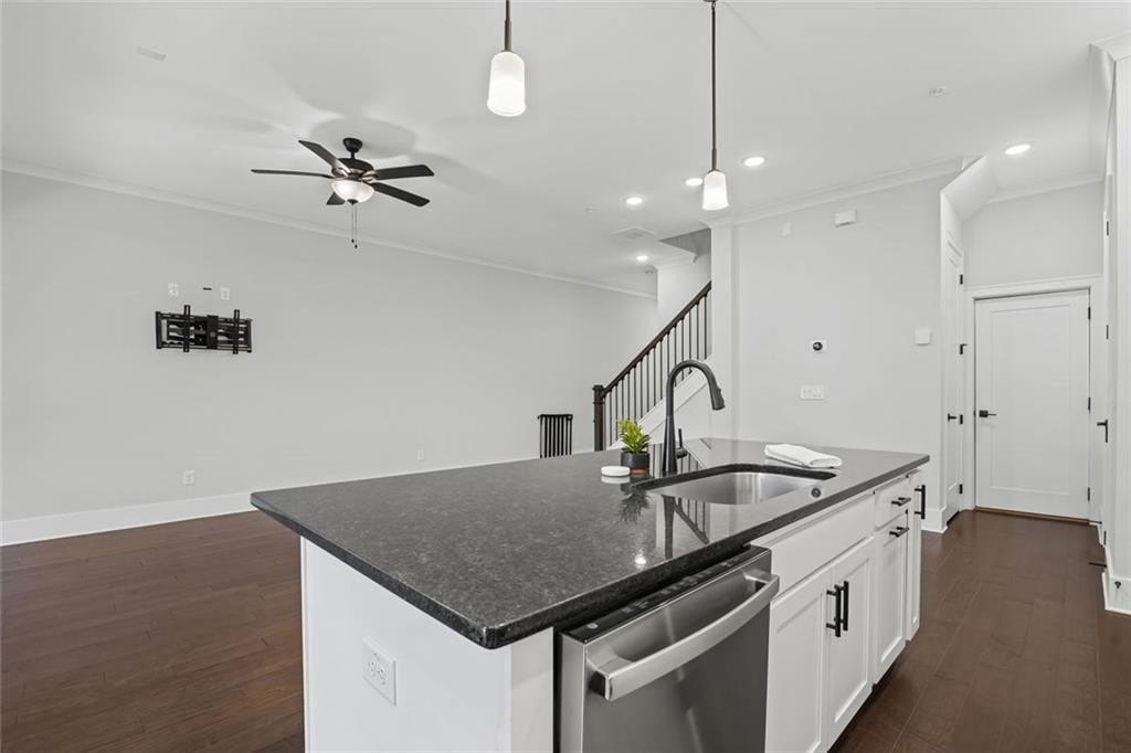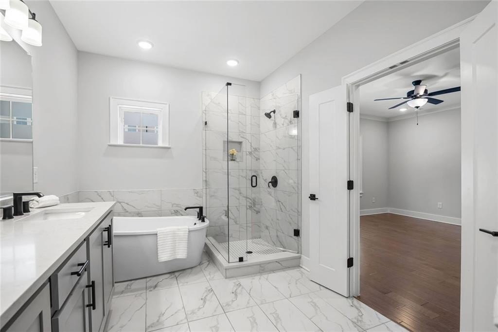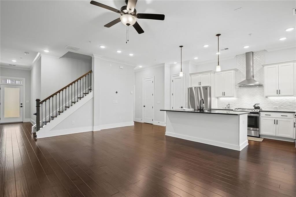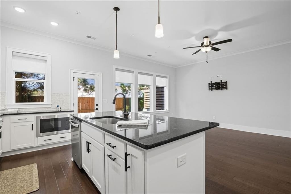 Live just moments from the action in this beautifully enhanced 3-bedroom, two-level townhome located less than a mile from Truist Park and The Battery. Built by David Weekley in 2022 and nestled in the highly sought-after Woodbury community, this home truly stands apart with **over $30,000 in thoughtfully selected upgrades**, offering elevated design, everyday comfort, and long-term value. Tall ceilings and wide-plank hardwood flooring throughout both levels-including all bedrooms create a bright, airy feel from the moment you enter. The open-concept main level is ideal for both everyday living and entertaining. The gourmet kitchen is a standout, featuring stainless steel appliances, an oversized island, designer cabinetry with custom hardware, under-cabinet lighting, and stylish tile backsplash details-all seamlessly flowing to a private patio perfect for morning coffee or evening unwinding. Upstairs, the expansive primary suite is a true retreat, filled with natural light from three large windows. A rare and highly coveted feature within the community, the spa-inspired primary bath offers both a frameless glass shower and a separate soaking tub, complemented by upgraded finishes and custom tilework that elevate the space to true luxury. A thoughtfully designed custom closet system completes the suite, maximizing organization and functionality. Two additional bedrooms provide flexible space for guests, a home office, or everyday living. Additional highlights include an attached garage for parking and storage, a park just 0.6 miles away, and effortless access to I-75, I-285, the Silver Comet Trail, and all that Smyrna and Marietta have to offer. With dining, shopping, concerts, and Braves games just minutes from your front door, this move-in-ready townhome delivers a turn-key lifestyle that's increasingly hard to find.