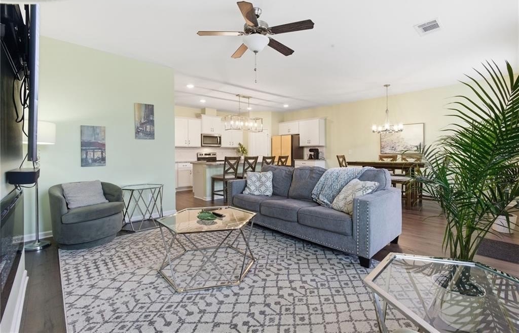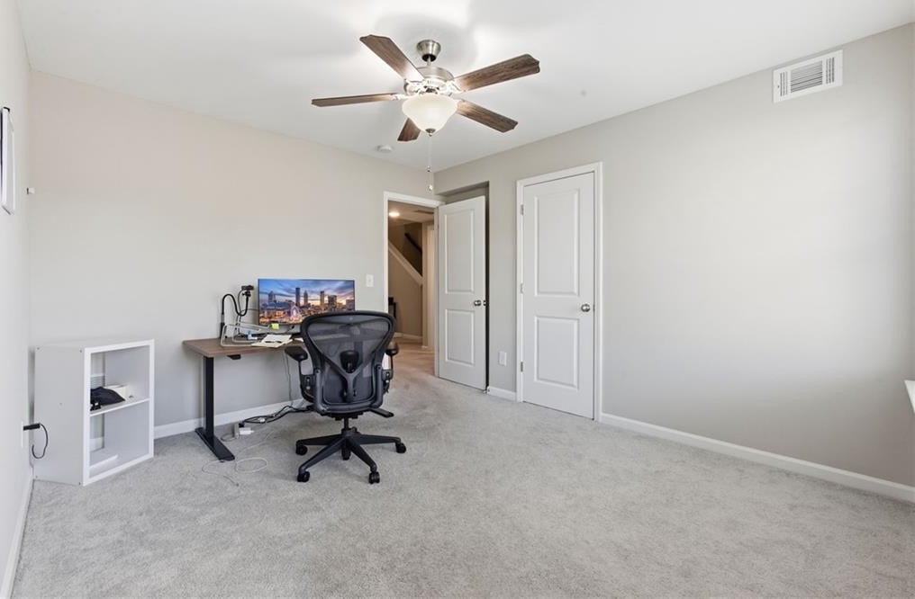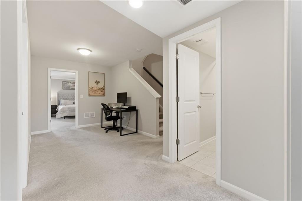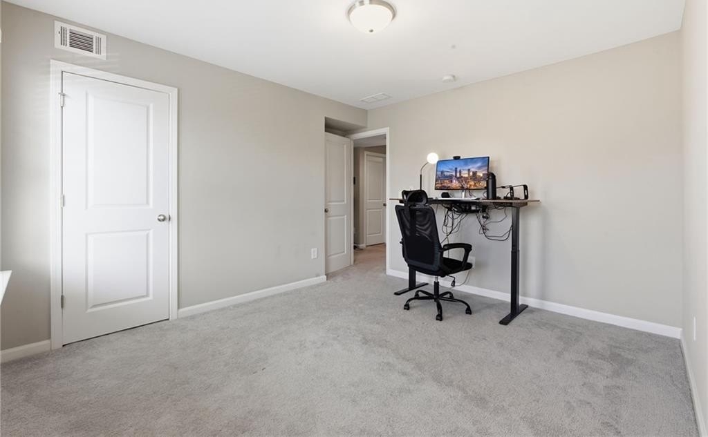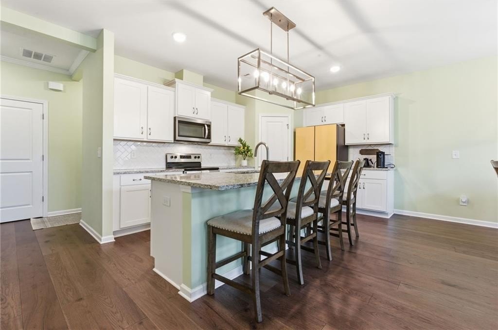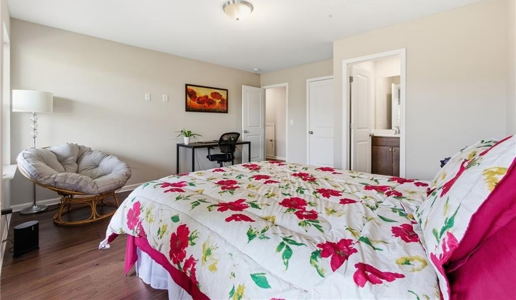 Welcome to 2106 Garden Place, a four-year-young, one-owner townhome that casually flexes as the largest floor plan in this gated community. You'll enjoy three finished levels plus a rare, sun-filled unfinished terrace-level basement with walk-out access and a full bathroom stub-aka future gym, movie lounge, guest suite, or all of the above. Pull into the two-car garage and step into an open main level made for living and hosting. The kitchen brings the goods with granite countertops, stainless steel appliances, a large island, and a walk-in pantry, then opens to a private deck overlooking peaceful wooded views-birdsong included, no subscription required. Upstairs, the primary suite delivers space to unwind, plus a walk-in closet that won't ask you to downsize. Two additional bedrooms, a full bath, laundry room, and an extra-wide hallway perfect for a home office, Peloton corner, or shelves of books you aspire to read, round out the level. The top floor is a crowd favorite: a bonus room or fourth bedroom with a full bath and private covered balcony-one of the few homes in the neighborhood with this setup. Say hello-staycation destination! All systems are like-new and upgraded with smart-home features, including an Ecobee thermostat, EV charger, smart garage and door openers, and ethernet wiring throughout-yes, your WiFi dreams can finally come true.