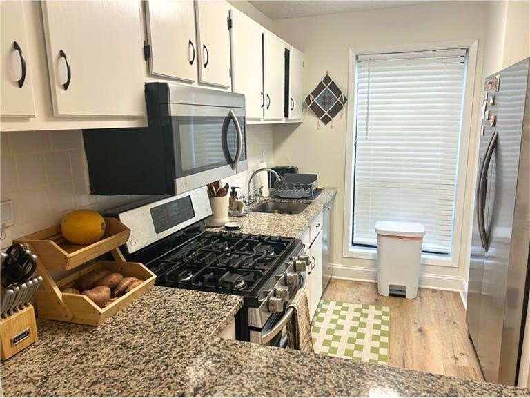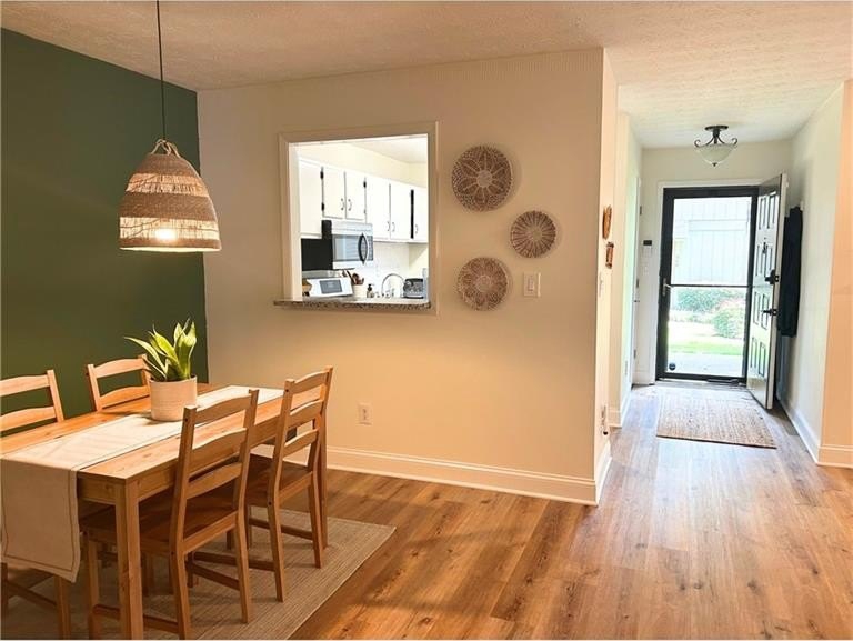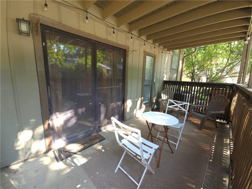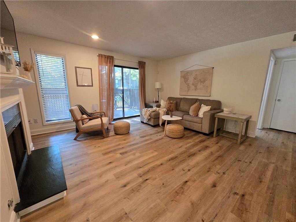 Welcome to this cozy, 1-bedroom, 1-bath condo in the highly desirable Vinings Run community of Smyrna! Nestled at 403 Cumberland Court SE, this 905 sq ft gem has thoughtful updates featuring a freshly painted open-concept layout with brand-new luxury vinyl flooring throughout, crisp white cabinetry in the galley kitchen, stainless steel appliances, and a stylish breakfast bar perfect for casual dining or entertaining. The spacious living area boasts built-in bookcases, a lovely fireplace for those cool evenings, and seamless flow into the separate dining space-all overlooking the lush, landscaped courtyard just outside your door. Retreat to the expansive primary suite, complete with two closets and an updated bath with a tub/shower combo and contemporary fixtures. Enjoy outdoor bliss on your covered deck/patio, ideal for morning coffee or evening relaxation amid the wooded, private surroundings. Quaint condo community tucked away in a vibrant area with resort-style amenities including swimming pools, tennis courts, and dog parks, plus unbeatable convenience near I-75 and I-285, top dining and shopping, Truist Park, The Battery, Silver Comet Trail, and more. Don't miss this prime opportunity in a quiet community-schedule your showing today!