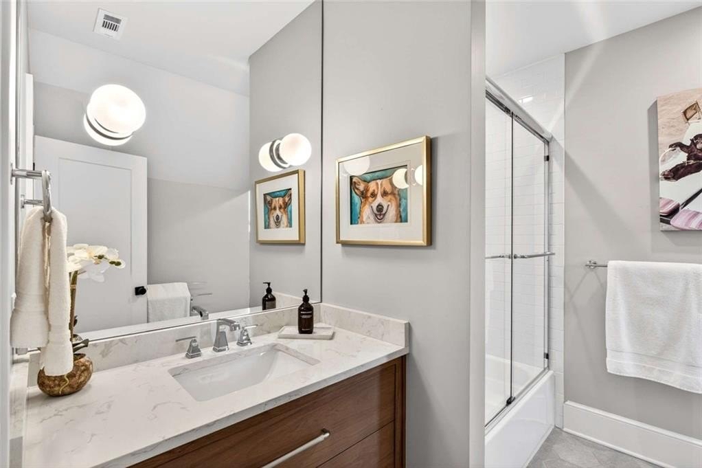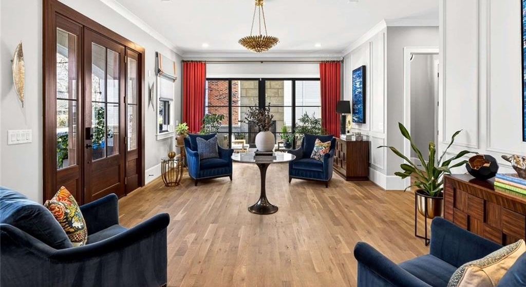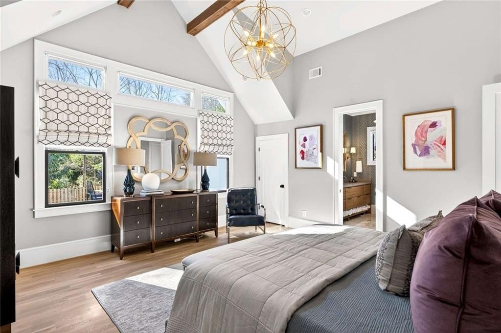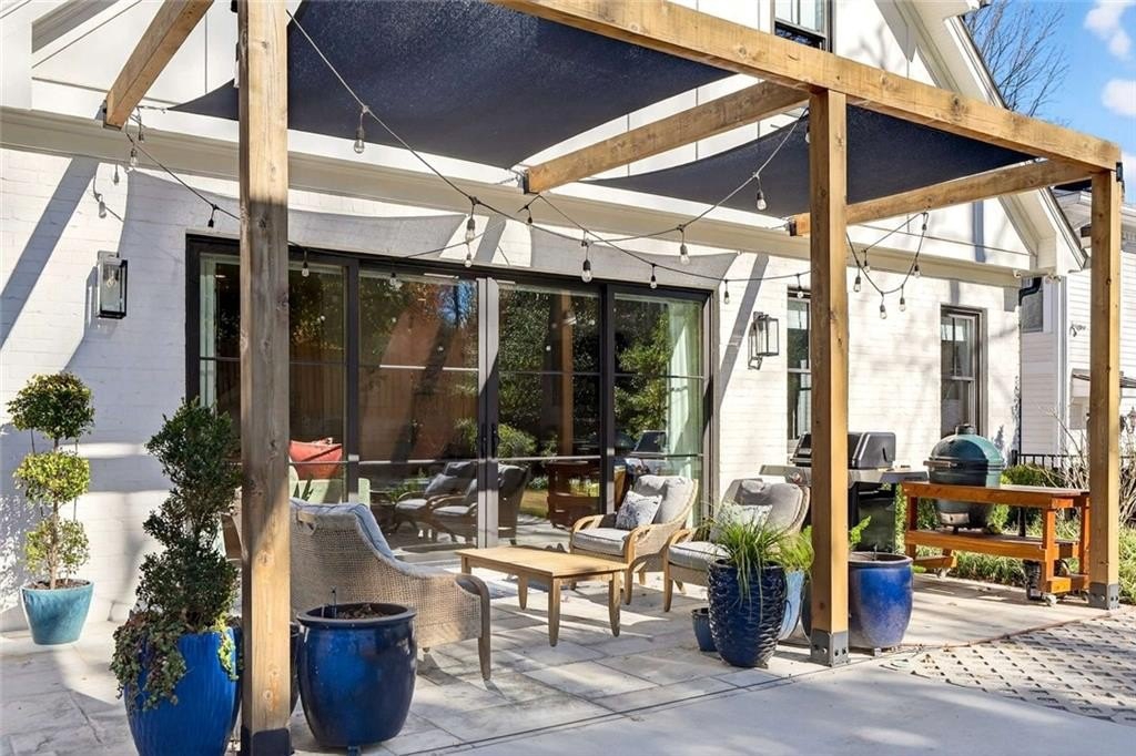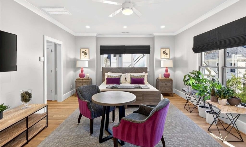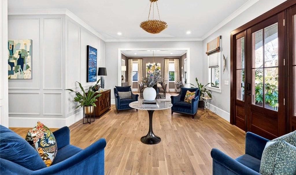 Welcome to one of the most stunning homes in Morningside - Atlanta's favorite intown walkable neighborhood. This exceptional residence is located on a desirable street, and offers incredible curb appeal, completely fenced-in, with gated access to driveway and guesthouse. Walking up to the covered front porch of this architectural gem, you will notice the beautiful landscaping and cozy side porch with fireplace. Upon entering the front door, flanked by gas lanterns, you will instantly notice the eye for detail. A sophisticated open formal living area provides the perfect setting for gatherings, flowing into the banquet-sized dining area for effortless entertaining. The chef's kitchen is a true showstopper, featuring a Thermador 48" six burner gas range with griddle and double ovens, build-in microwave drawer, Sub-zero Refrigerator, Miele dishwasher, custom cabinetry and hardware, oversized waterfall island, and a custom walk-in pantry hidden behind pocket doors, completes this stunning culinary haven. Bathed in natural light, the inviting family room, open to the chef's kitchen and breakfast room, features an exquisite beverage station/bar complete with custom shelves and wine refrigerator. Other details you will notice are gorgeous wallpaper, custom draperies, and sliding doors open to an intimate patio for al-fresco dining and cozy backyard, ideal for gatherings around the firepit and entertaining. The well appointed mudroom off of the kitchen, leads to a separate 2-car garage with epoxy flooring, custom built-ins, and EV charger. Above the garage you will find a guesthouse with a private entrance. Once inside the guest quarters, you will notice the same detail throughout as the main residence, offering a bedroom/sitting room, breakfast bar with custom shelving, full bathroom, and closet. On the main floor of the residence, you will find a showpiece powder room featuring beautiful wallpaper, custom shelves, and an elegant vanity, as well as a well- appointed guestroom with private bathroom. Upstairs, discover the primary suite and three generously proportioned secondary bedrooms, each featuring custom ensuite bathrooms and a laundry room with sink and custom cabinetry, concealed behind a pocket door. The luxurious primary suite is a private sanctuary. Enjoy dual vanities with custom cabinetry, designer wallpaper, shower with multiple showerheads, freestanding soaking tub, Toto bidet toilet, and designer mirrors. The spacious lower level offers a large bonus room with wet bar, ideal for a home office, playroom, or media space. Additional features on this level include a bedroom and full bathroom, and ample storage space. Imagine entertaining in this home, preparing chef's meals, spending time in the inviting backyard, sitting around the firepit, or grilling on the back patio, all while keeping pets secured on the property behind the electric gate. This stunning residence blends modern elegance with timeless finishes, featuring thoughtfully curated spaces across every level and attention to detail. The home also includes a back-up generator, whole-house water filtration, reverse Osmosis drinking filtration system, drip irrigation system, and is hard wired for surveillance cameras. All custom window treatments convey. This a truly a rare opportunity to own a one-of-a-kind residence in one of Atlanta's most coveted, walkable neighborhoods.