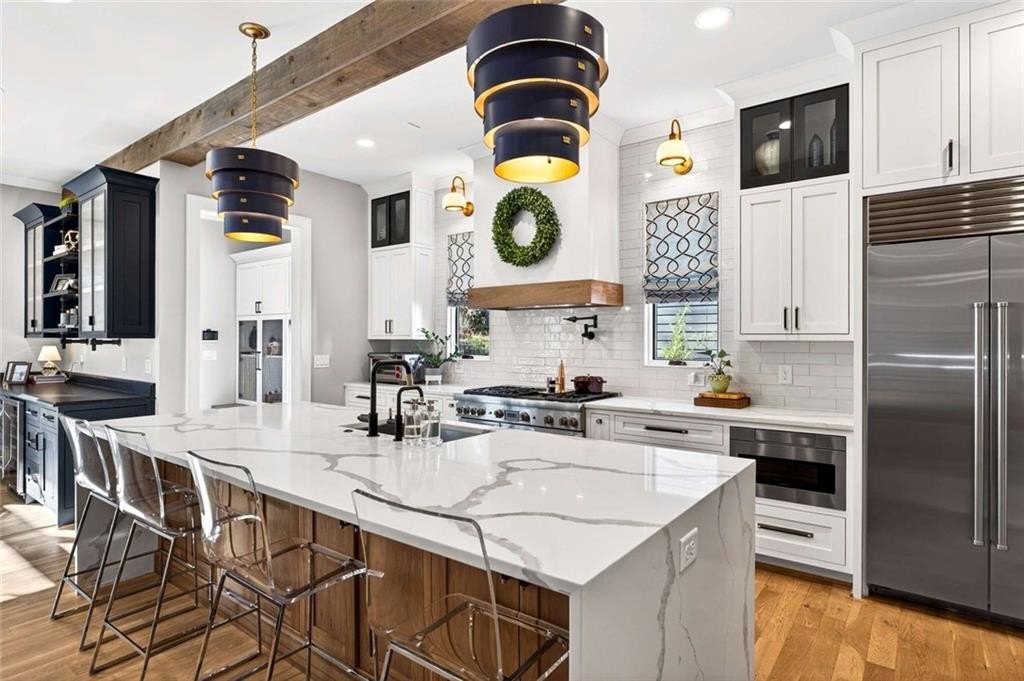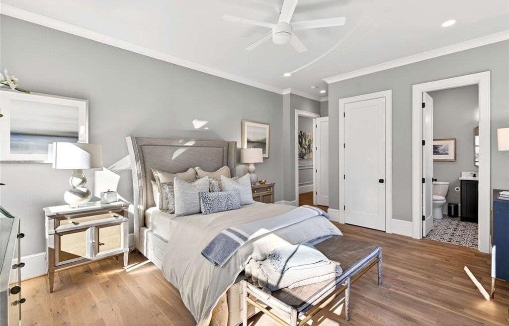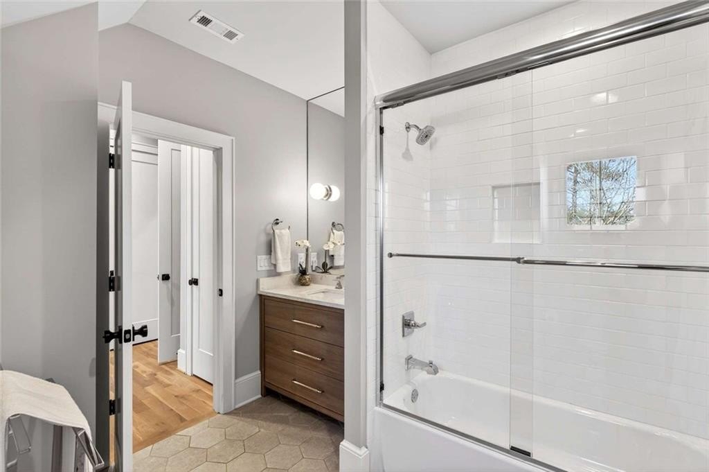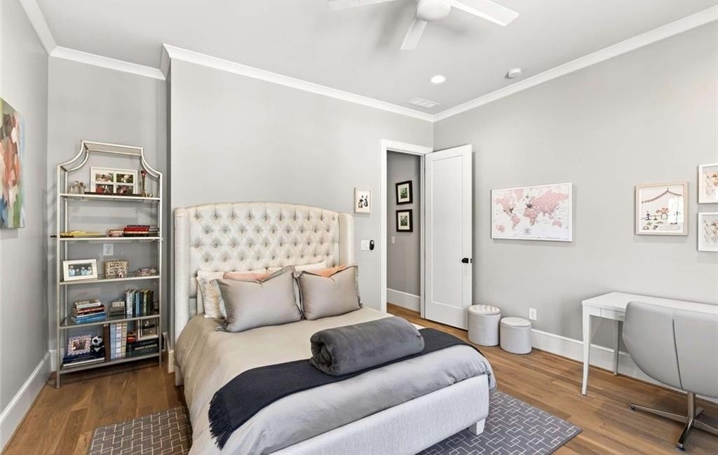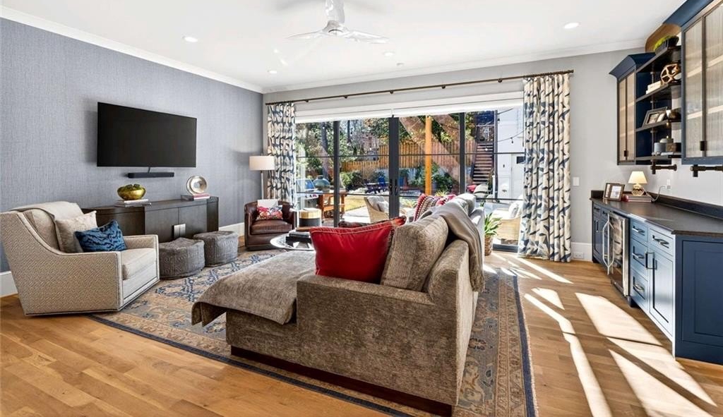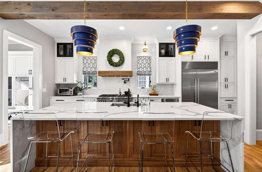 Welcome to one of the most stunning homes in Morningside - Atlanta's favorite intown walkable neighborhood. This exceptional residence is located on a desirable street, and offers incredible curb appeal, completely fenced-in, with gated access to driveway and guesthouse. Walking up to the covered front porch of this architectural gem, you will notice the beautiful landscaping and cozy side porch with fireplace. Upon entering the front door, flanked by gas lanterns, you will instantly notice the eye for detail. A sophisticated open formal living area provides the perfect setting for gatherings, flowing into the banquet-sized dining area for effortless entertaining. The chef's kitchen is a true showstopper, featuring a Thermador 48" six burner gas range with griddle and double ovens, build-in microwave drawer, Sub-zero Refrigerator, Miele dishwasher, custom cabinetry and hardware, oversized waterfall island, and a custom walk-in pantry hidden behind pocket doors, completes this stunning culinary haven. Bathed in natural light, the inviting family room, open to the chef's kitchen and breakfast room, features an exquisite beverage station/bar complete with custom shelves and wine refrigerator. Other details you will notice are gorgeous wallpaper, custom draperies, and sliding doors open to an intimate patio for al-fresco dining and cozy backyard, ideal for gatherings around the firepit and entertaining. The well appointed mudroom off of the kitchen, leads to a separate 2-car garage with epoxy flooring, custom built-ins, and EV charger. Above the garage you will find a guesthouse with a private entrance. Once inside the guest quarters, you will notice the same detail throughout as the main residence, offering a bedroom/sitting room, breakfast bar with custom shelving, full bathroom, and closet. On the main floor of the residence, you will find a showpiece powder room featuring beautiful wallpaper, custom shelves, and an elegant vanity, as well as a well- appointed guestroom with private bathroom. Upstairs, discover the primary suite and three generously proportioned secondary bedrooms, each featuring custom ensuite bathrooms and a laundry room with sink and custom cabinetry, concealed behind a pocket door. The luxurious primary suite is a private sanctuary. Enjoy dual vanities with custom cabinetry, designer wallpaper, shower with multiple showerheads, freestanding soaking tub, Toto bidet toilet, and designer mirrors. The spacious lower level offers a large bonus room with wet bar, ideal for a home office, playroom, or media space. Additional features on this level include a bedroom and full bathroom, and ample storage space. Imagine entertaining in this home, preparing chef's meals, spending time in the inviting backyard, sitting around the firepit, or grilling on the back patio, all while keeping pets secured on the property behind the electric gate. This stunning residence blends modern elegance with timeless finishes, featuring thoughtfully curated spaces across every level and attention to detail. The home also includes a back-up generator, whole-house water filtration, reverse Osmosis drinking filtration system, drip irrigation system, and is hard wired for surveillance cameras. All custom window treatments convey. This a truly a rare opportunity to own a one-of-a-kind residence in one of Atlanta's most coveted, walkable neighborhoods.