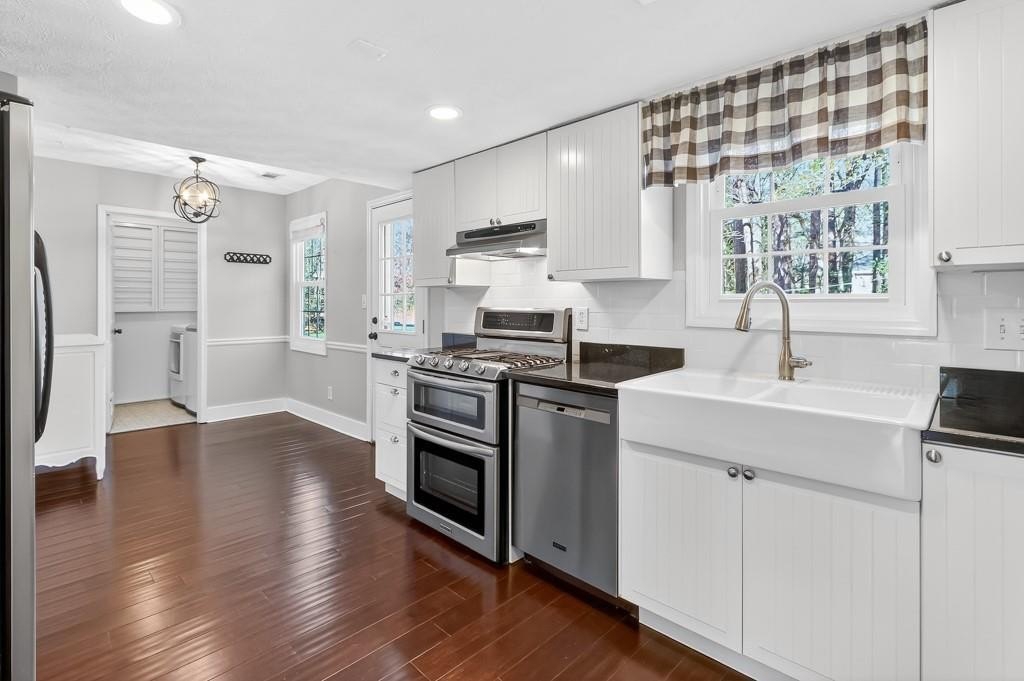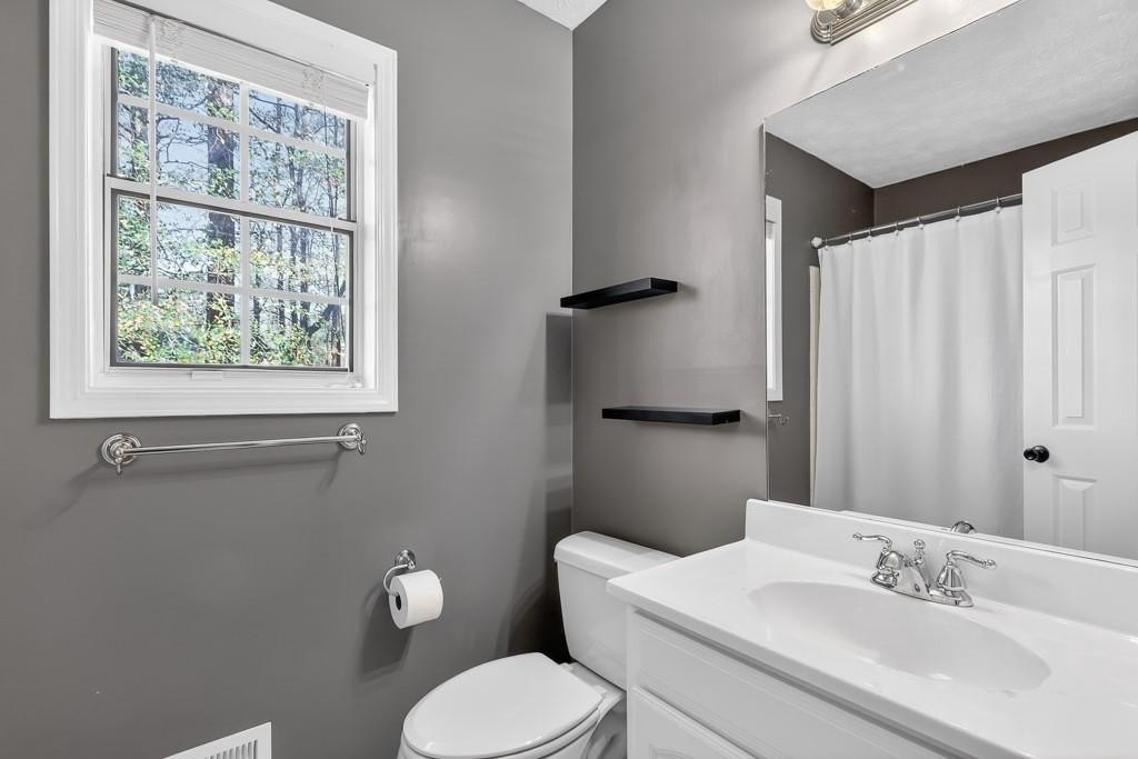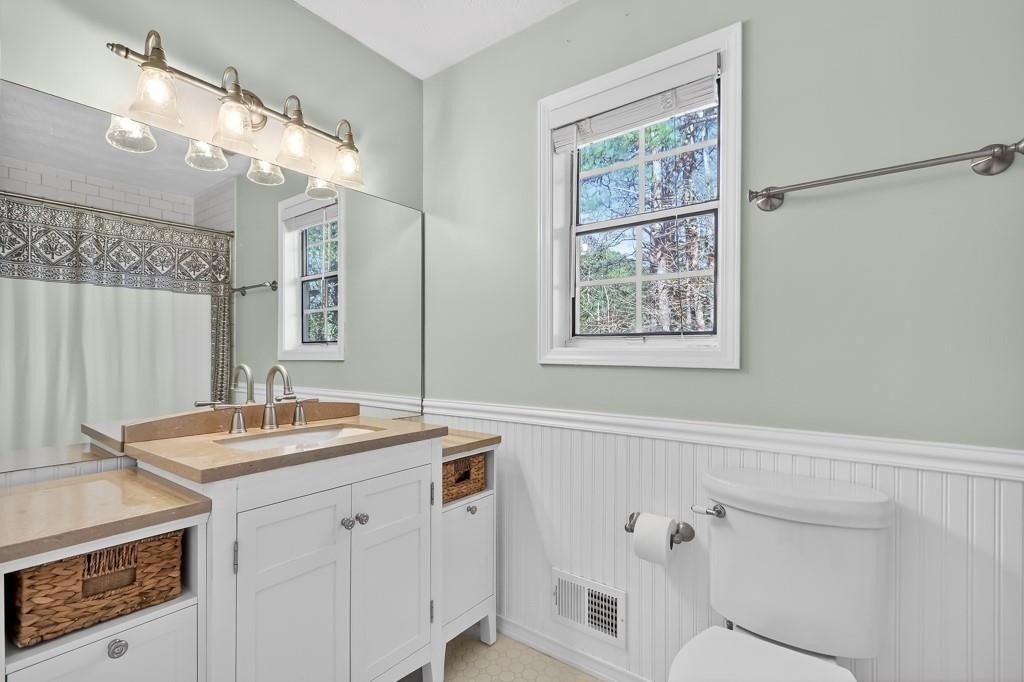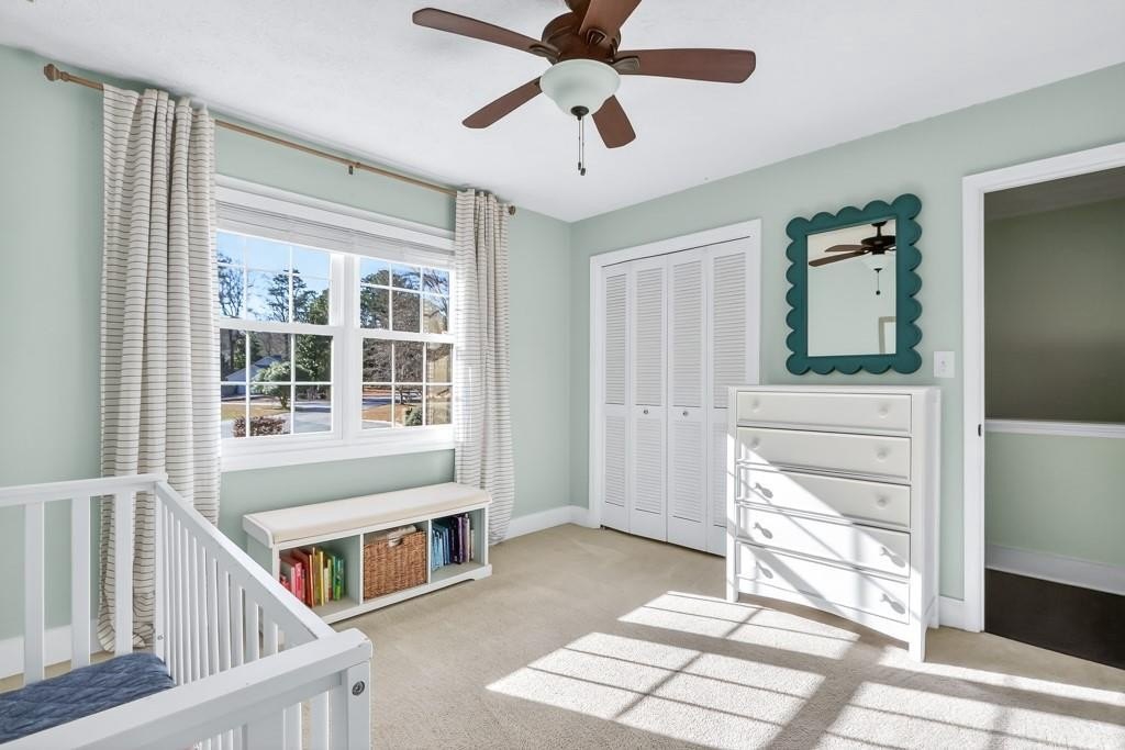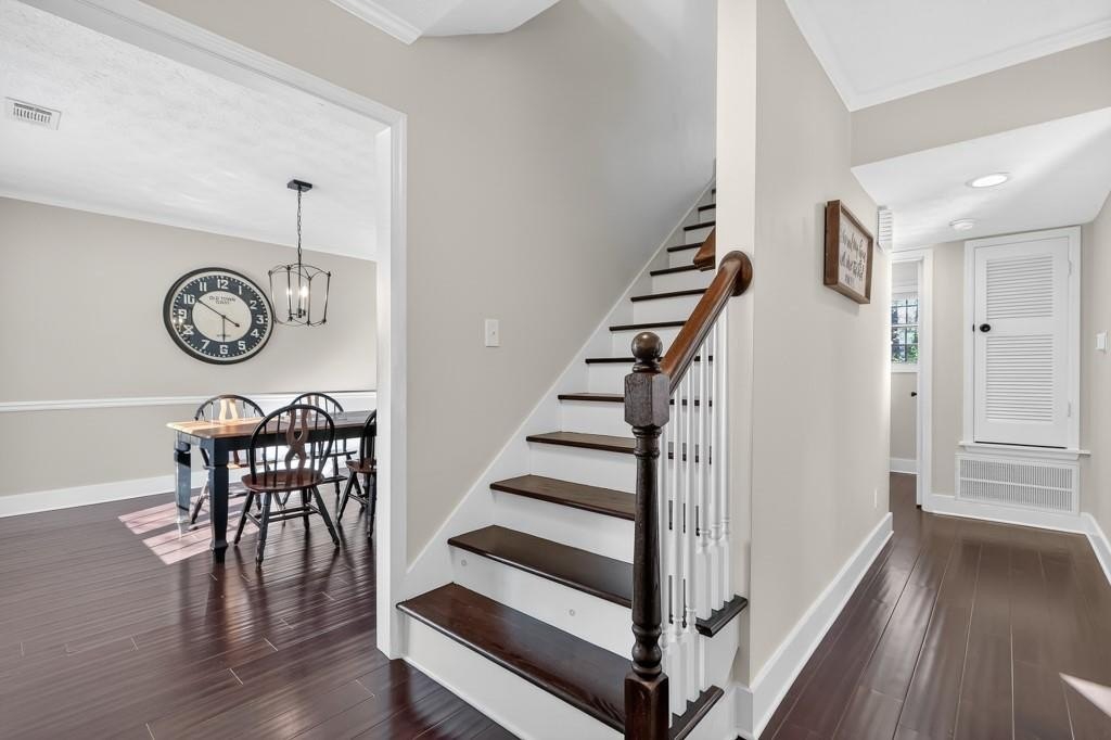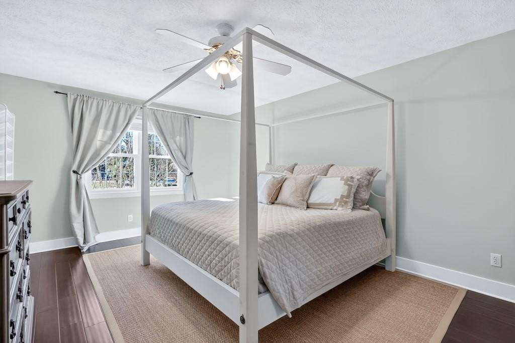 Welcome home to this charming, updated, traditional 3/2.5 located in the heart of East Cobb. Conveniently located near shopping, entertainment, and attractions that are close to this prime location. Beautiful hardwood floors throughout this meticulously maintained move- in ready home. Located in a quiet cul-de-sac, the wonderfully irrigated and landscaped yard is flat and perfect for kids to play as well as host gatherings with friends and family. Inside, you'll be greeted with a functional floor plan that features a cozy living room with a fireplace. The natural light is excellent, and the entirety of the home's windows were recently replaced. The dining room, powder room, and laundry rooms are conveniently located near the kitchen, which features stainless steel appliances, granite countertops, white cabinets, and tile backsplash. The view from the kitchen provides a great line of sight to the back yard, overlooking a recently replaced concrete back patio and stringed lights. The laundry room has been thoughtfully appointed with additional storage space added. The home has a two-car garage and an additional storage room, which is perfect for storing lawn care equipment, golf clubs, bicycles - you name it. All three bedrooms are located upstairs, featuring an oversized primary suite. Enjoy a walk-in closet as well as a custom barn door to the en-suite bathroom. The other two bedrooms are carpeted and perfect for kids or guest rooms, complete with another full bath and shower combo. Additional updates include a newer driveway, HVAC system, front and storm door, garage doors, and exterior paint. This house has been stewarded with excellence and features many upgrades that are uncommon at this price point in the Pope High School District. Close to schools, shopping, dining, entertainment, GA 400, and I-75, with easy access to downtown Roswell/Canton Street, Woodstock, and the Chattahoochee Recreation Area. Set up your showing and come see this beauty today!