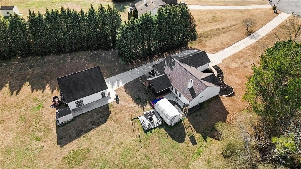 Set on 1.47 private acres within an established Forsyth County community, this 3-bedroom, 2-bath ranch, set on a cul-de-sac within the community, offers comfortable, everyday living with space and privacy that are increasingly hard to find in Forsyth County. Located in Ball Ground and just minutes from Cumming and Hwy 369, the home provides easy access to shopping, dining, and commuting routes while still feeling quiet and tucked away. Inside, the home features an efficient one-level layout designed for daily living. The floor plan flows easily from the main living area into a bright kitchen, making the space functional for both relaxing and entertaining. Updated bathrooms and a practical ranch design make the home suitable for a wide range of buyers, from first-time homeowners to those looking for one-level living. Step outside and the setting truly stands out. The very close to level 1.47-acre lot offers open lawn space, mature trees, a greenhouse, A-frame pergola, and a fire pit, creating a backyard designed for outdoor living and privacy. The rear of the property backs up to acres of hunting land, providing a natural buffer and a peaceful backdrop that is unlikely to change. A separate garage/workshop adds exceptional flexibility and value to the property. The building includes true two-car garage space, a climate-controlled garage and back office, and a 1-ton lift, making it ideal for projects, storage, hobbies, or a dedicated workspace away from the home. Paid-for solar panels are installed and currently support the electrical needs of the garage/workshop and greenhouse, helping offset operating costs for these spaces. Ball Ground address, Forsyth County schools, and close to everyday conveniences, while offering acreage, privacy, and features rarely found together in this location.