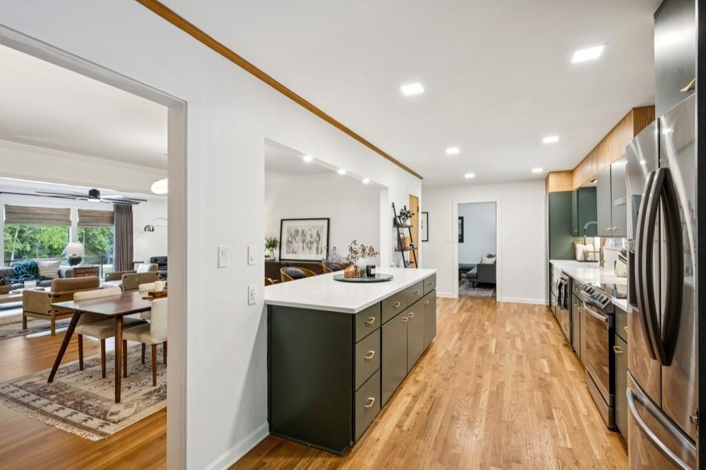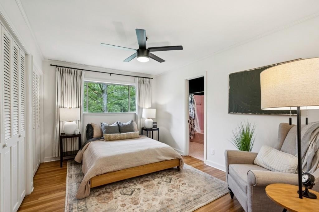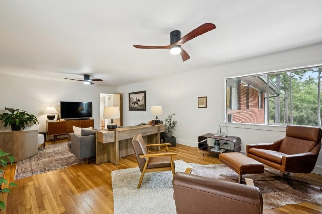 A One-of-a-Kind Mid-Century Modern Sanctuary tucked away on 3 Private, Park-Like Acres, just minutes from the heart of Historic Downtown Senoia. This Architecturally Striking Brick Ranch has been Designer Renovated from Top to Bottom, blending timeless mid-century character with curated modern updates creating a home that feels both elevated and effortlessly livable. From the moment you arrive, the Expansive Flat Front Lawn and serene wooded backdrop set the tone for something truly special. Inside, Golden Hardwood Floors, Clean White Walls, and an Open, Light-Filled Foyer flow seamlessly into the main living spaces, where thoughtful design and natural light take center stage. The Main Living Room offers an inviting space to gather, while the adjacent Dedicated Dining Area anchors the home for entertaining and everyday living. At the heart of the home, the Chef's Kitchen is both bold and functional, featuring Custom Green Cabinetry, Quartz Countertops, High-End Stainless Steel Appliances, a White Tiled Backsplash, and a Breakfast Bar perfect for casual meals and morning coffee. A stylish Coffee & Prep Station and abundant storage elevate the space, while the nearby Oversized Laundry Room impresses with Custom Tile Flooring, a Utility Sink, and generous cabinetry. A Wood-Paneled Home Office with Custom Built-Ins offers a warm, sophisticated space for work or creative pursuits. Nearby, a cozy Fireside Living Room opens through Sliding Glass Doors to the outdoor patio creating an effortless indoor-outdoor connection and a peaceful place to unwind surrounded by nature. The Primary Suite on Main is a true retreat, featuring a Spa-Inspired Bathroom with a Soaking Tub, Designer Tile, Dual Vanity, Large Glass Shower, and Two Closets. Additional Spacious Bedrooms, including a Private Ensuite with Dual Vanity, provide comfort and flexibility for family and guests. Downstairs, the Fully Finished Basement with Private Exterior Access unlocks exceptional versatility. This level includes a Second Full Kitchen with Dark Cabinetry, Butcher Block Countertops, and modern appliances, along with Multiple Living Areas, Bedroom Space, Full Bathroom, Home Office, and Fitness or Studio Space ideal for Multi-Generational Living, Guest Quarters, or Income Potential. Outside, the grounds are nothing short of magical. Multiple Outdoor Sitting Areas, open grassy spaces, and wooded privacy create a true Retreat-Like Setting perfect for entertaining, relaxing, or simply enjoying the quiet beauty of the land. All of this, Just Under a Mile from Downtown Senoia, with easy access to beloved Shops, Dining, Events, and Film-Famous Streets offering the rare combination of Privacy, Design, Land, and Location. This is not just a home it's an experience, a lifestyle, and one of the most exceptional properties Senoia has to offer.