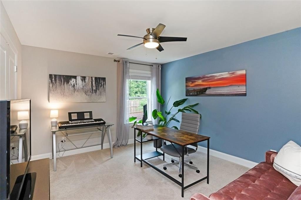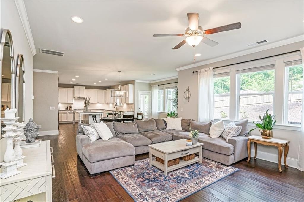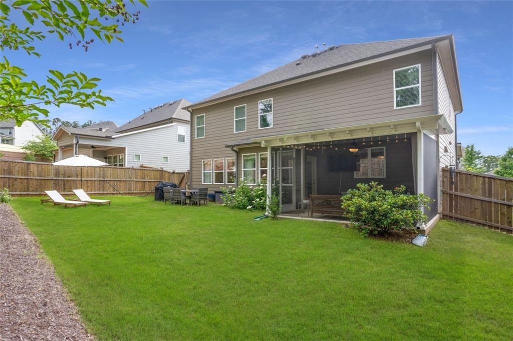 Welcome to this charming Craftsman-style home, offering a perfect blend of modern elegance and classic construction; featuring 5 bedrooms, 4.5 baths, a screened-in porch and a fenced back yard. The main level showcases an open concept floor plan, with a seamless flow between the living, dining, and kitchen areas. The expansive kitchen is equipped with high-end stainless steel appliances, granite countertops, and ample cabinet space. The center island provides additional workspace and doubles as a breakfast bar, perfect for casual meals or entertaining guests. The main level also provides a sunny family room with fireplace, a half bath and coat/storage area and a bedroom with en-suite bath. Upstairs, you'll find the luxurious primary suite, complete with a spacious bedroom, a walk-in closet, and a spa-like bath with a soaking tub, a separate glass-enclosed shower, and dual vanities. Three additional bedrooms are located on the upper level, two that share a hallway bathroom, while the third bedroom is equipped with an en-suite bathroom. One of the standout features of this home is the panoramic-sided screened-in porch, which offers a tranquil space to relax and enjoy the outdoors without the hassle of bugs or inclement weather. The fenced backyard is spacious and well-maintained, providing plenty of room for outdoor activities and gardening. Located in Mableton, GA, close to Vinings, Cumberland and Truist Park, this home offers a convenient location with easy access to major highways, shopping centers, and dining options. With its impeccable craftsmanship, modern amenities, and ample living space, this beautifully constructed home is truly a gem.