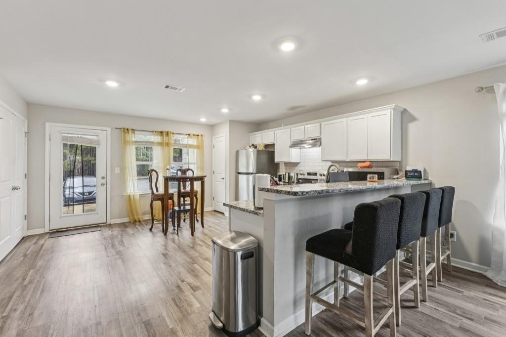 End-Unit Townhome in a Quiet Union City Community, offering a flexible floor plan, modern finishes, and easy access to everything South Fulton has to offer. Built in 2021, this Newer Construction home provides low-maintenance living with a layout designed to adapt to a variety of lifestyles. The main level features an Open Living and Dining Area with durable Luxury Vinyl Plank Floors and a seamless connection to the Kitchen, creating a comfortable setting for everyday living and entertaining. The Kitchen includes White Cabinetry, Granite Countertops, Stainless Steel Appliances, and a Spacious Breakfast Bar that works just as well for casual meals as it does for gathering with friends. With Four Bedrooms, this townhome offers excellent flexibility for a Home Office, Guest Room, or additional living space. The Primary Suite features an En Suite Bathroom with Dual Vanities, while the remaining bedrooms are generously sized and supported by a second Full Bathroom. The End-Unit location provides a quieter setting and a more open, comfortable feel, well suited for long-term living or rental use. Residents enjoy convenient access to Camp Creek Marketplace, Wolf Creek Amphitheater, local parks, and everyday shopping and dining. Major commuter routes including I-85, I-285, and GA-166 are just minutes away, offering an easy connection to Downtown Atlanta and Hartsfield-Jackson International Airport. With No Rental Restrictions and Proven Rental History in the Community, this townhome presents a strong opportunity for both owner-occupants and investors seeking long-term value in a growing area. A smart, versatile option in a well-connected Union City location.