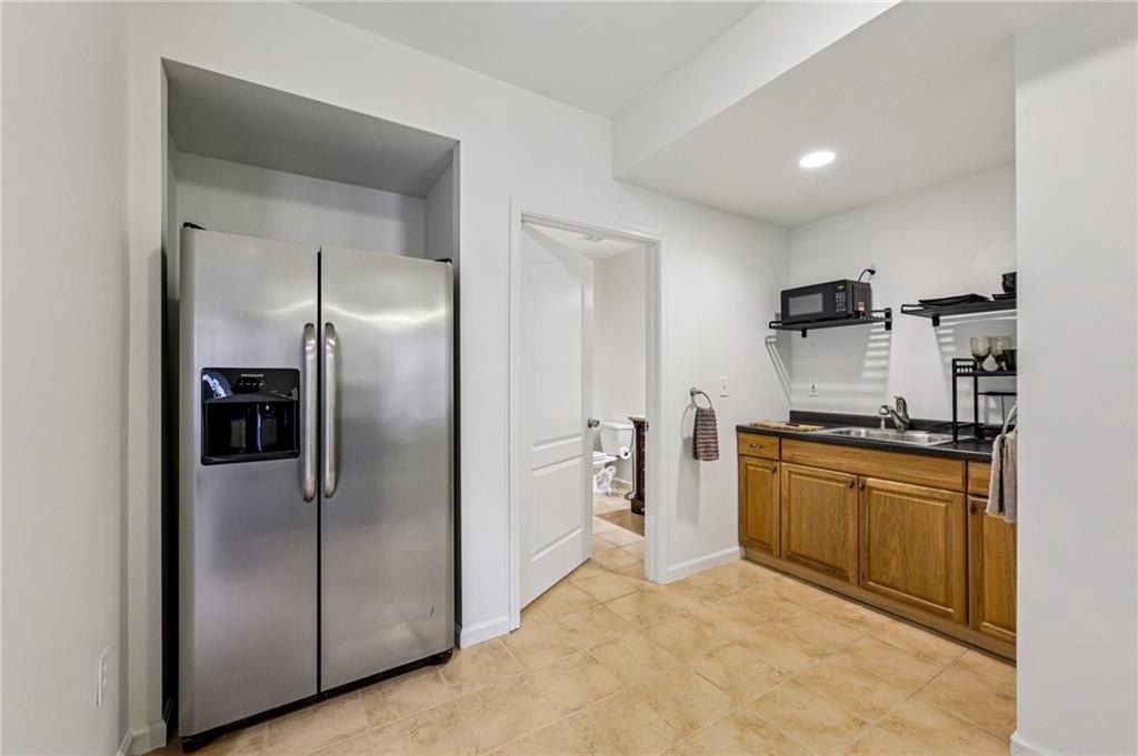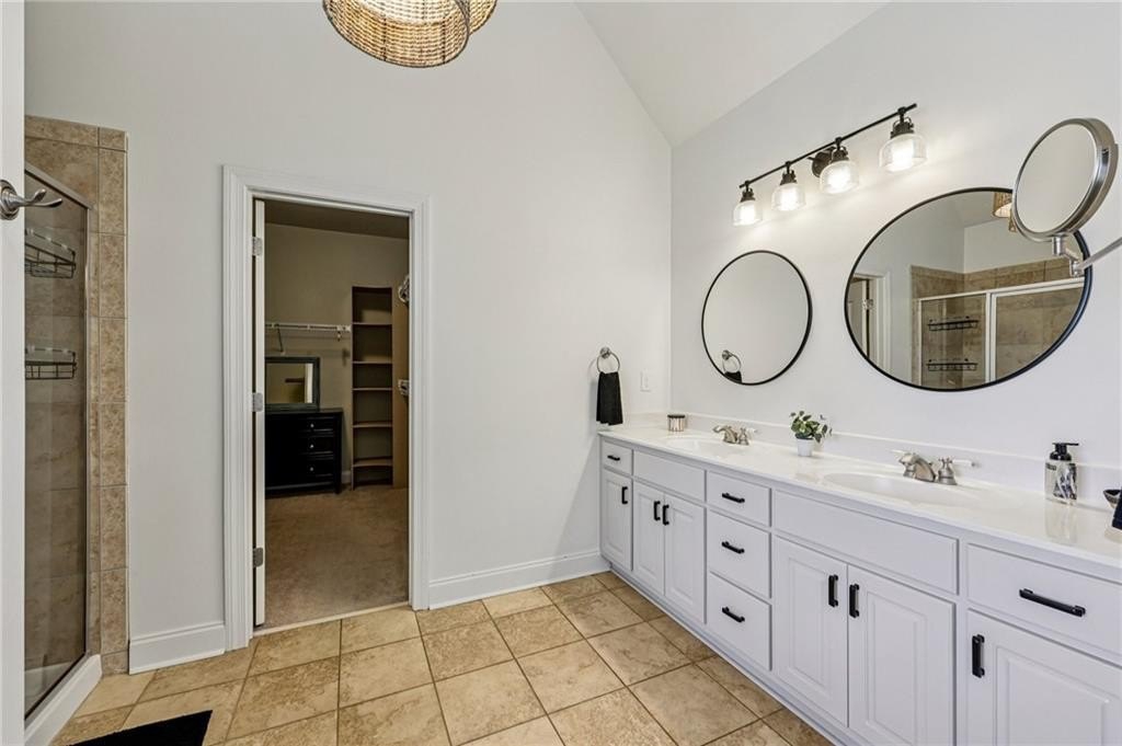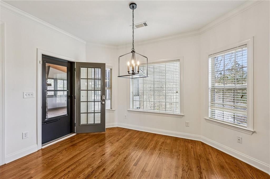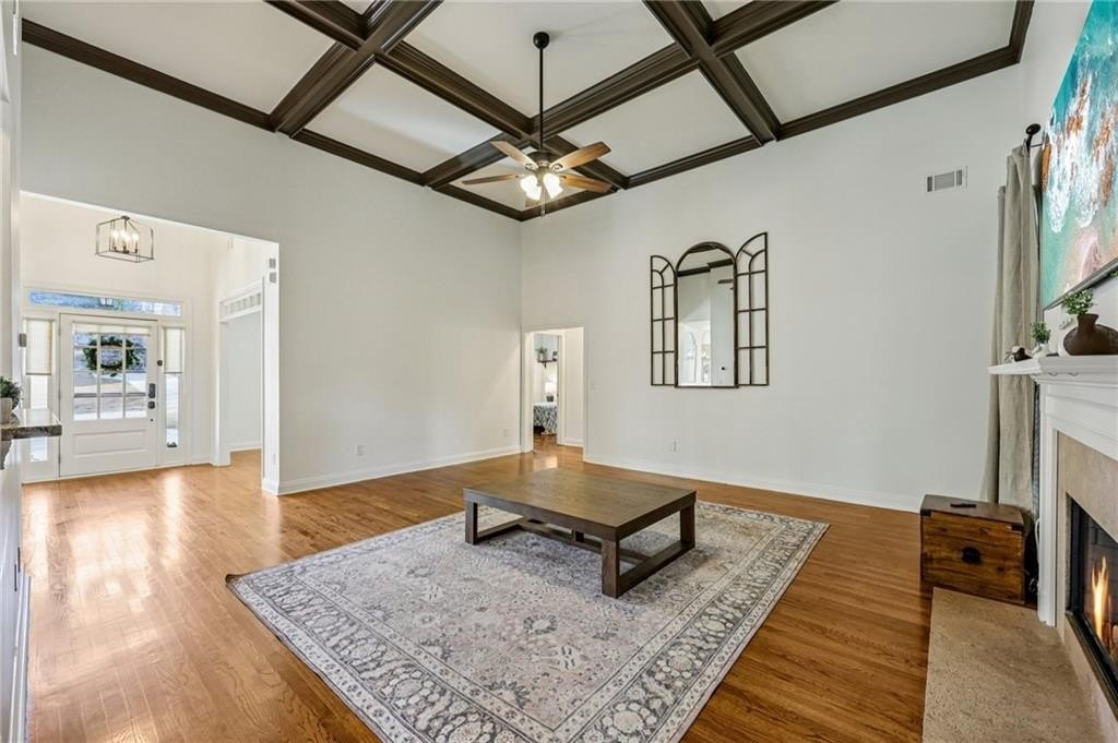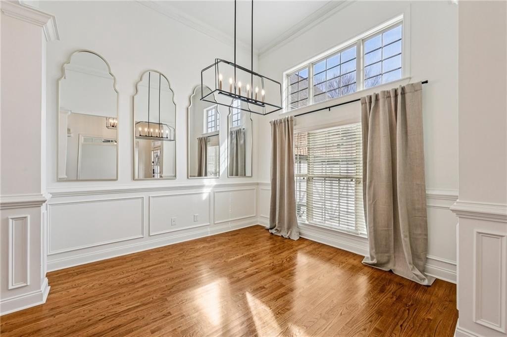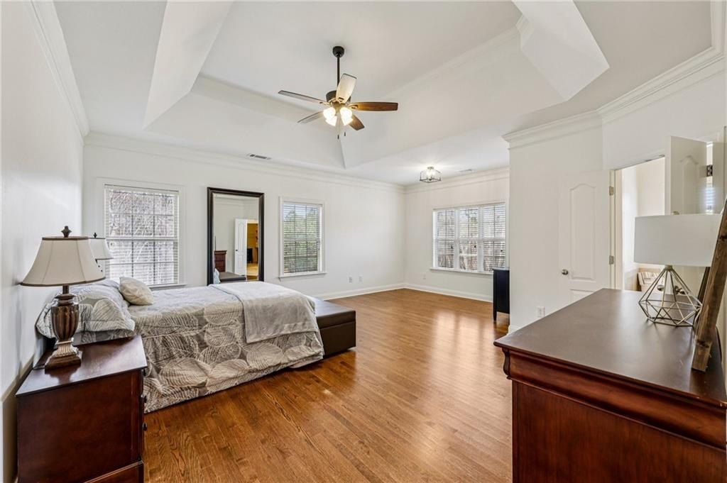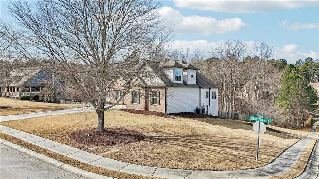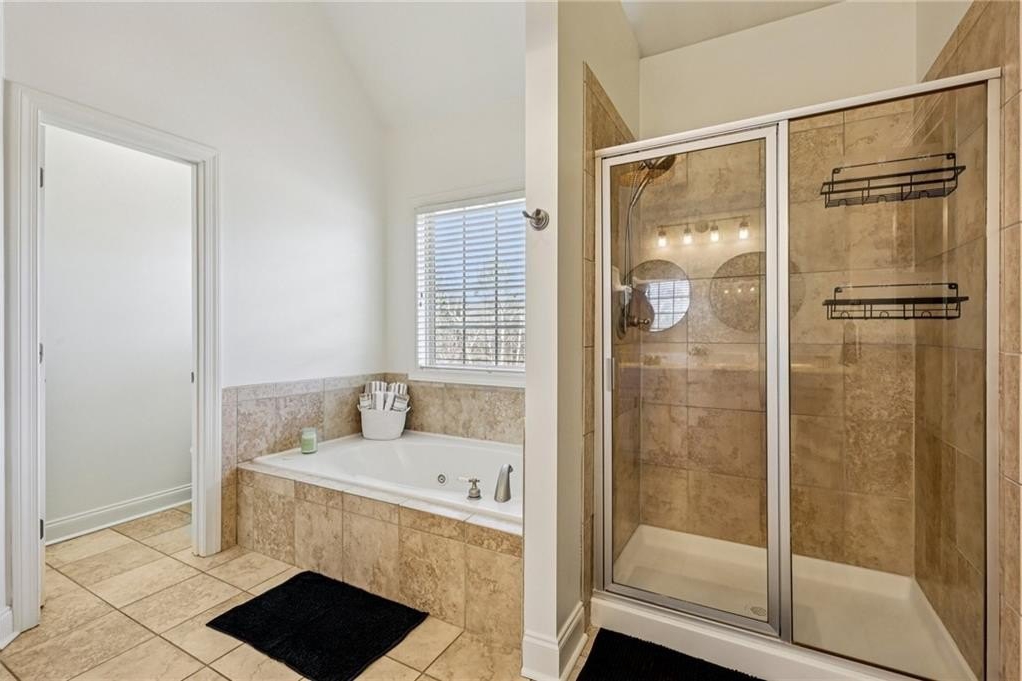 This gorgeous 5-bedroom home on a spacious, landscaped corner lot with heated POOL offers SO many great features to love, both indoors and out! Inside, the welcoming and bright front foyer opens to a dining room and additional living space, ideal for a home office, sitting room, or entertaining. At the center of the home, the inviting family room with accent coffered ceilings and fireplace flows to the kitchen featuring white cabinetry, granite countertops, center island, stainless steel appliances, and a sunny breakfast area. The spacious primary suite on the main floor includes a sitting area as well as plenty of windows bringing in natural light. The en-suite bath includes a separate tub and shower, large vanity with two sinks and lots of storage, and a large walk-in closet with built-in shelving. Two additional main-level bedrooms share a full bathroom. Additional features include hardwood floors in the main living areas and bedrooms, high ceilings, and updated lighting and fixtures throughout. Upstairs, a spacious bedroom/bonus room with a full bath and walk-in closet provides a perfect private space for family or guests. The finished basement offers lots of additional living space, including a large game or media room, exercise or multipurpose room, bedroom, full bath, kitchenette with a full-size refrigerator, and plenty of storage. In addition the the 2-car garage on the main level, the basement level also features an oversized single garage with its own driveway. Step outside to your private backyard oasis with wooded views, featuring an in-ground heated pool surrounded by beautiful stone work, built-in fire pit, and covered patio, offering lots of options for relaxing or entertaining year-round!