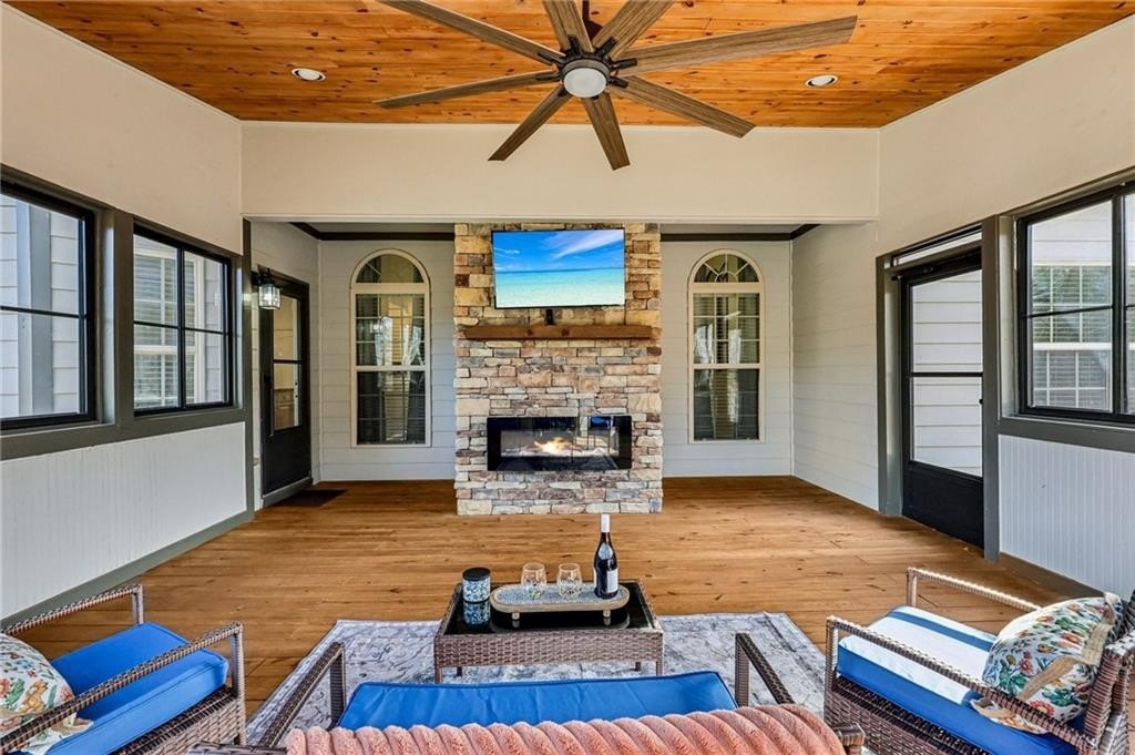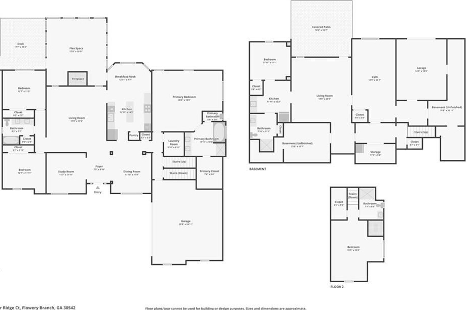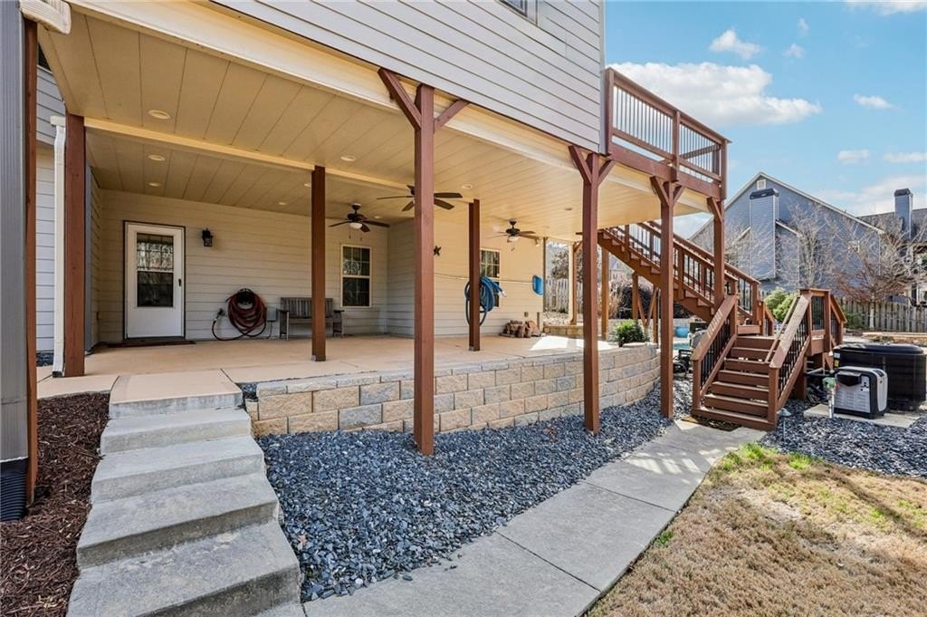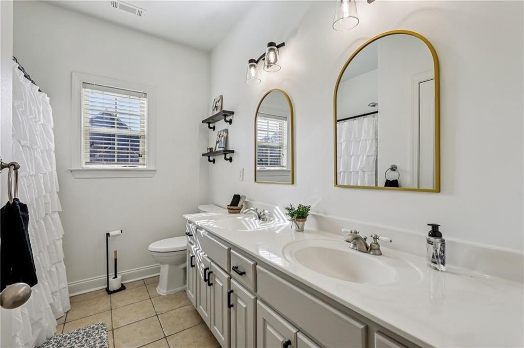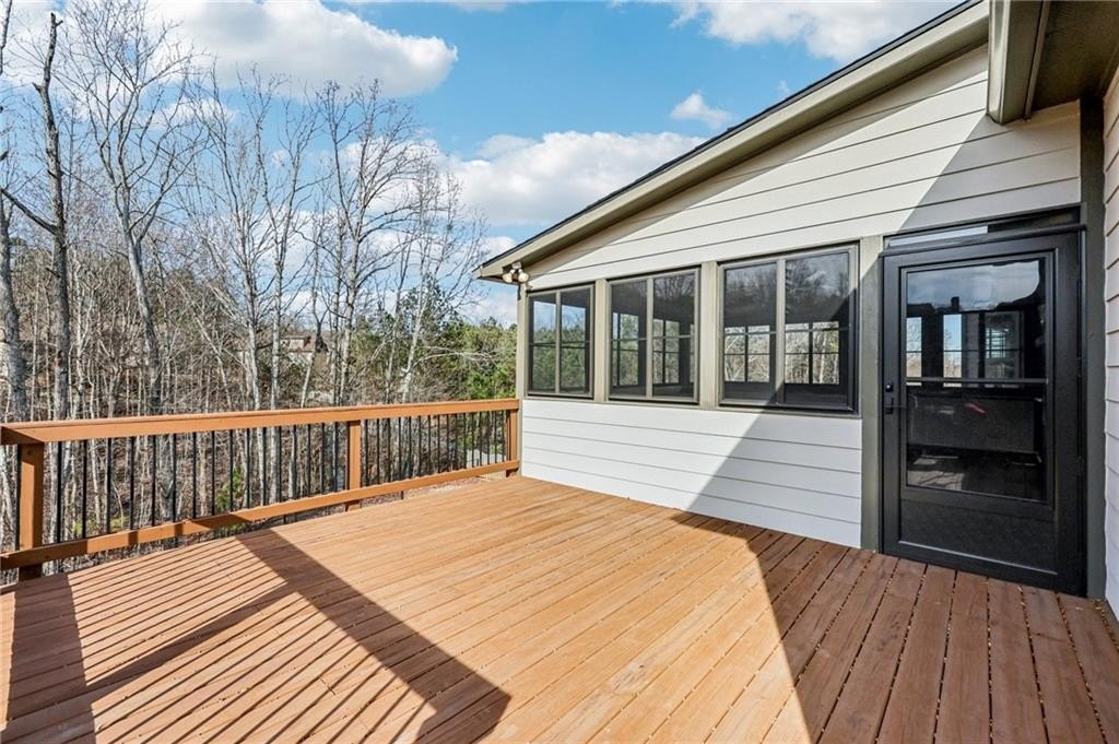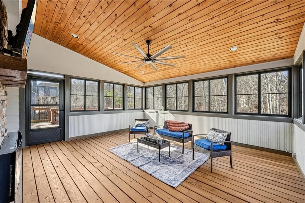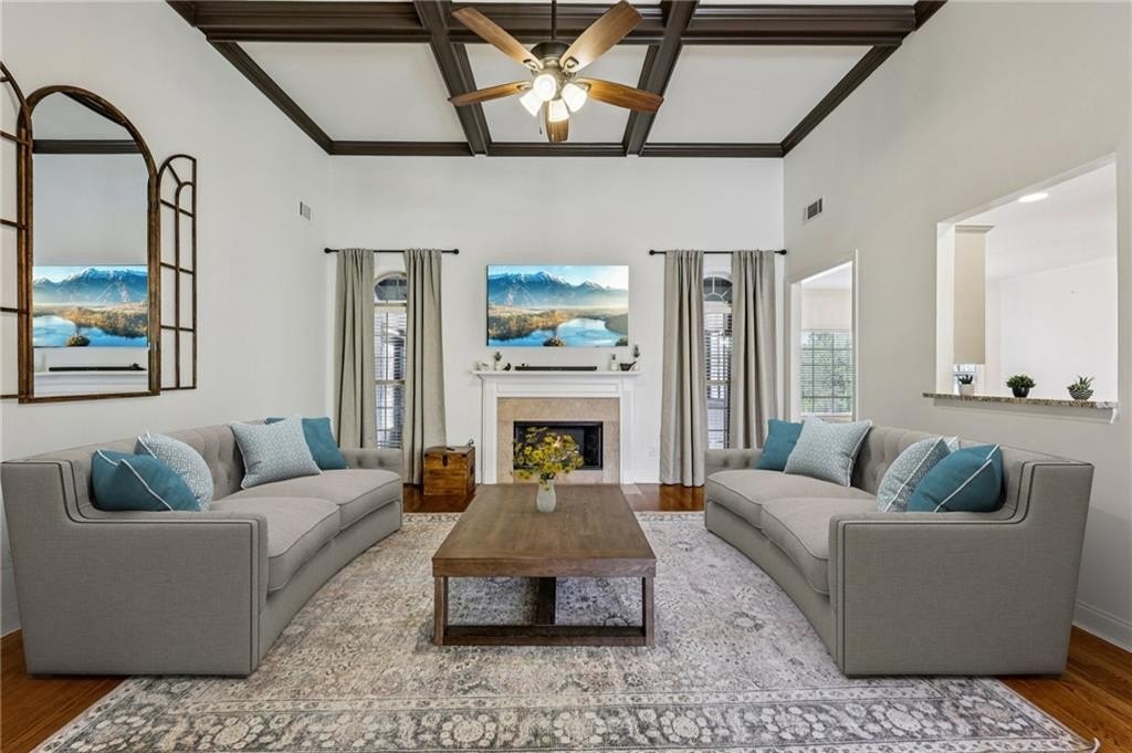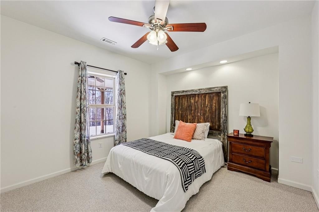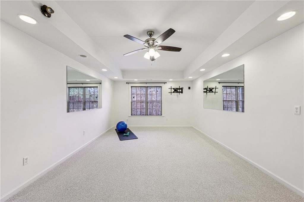 This gorgeous 5-bedroom home on a spacious, landscaped corner lot with heated POOL offers SO many great features to love, both indoors and out! Inside, the welcoming and bright front foyer opens to a dining room and additional living space, ideal for a home office, sitting room, or entertaining. At the center of the home, the inviting family room with accent coffered ceilings and fireplace flows to the kitchen featuring white cabinetry, granite countertops, center island, stainless steel appliances, and a sunny breakfast area. The spacious primary suite on the main floor includes a sitting area as well as plenty of windows bringing in natural light. The en-suite bath includes a separate tub and shower, large vanity with two sinks and lots of storage, and a large walk-in closet with built-in shelving. Two additional main-level bedrooms share a full bathroom. Additional features include hardwood floors in the main living areas and bedrooms, high ceilings, and updated lighting and fixtures throughout. Upstairs, a spacious bedroom/bonus room with a full bath and walk-in closet provides a perfect private space for family or guests. The finished basement offers lots of additional living space, including a large game or media room, exercise or multipurpose room, bedroom, full bath, kitchenette with a full-size refrigerator, and plenty of storage. In addition the the 2-car garage on the main level, the basement level also features an oversized single garage with its own driveway. Step outside to your private backyard oasis with wooded views, featuring an in-ground heated pool surrounded by beautiful stone work, built-in fire pit, and covered patio, offering lots of options for relaxing or entertaining year-round!