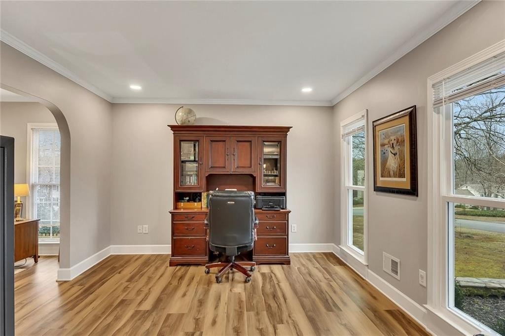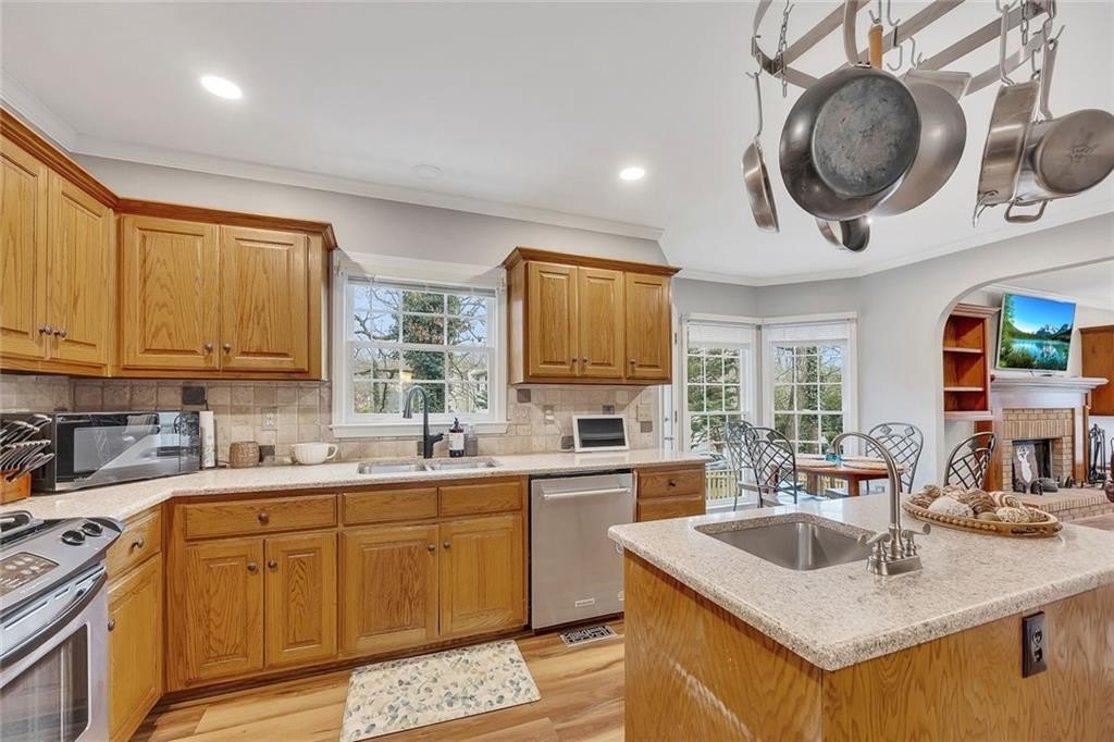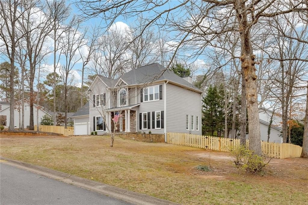 This beautiful, unique and charming Colonial-style Home is conveniently located in Kennesaw in a well-established neighborhood situated on a large front corner lot. The charming covered front porch has 4 white columns and is made with beautiful flagstone & landscaping on each side. When you step inside this 2-story home, the vaulted ceiling foyer is flanked with a beautiful separate dining room to the left with a gorgeous new large window added for natural light, and a living space to the right currently used as an office. The entire main level was updated with gorgeous LVP flooring including the beautiful staircase. This Open Concept/Great Room is open yet cozy with a beautiful brick fireplace. The kitchen has a country feel that includes a rustic, unique wall decor piece that stays, and a hanging pot rack. The island adds extra cooking prep space with a granite countertop and 2nd sink. The kitchen also has new canned lights & a cozy eat-in area with a beautiful view to the backyard. The kitchen has plenty of cabinet space, pantry and all appliances will stay. The half bath is on the main level right when you come in from the 2-car spacious garage. Head upstairs to the second level with 3 bedrooms and 2 baths including a Master Ensuite with a Master Bath that includes double vanities, water closet, a separate soaking tub and shower, & large walk-in closet. There are 2 nice size guest bedrooms with plenty of closet space and a full bath in the hallway with a tub/shower combo. Need additional space? The large bonus room could easily be used as a 4th bedroom, office, play area, workout, music, video game, crafts, music, sewing room, or whatever living space you desire. There are many upgrades including 2 beautiful new garage doors, a brand new large privacy fence was just installed with 2 gates; one on each side of the house for easy access to the backyard for convenience. New beautiful double-pane windows were just installed on the entire front of the house. Enjoy endless hot water with a newer tankless water heater. Step through your brand new door from the kitchen to the backyard onto your double-size freshly stained deck that is so spacious and perfect for entertaining family and friends. The backyard is large, wide, and the pictures don't convey how large it is, and mostly level and such a great size that includes an additional large flagstone patio for grilling and plenty of space to add a fire-pit. To top it off, this beautiful home has a newer roof just 7 years old with architectural shingles. Tour this beautiful Colonial traditional home with so many upgrades in such a great location close to Hwy 41, Acworth, and just minutes from 75.